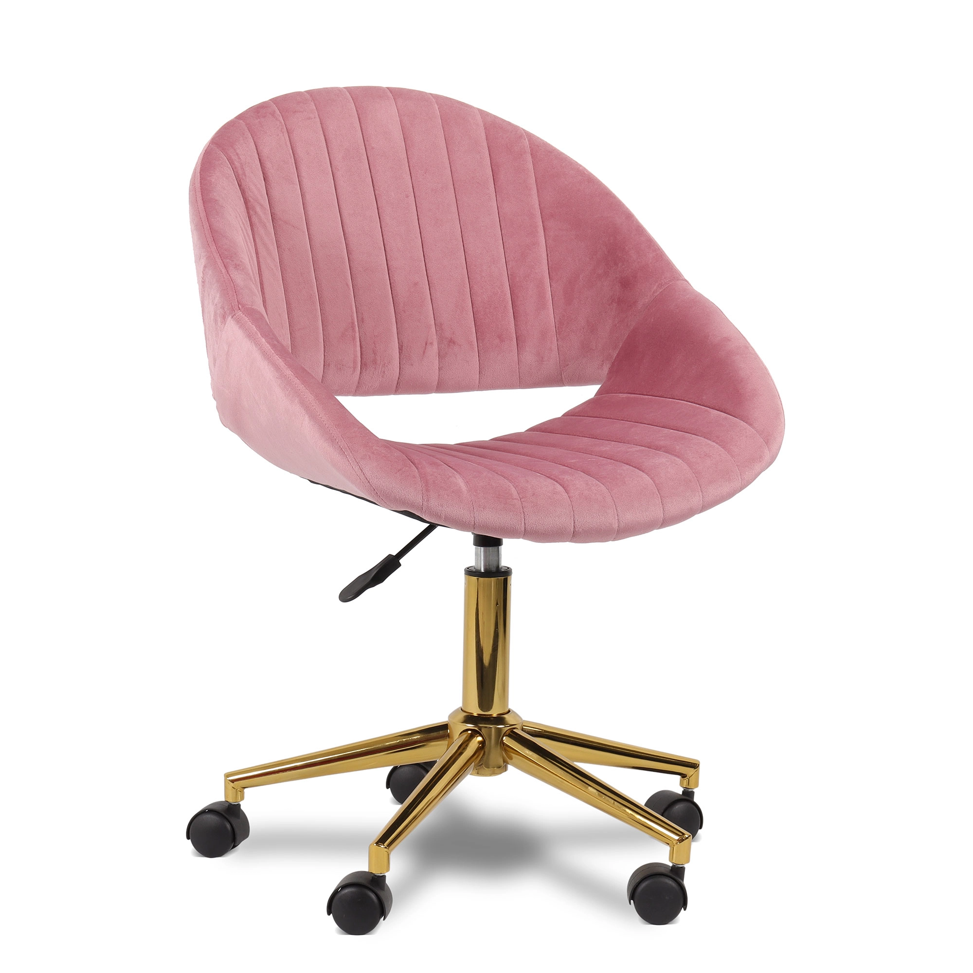 Cadeira Comfy Shelly Estofada Suede Rosa, Base Giratória Dourada