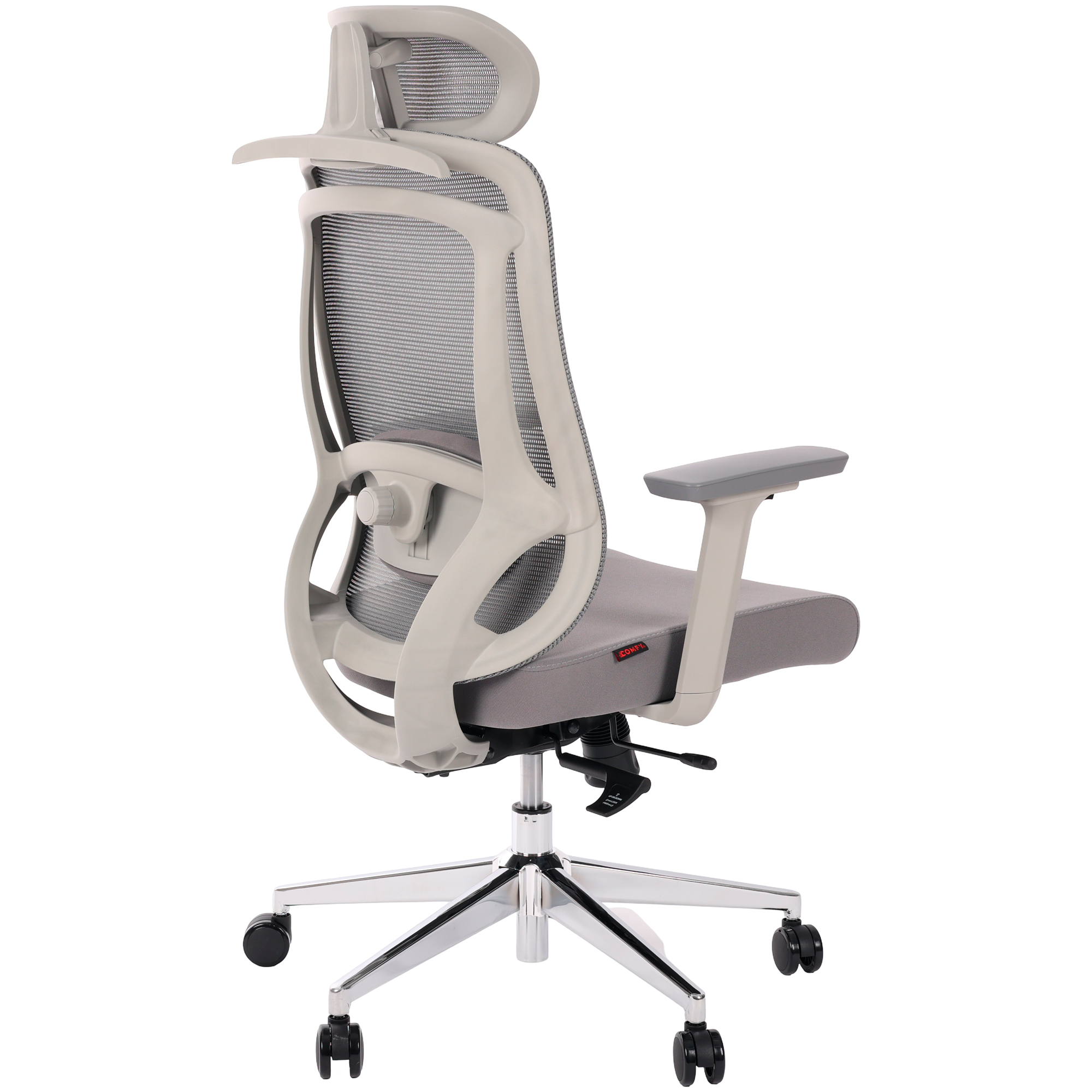 Cadeira de Escritório Comfy Aurora Cinza Mesh Cinza, Braço 3D, Assento Deslizante e Relax