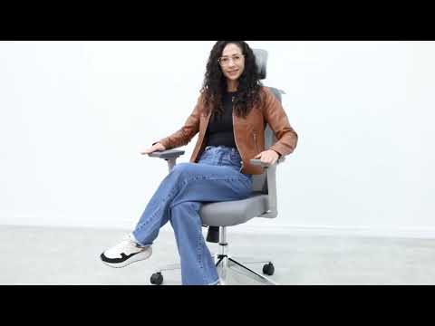 Tela Mesh CinzaAssento DeslizanteTrava em Posição InclinadaBraços com ajuste 3D