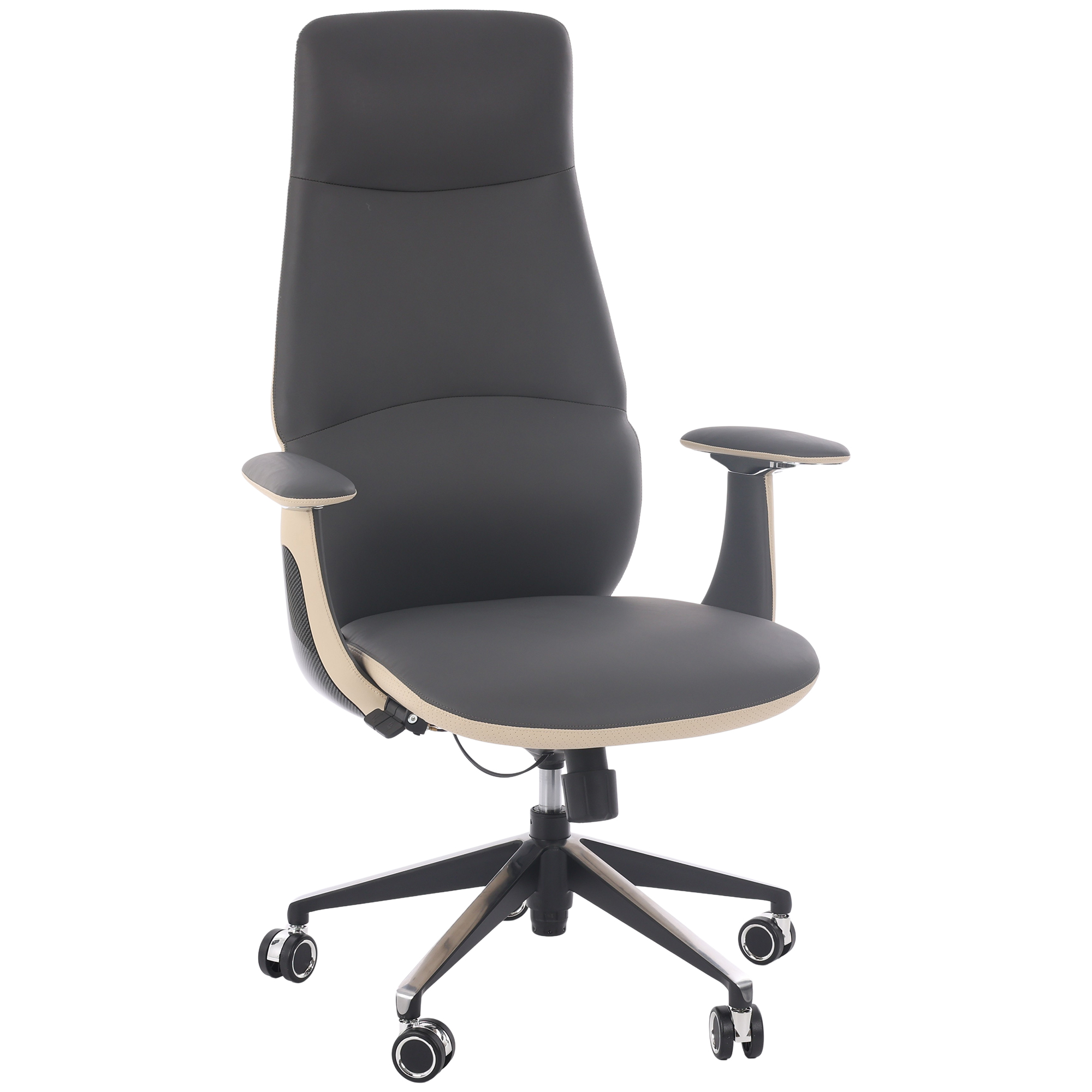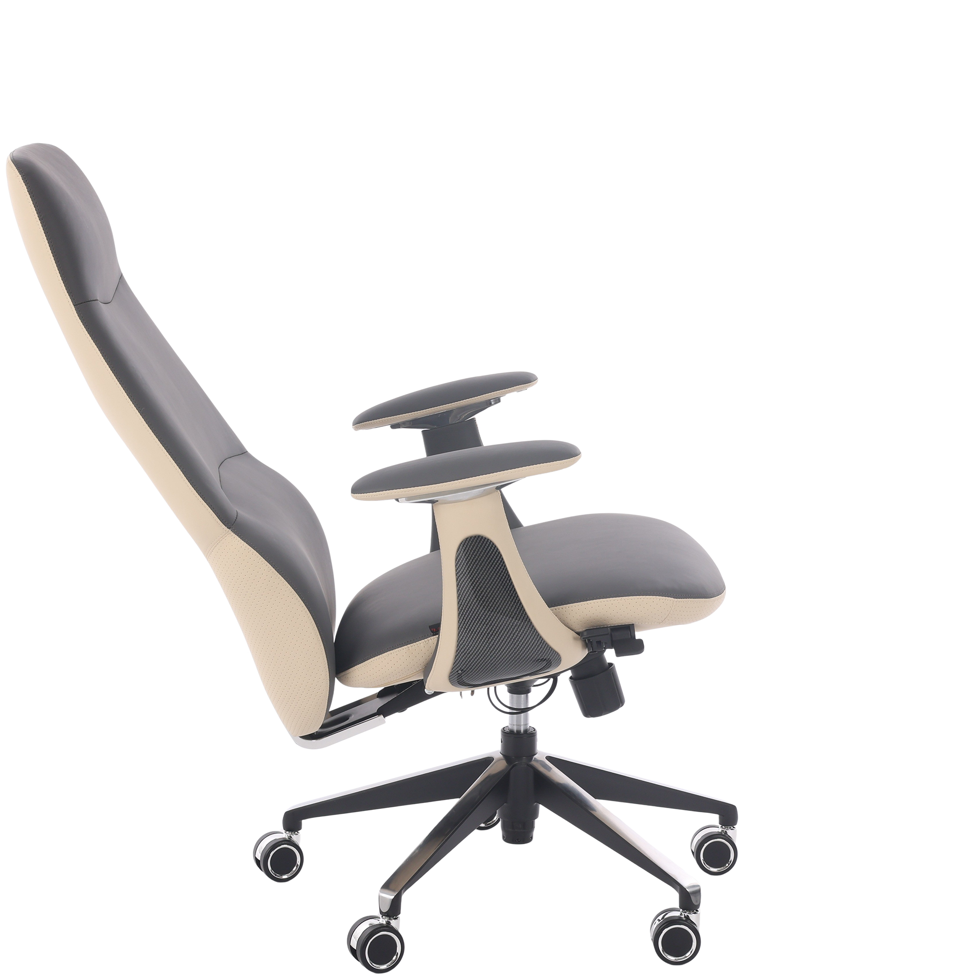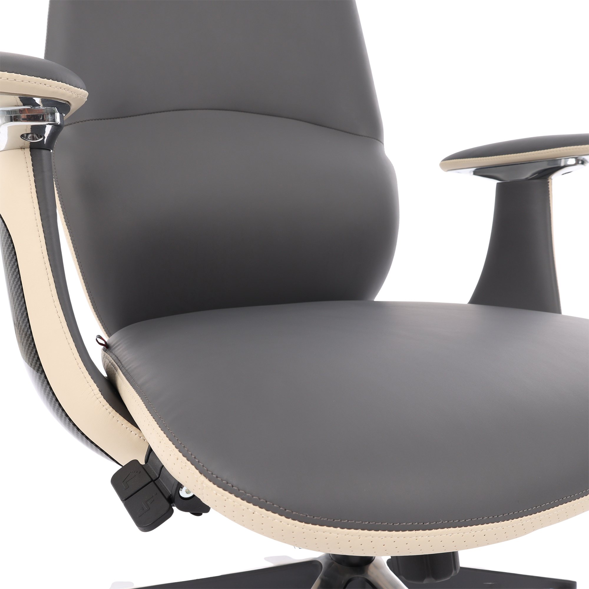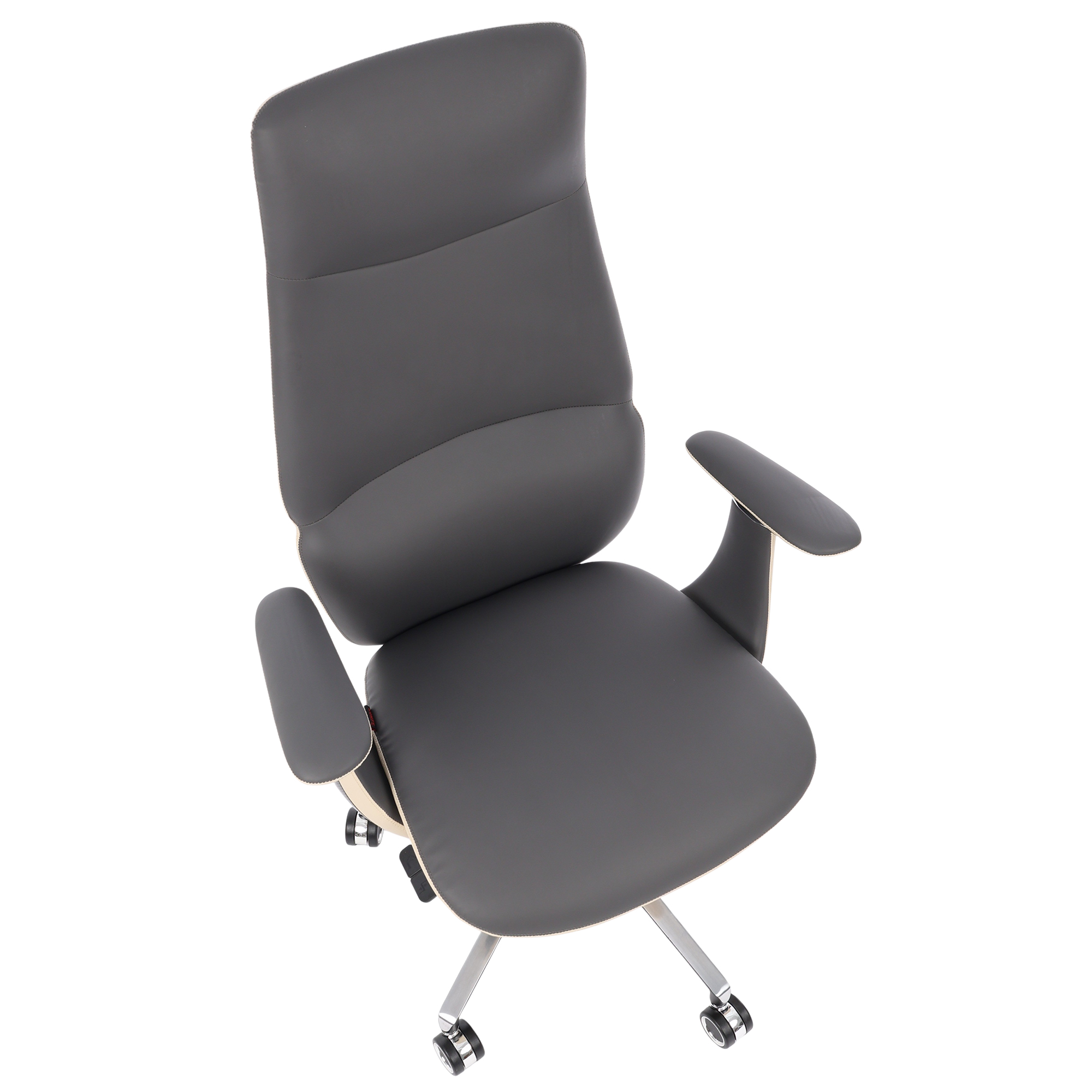 Cadeira de Escritório Comfy Bellagi em Couro Cinza, Estrutura em Alumínio e Ajustes por Botões