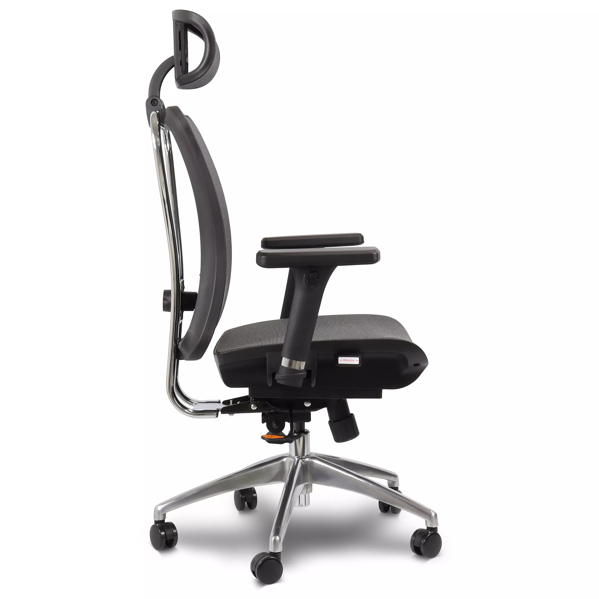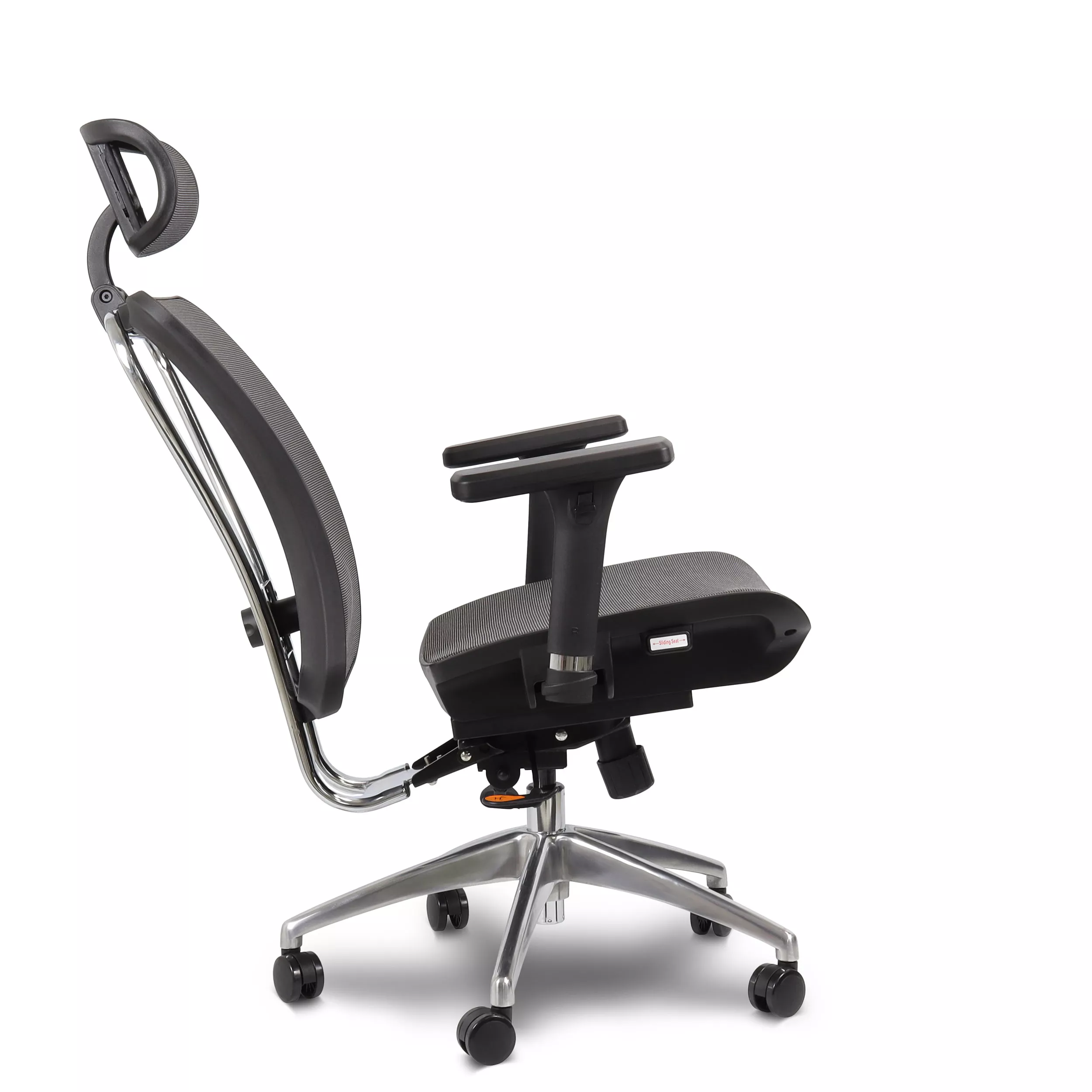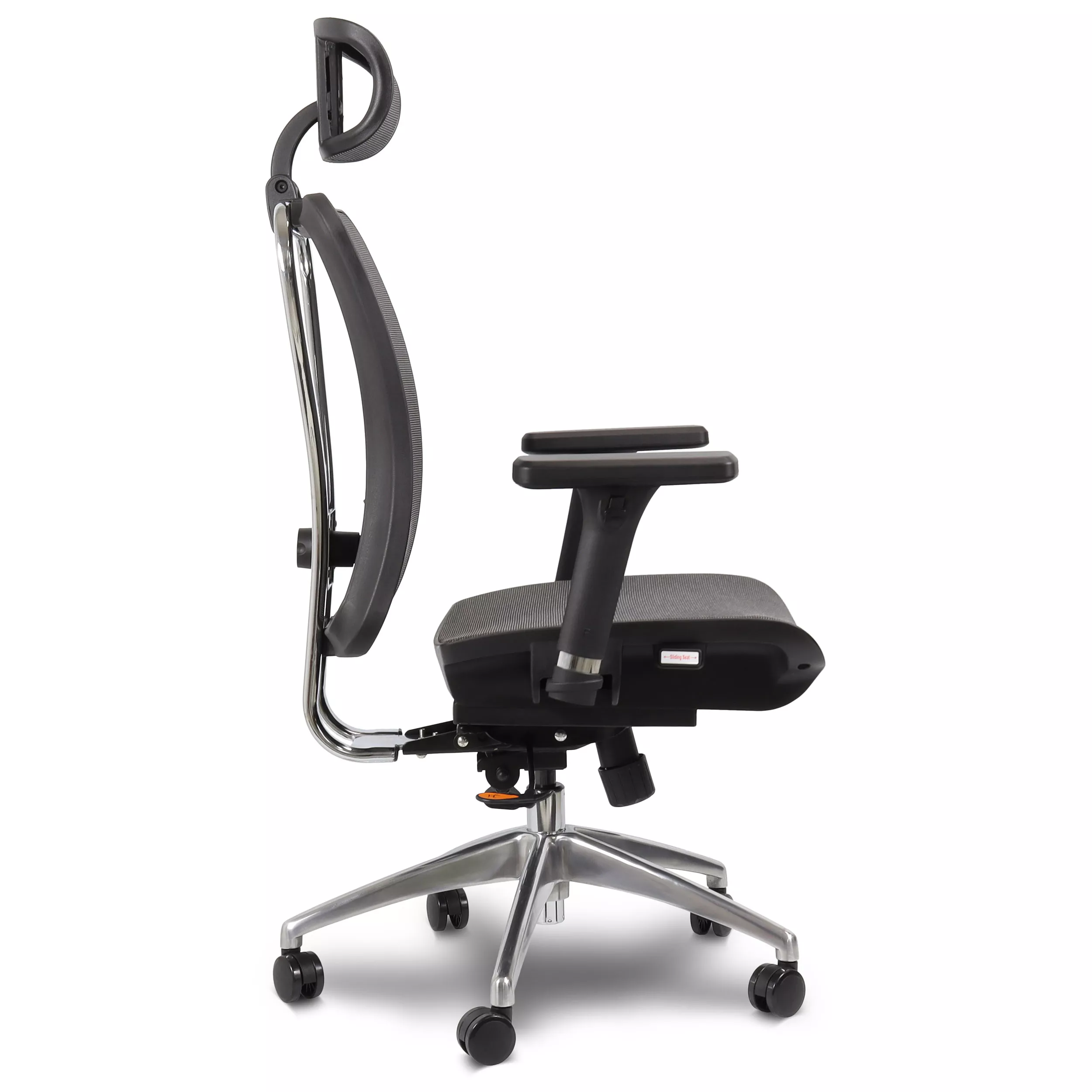 - Assento Deslizante: Adapte a profundidade do assento para um suporte completo às pernas.