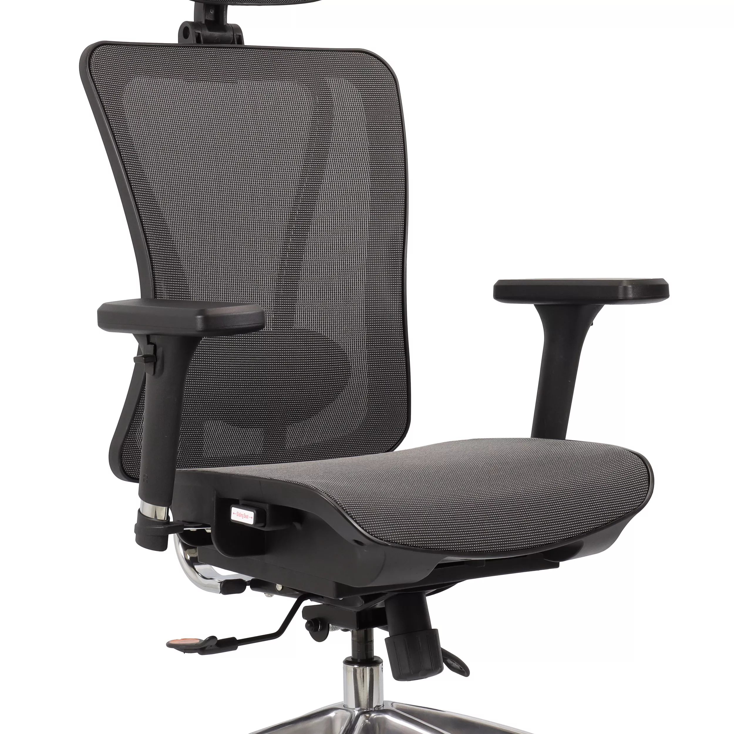 Tela MeshCinzaBase AlumínioBraço 3DAssento DeslizanteRelax Avançado