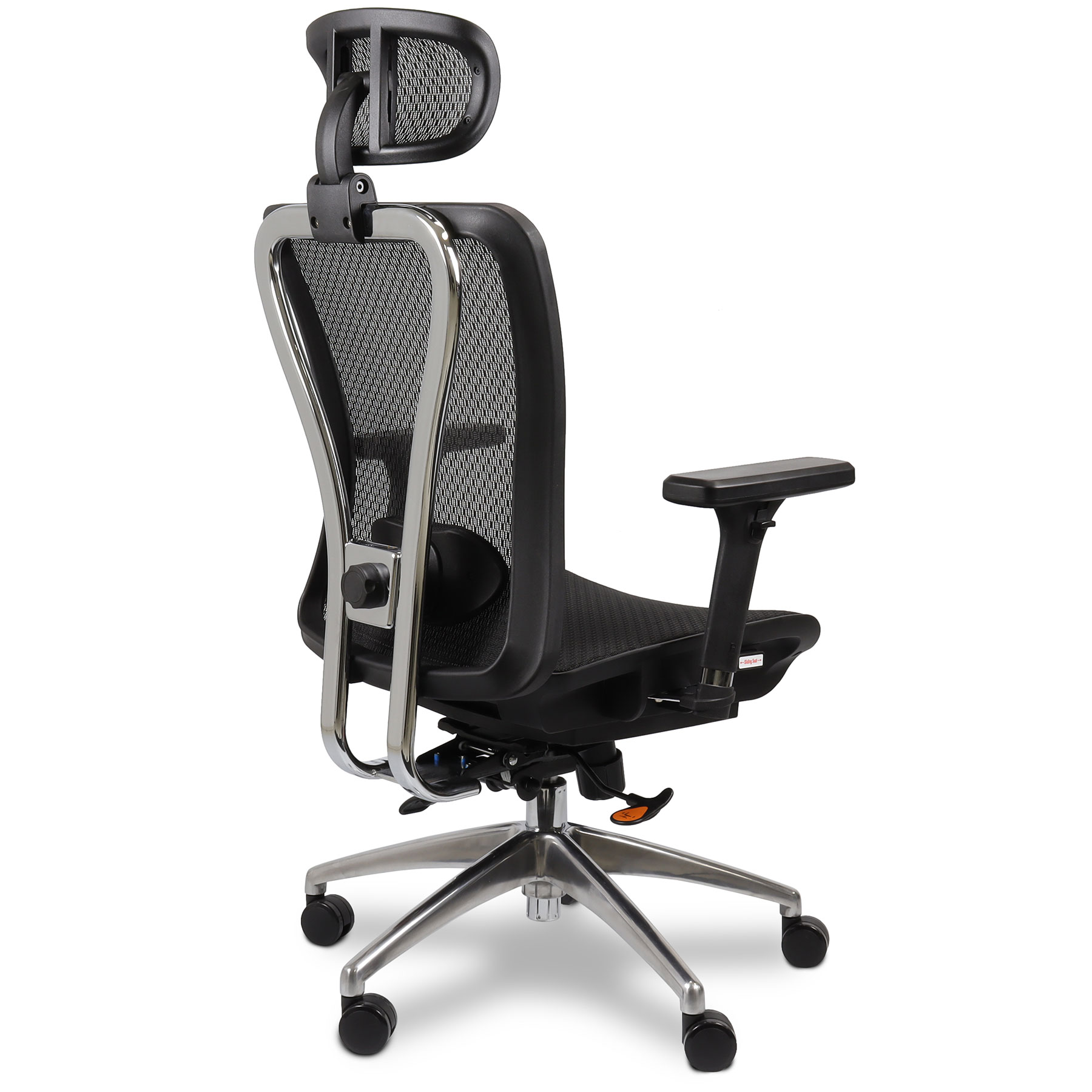 Com a Apoio Lombar ajustável em altura e profundidade, essa cadeira é perfeita para manter sua coluna alinhada e protegida, evitando desconfortos e dores durante o trabalho. E para completar, o Apoio de Cabeça ajustável em altura e inclinação garante um suporte ideal para o seu pescoço, permitindo relaxar enquanto dá aquela olhada na tela.