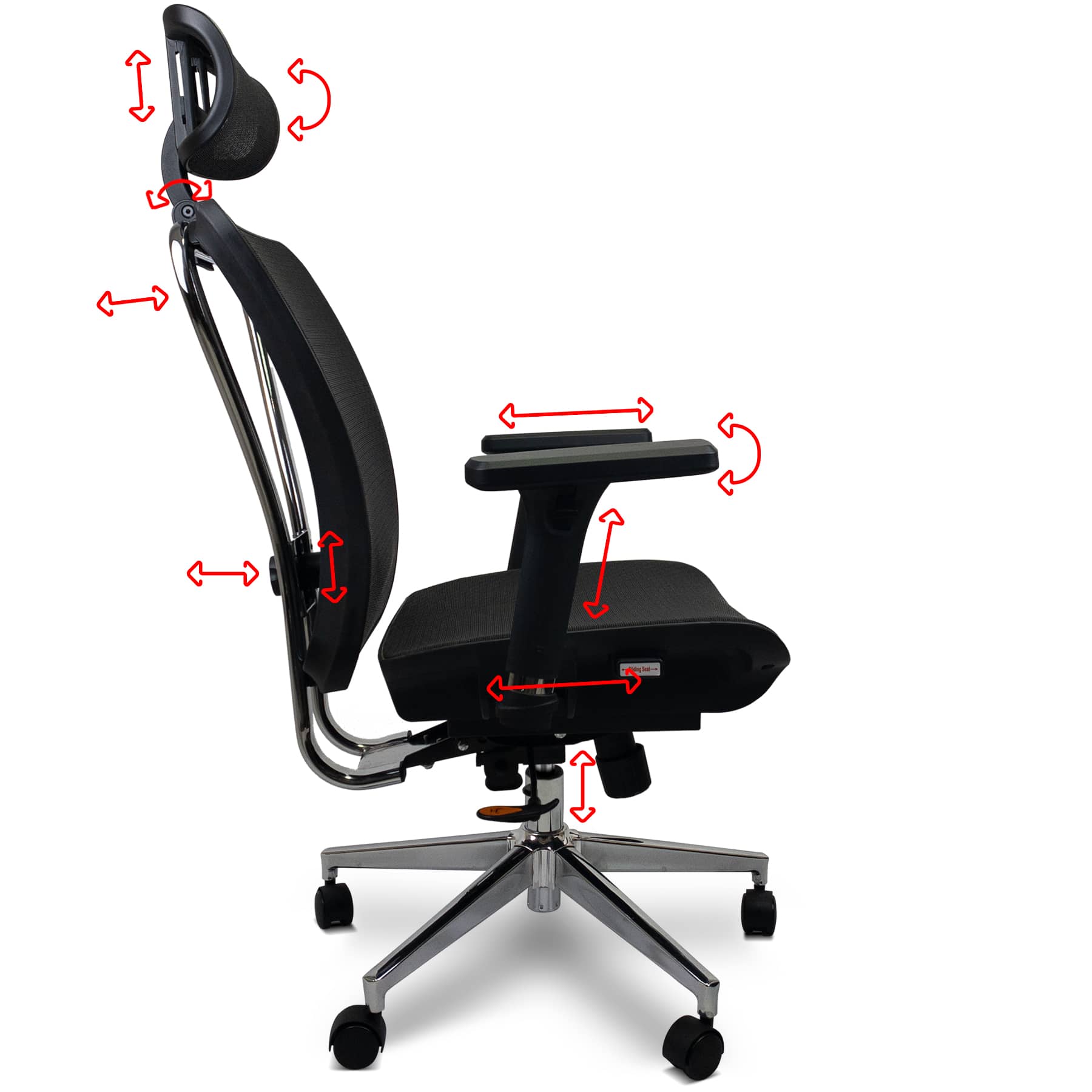 Tela MeshBraço 3DBase Giratória em AlumínioAssento DeslizanteRelax Avançado