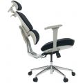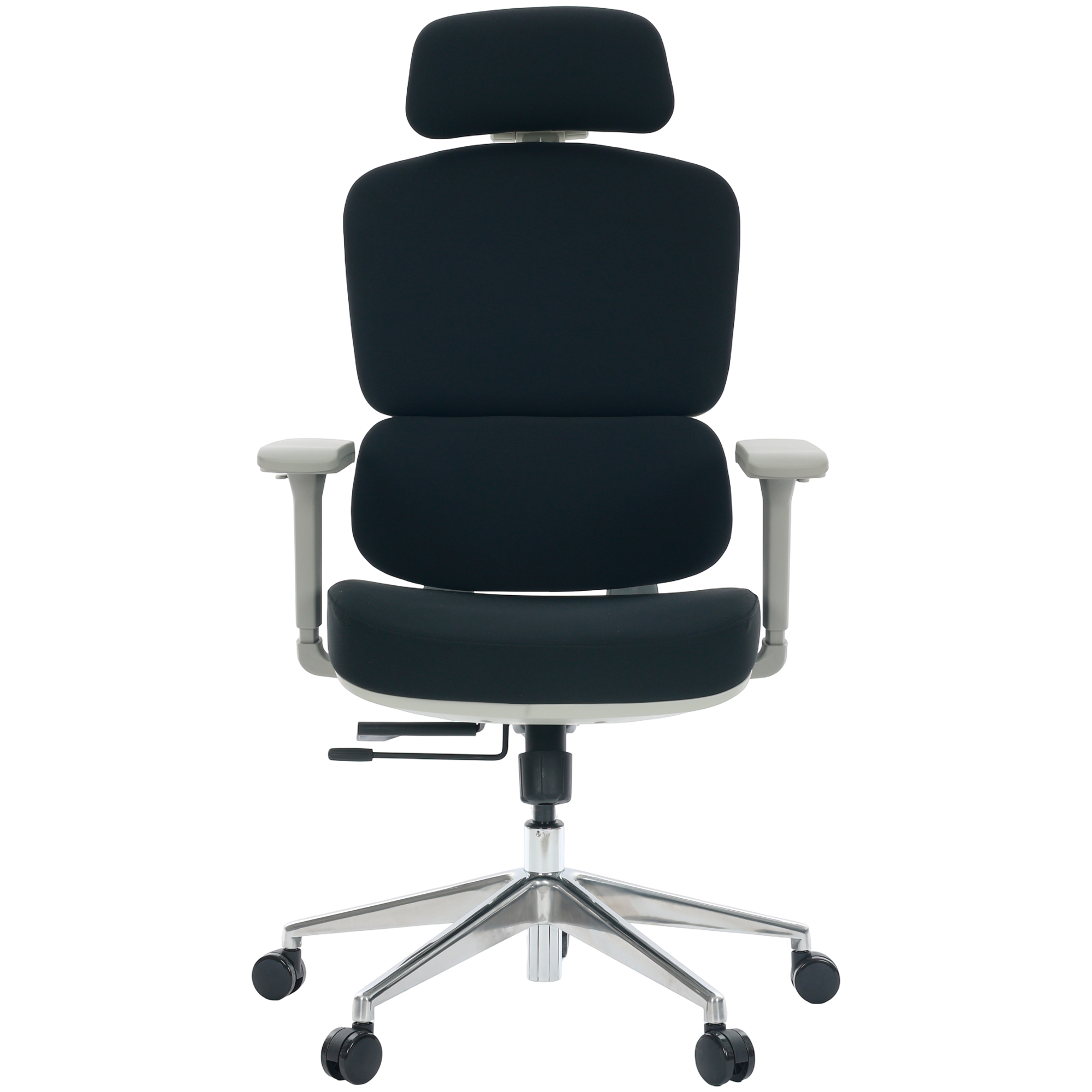 Atende bem porque combina regulagens de apoio de cabeça, encosto, assento deslizante e braços 4D, permitindo ajuste fino dos pontos de contato do corpo.