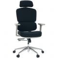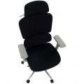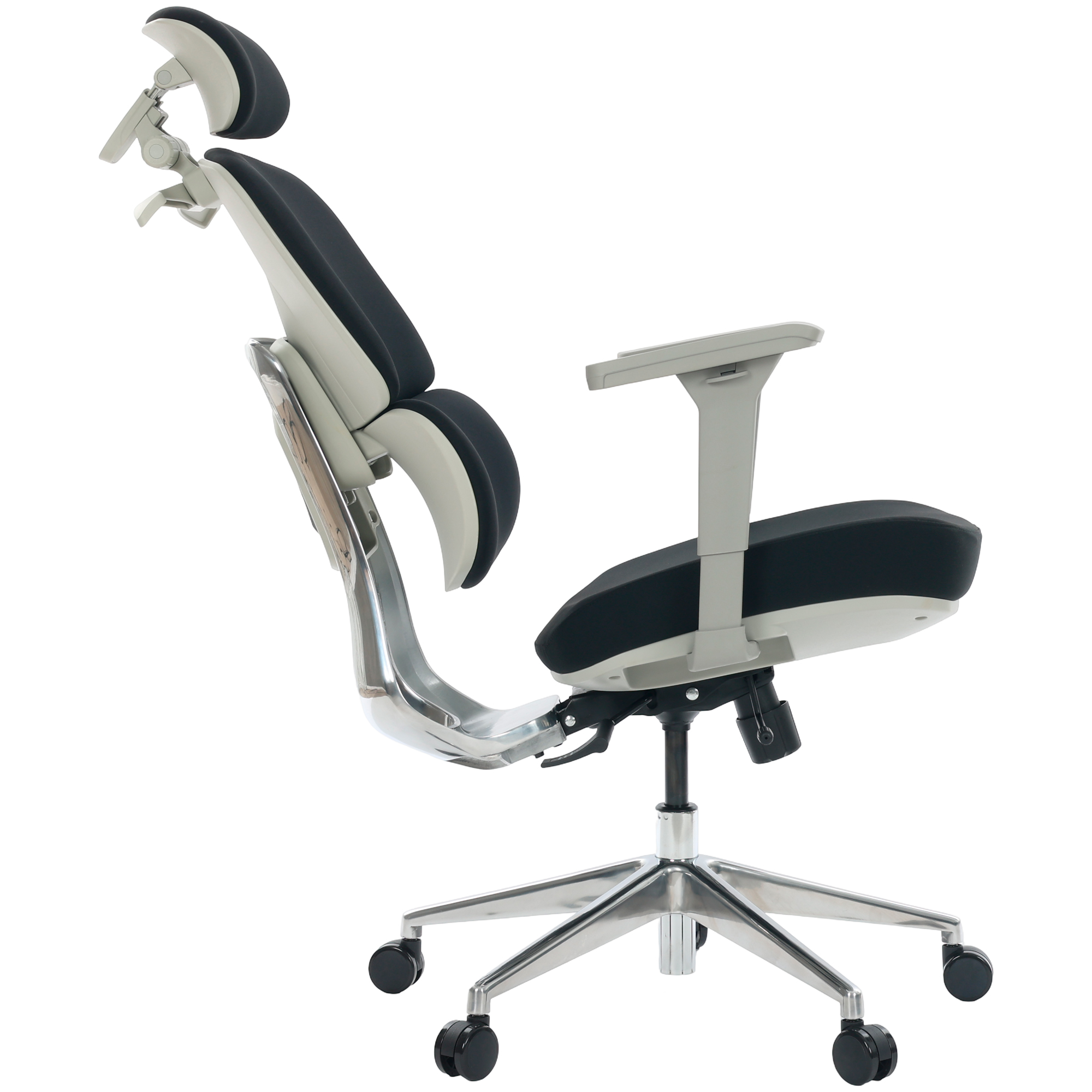 Cadeira de Escritório Comfy Clarity Cinza Tecido Preto, Base Alumínio, Braço 4D, Assento Deslizante Relax