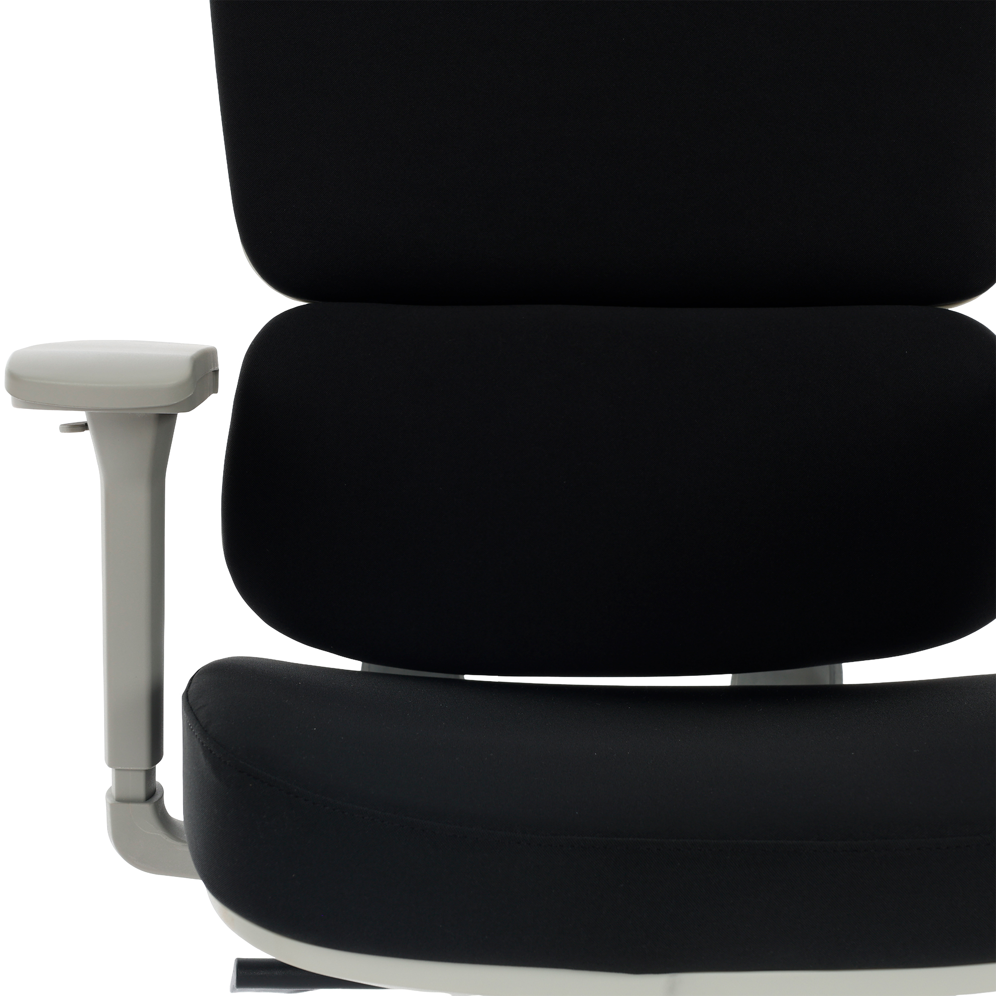 Com apoio de cabeça ajustável, encosto em altura, assento deslizante e braços 4D, a Clarity permite regular pontos-chave de contato para melhorar alinhamento de cervical, tronco, quadril e membros superiores.