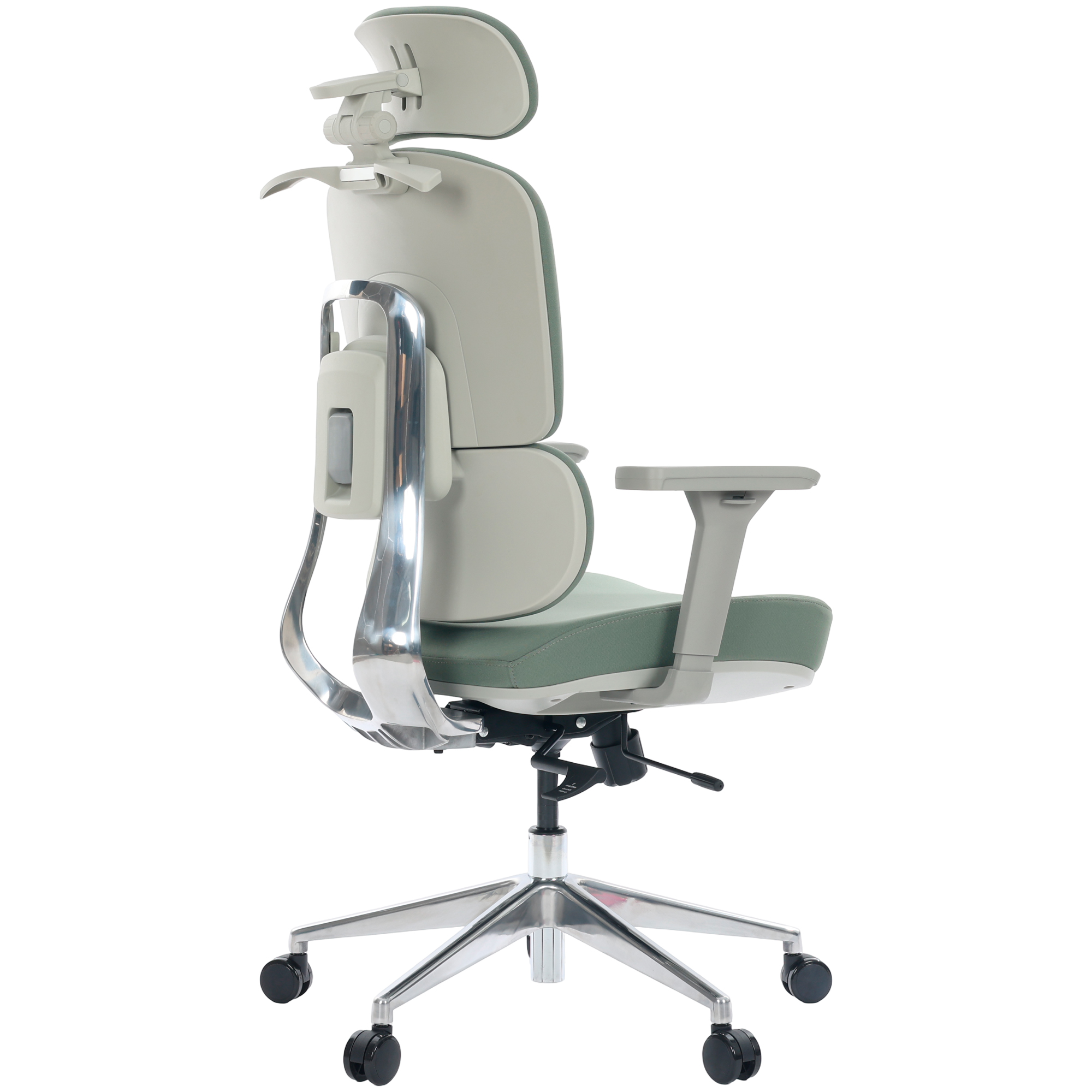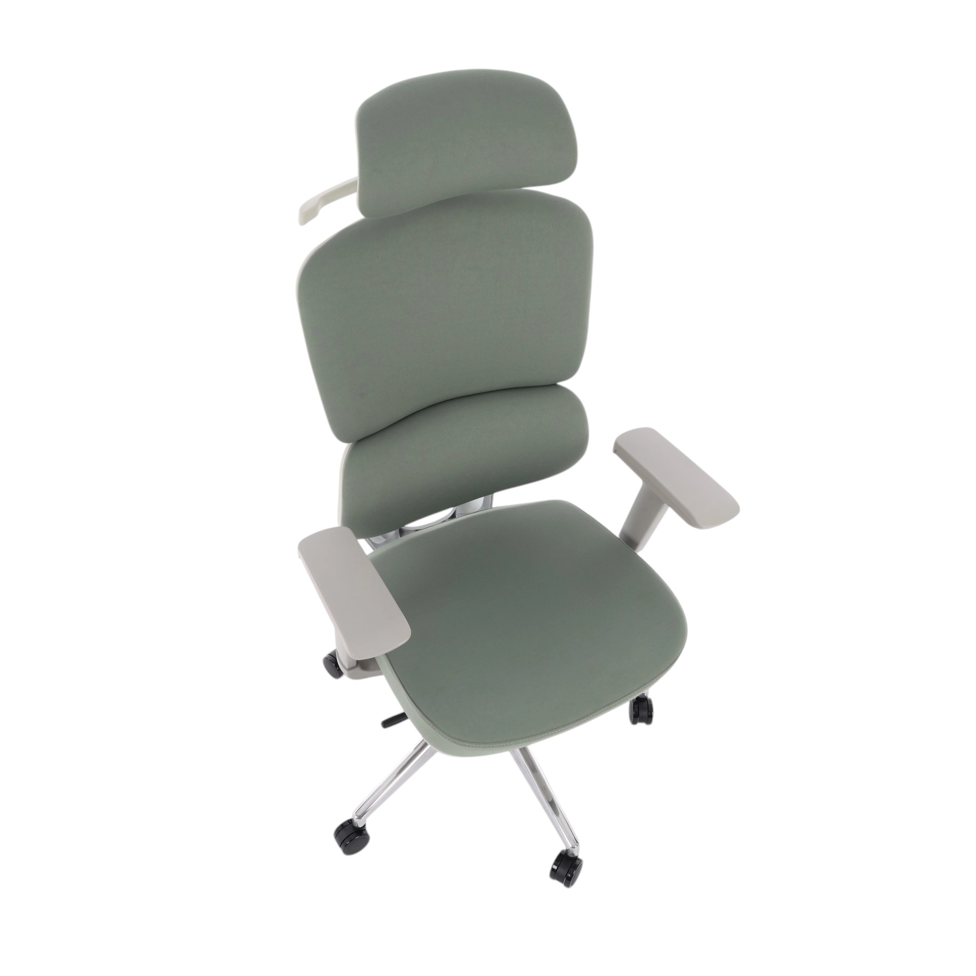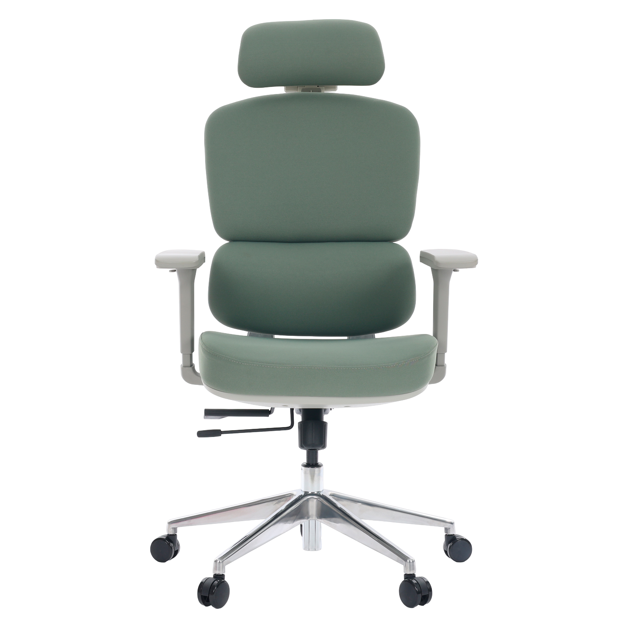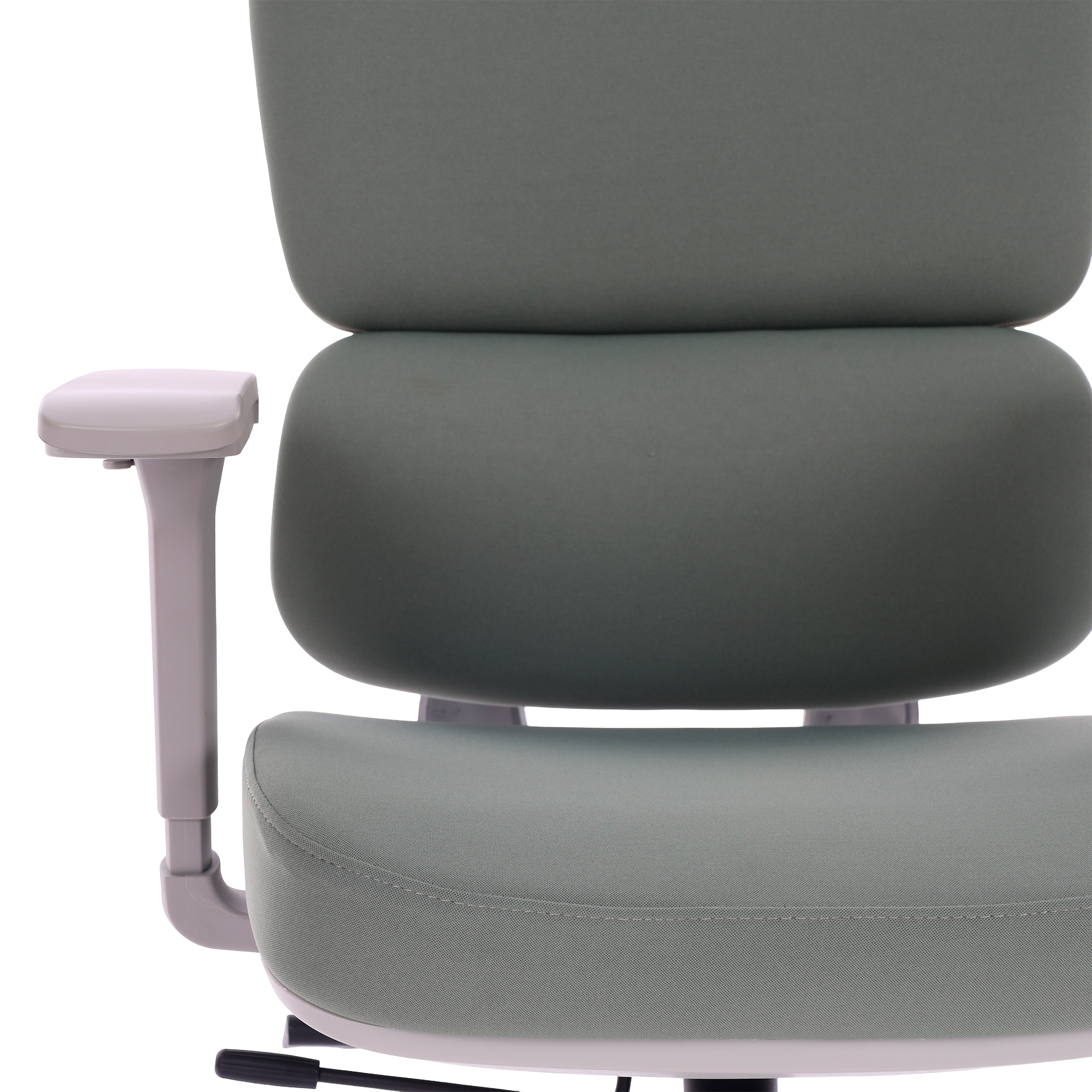 Cadeira de Escritório Comfy Clarity Cinza Tecido Verde, Base Alumínio, Braço 4D, Assento Deslizante Relax