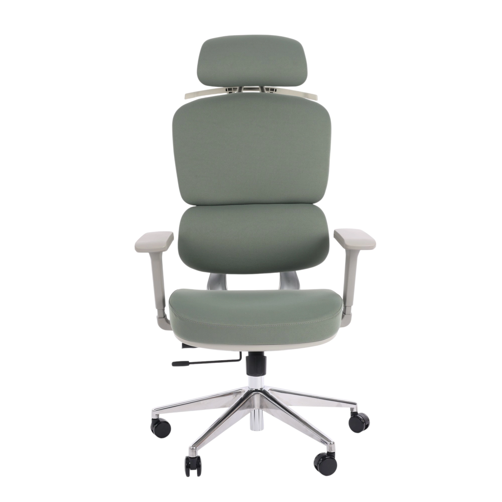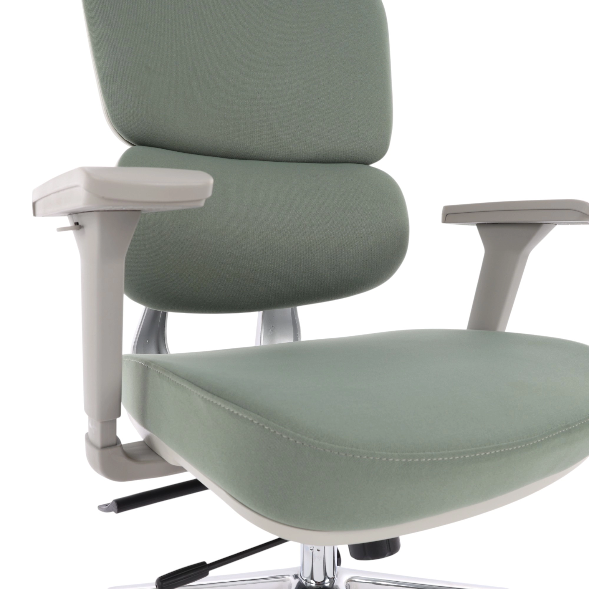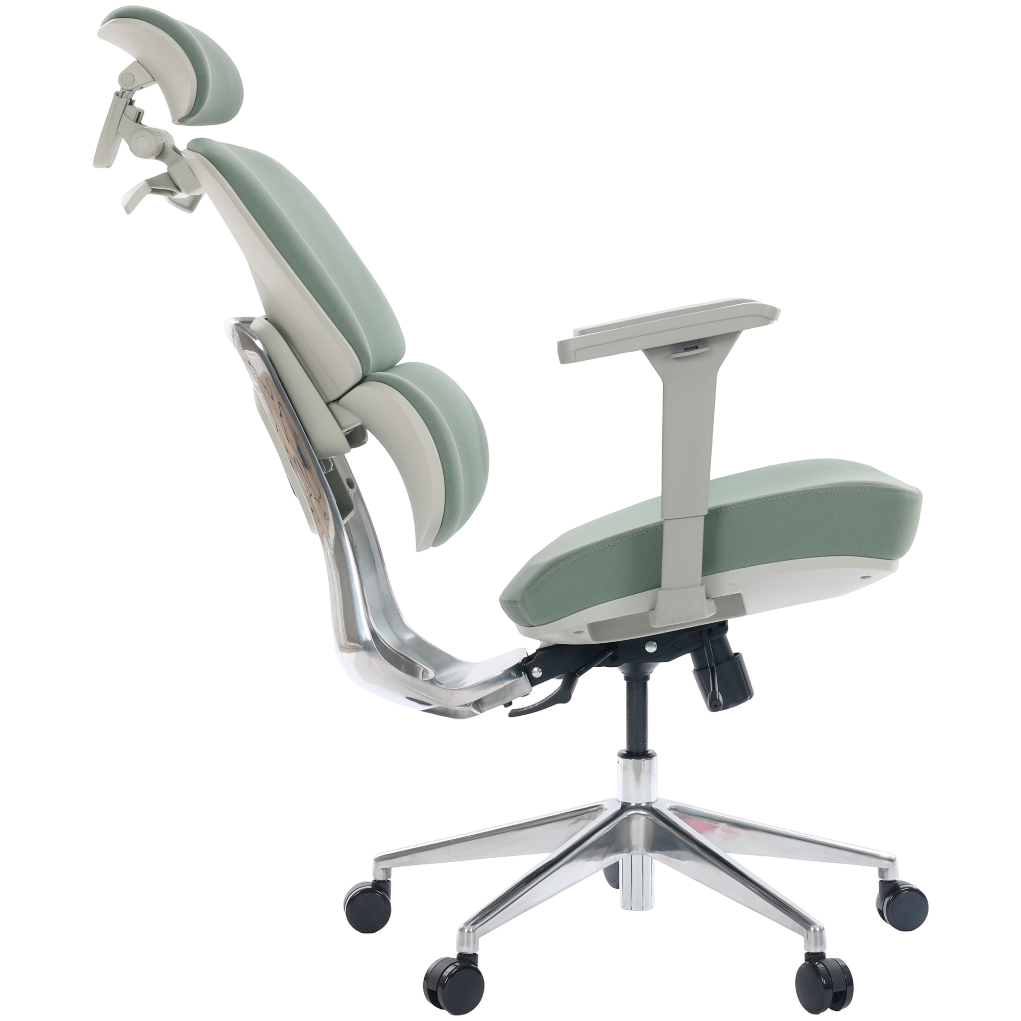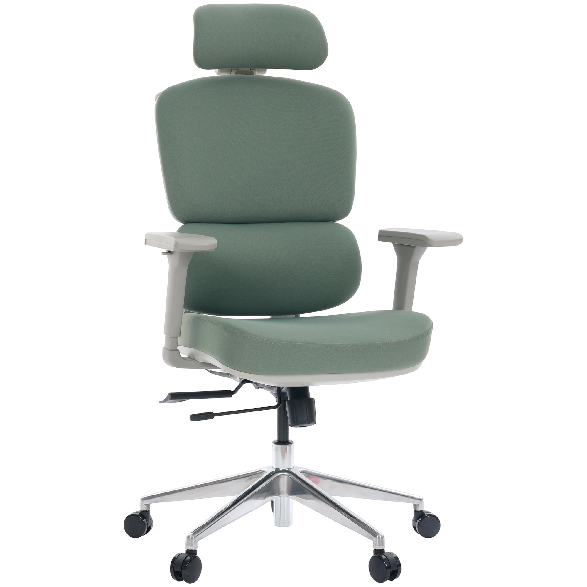 Cadeira de Escritório Comfy Clarity Cinza Tecido Verde, Base Alumínio, Braço 4D, Assento Deslizante Relax