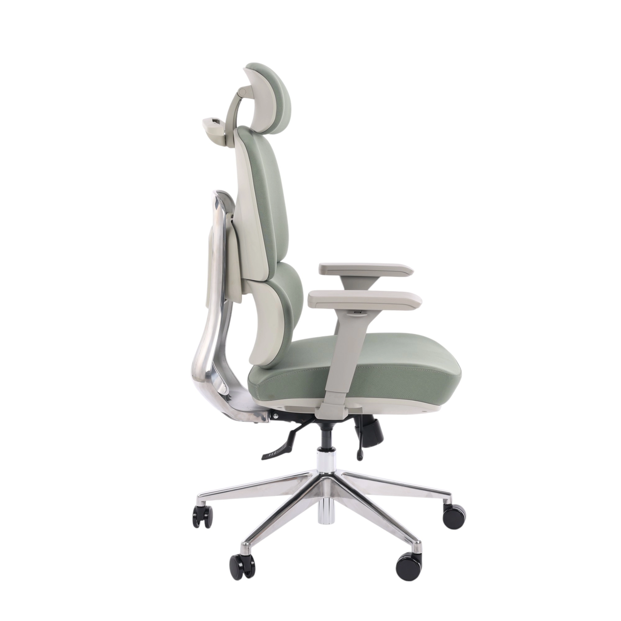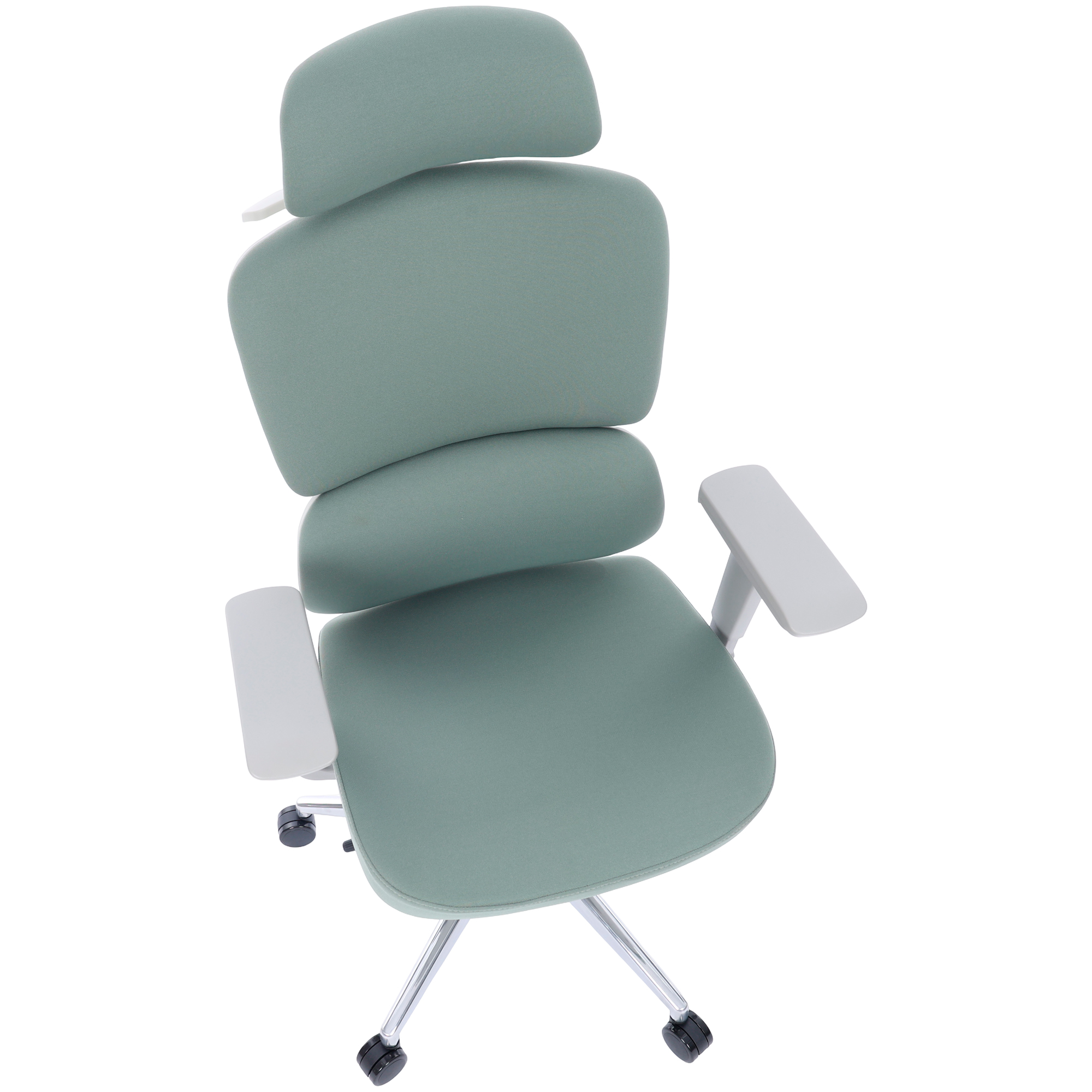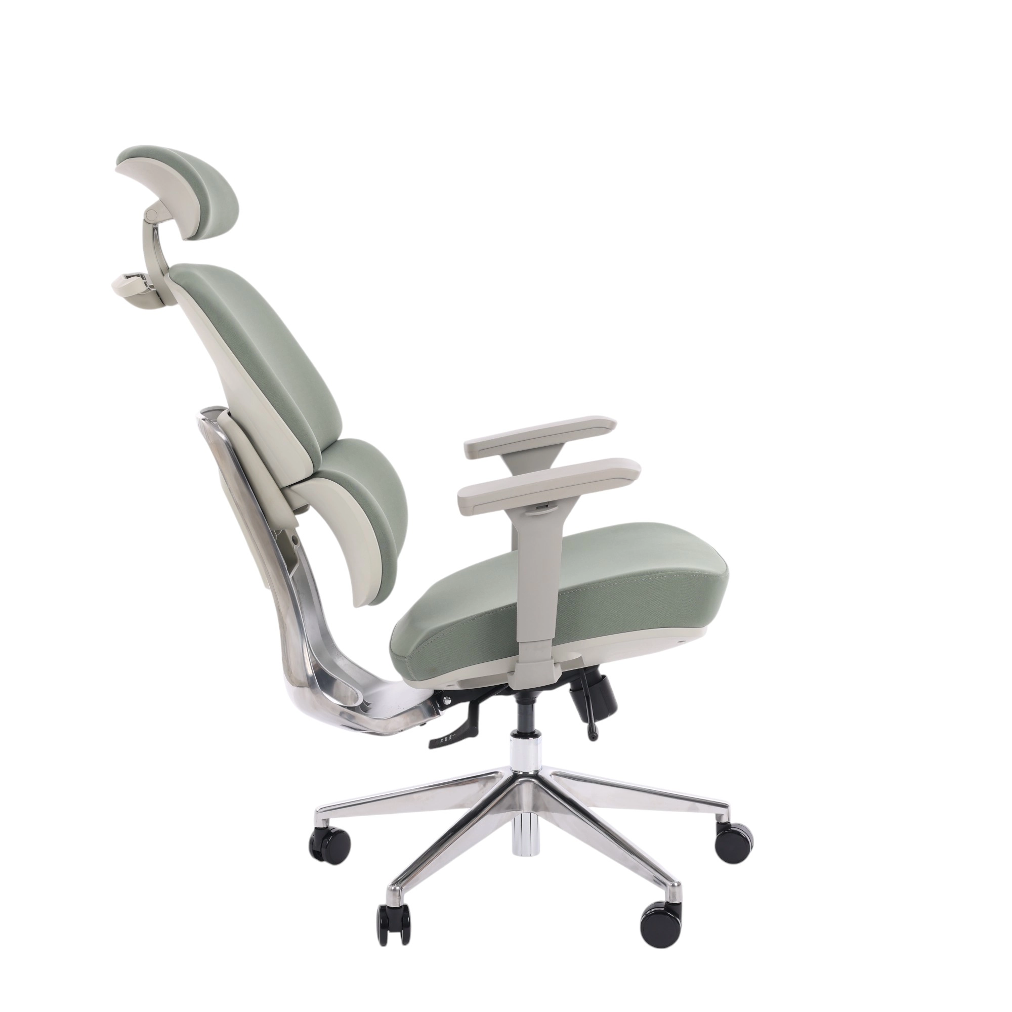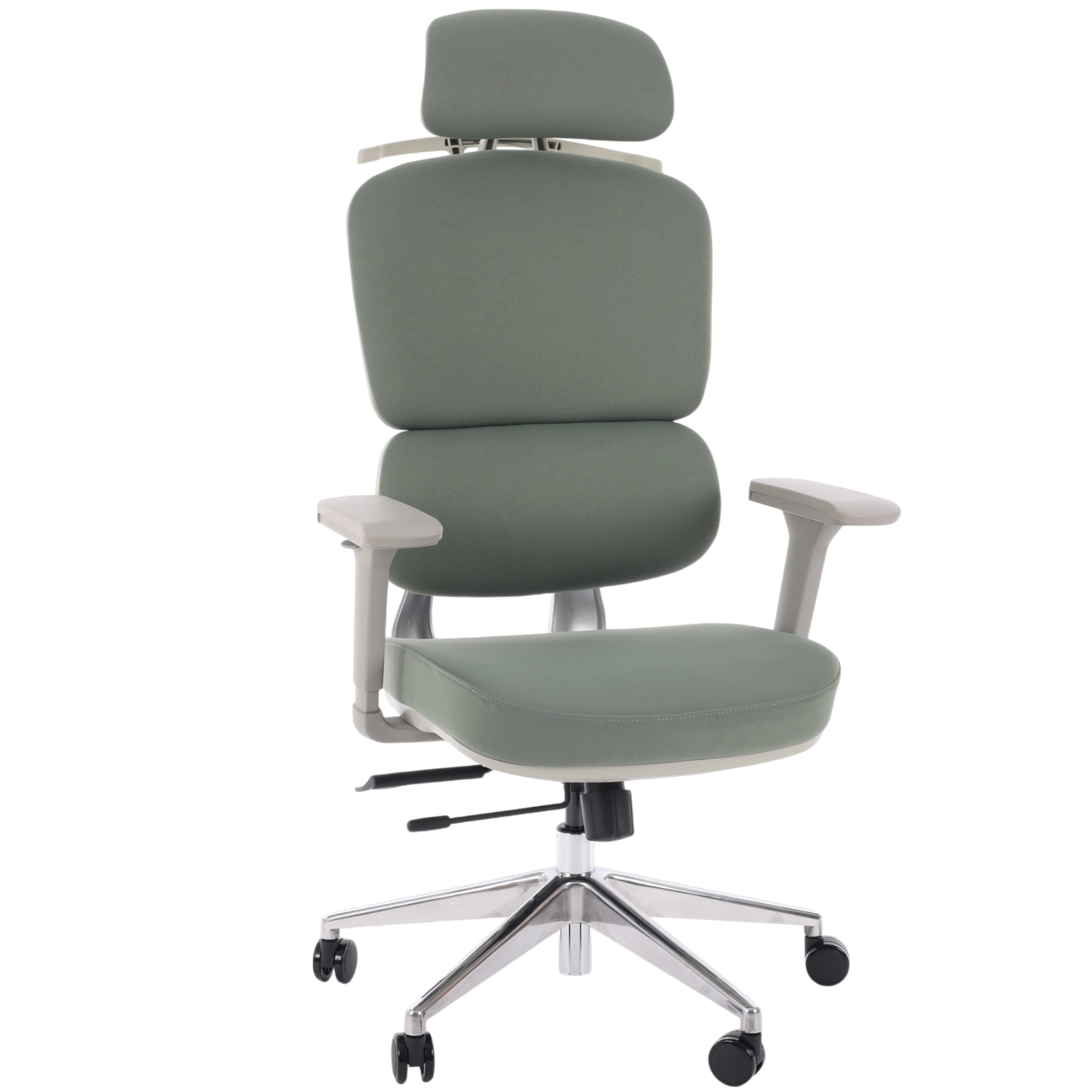 Cadeira de Escritório Comfy Clarity Cinza Tecido Verde, Base Alumínio, Braço 4D, Assento Deslizante Relax