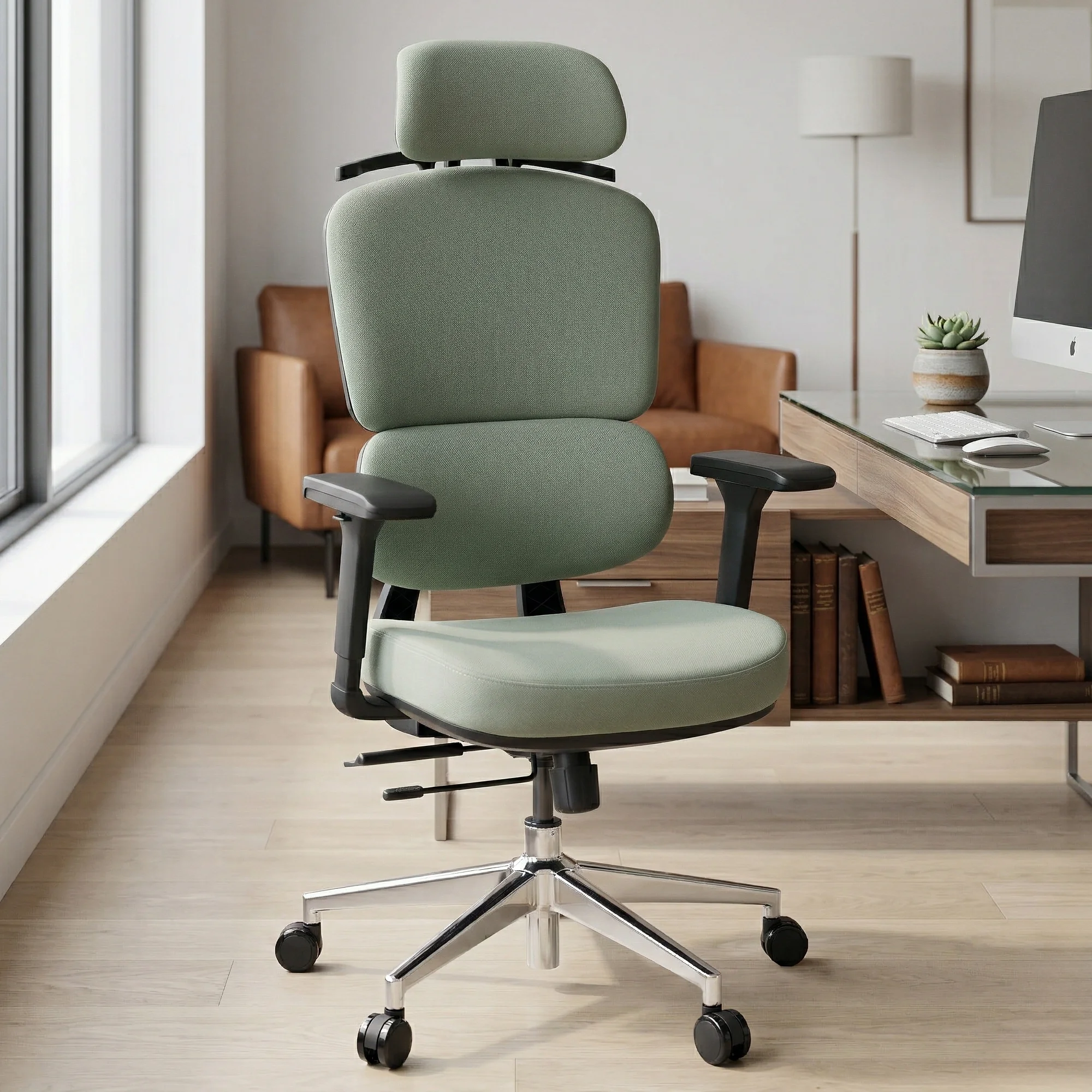 Com acabamento sofisticado em tecido verde e estrutura robusta, ela transforma qualquer ambiente corporativo ou home office em um espaço mais produtivo, saudável e elegante.