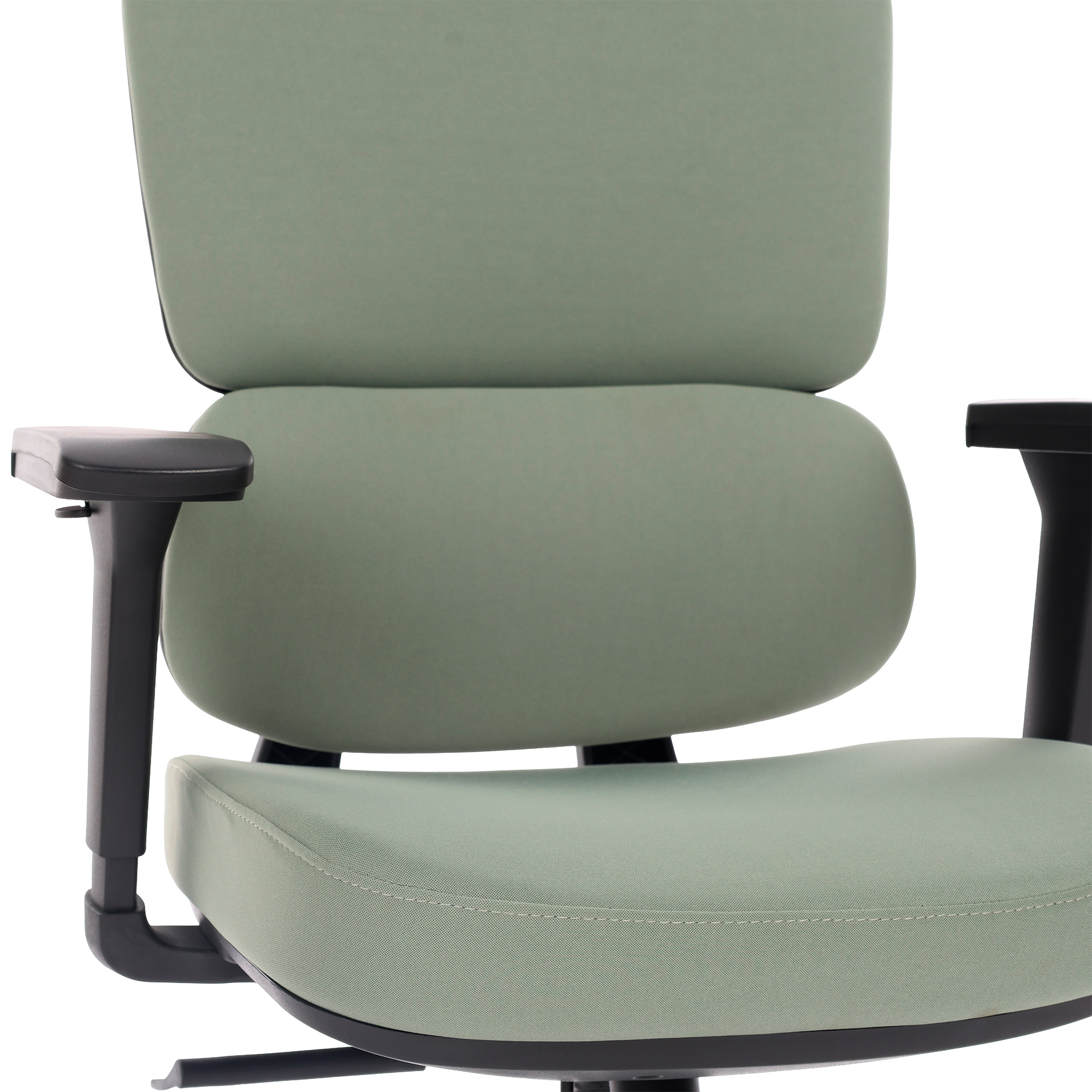 Cadeira de Escritório Comfy Clarity Lite Preta Tecido Verde, Braço 4D, Assento Deslizante e Relax
