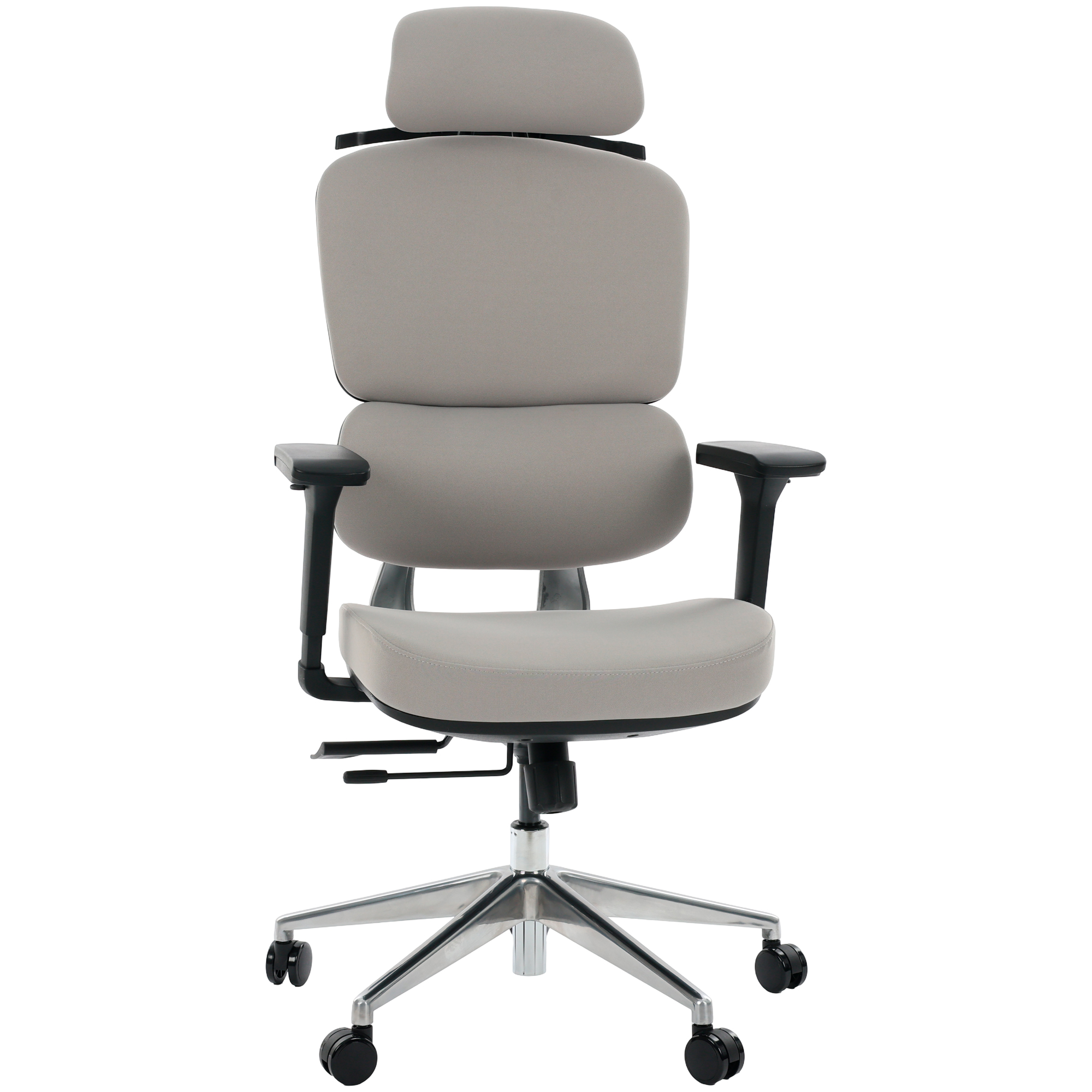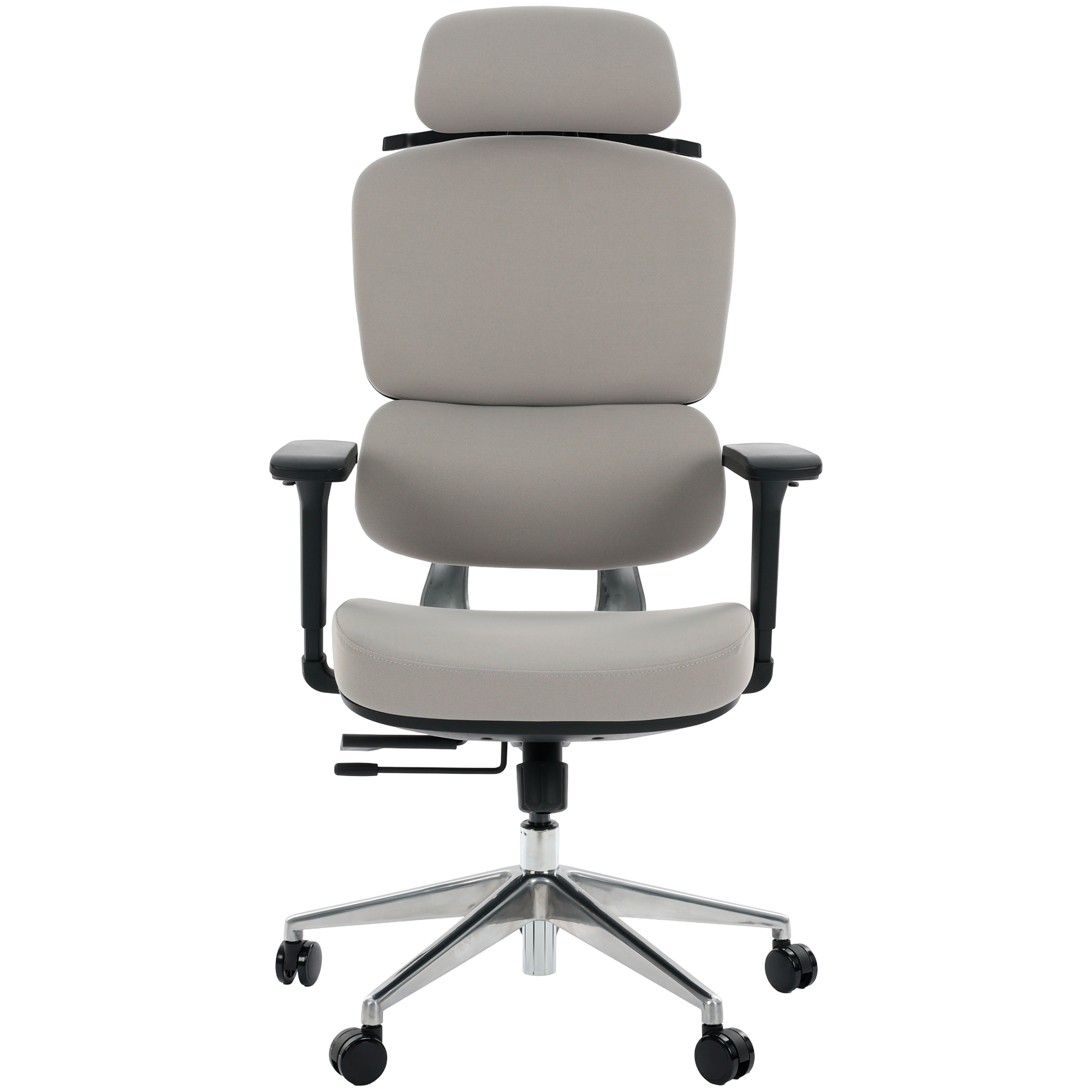 Cadeira de Escritório Comfy Clarity Preta Tecido Cinza, Base Alumínio Braço 4D, Assento Deslizante Relax