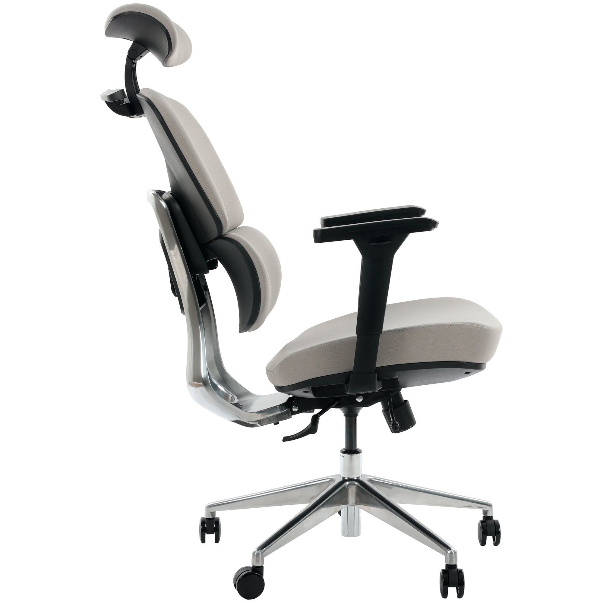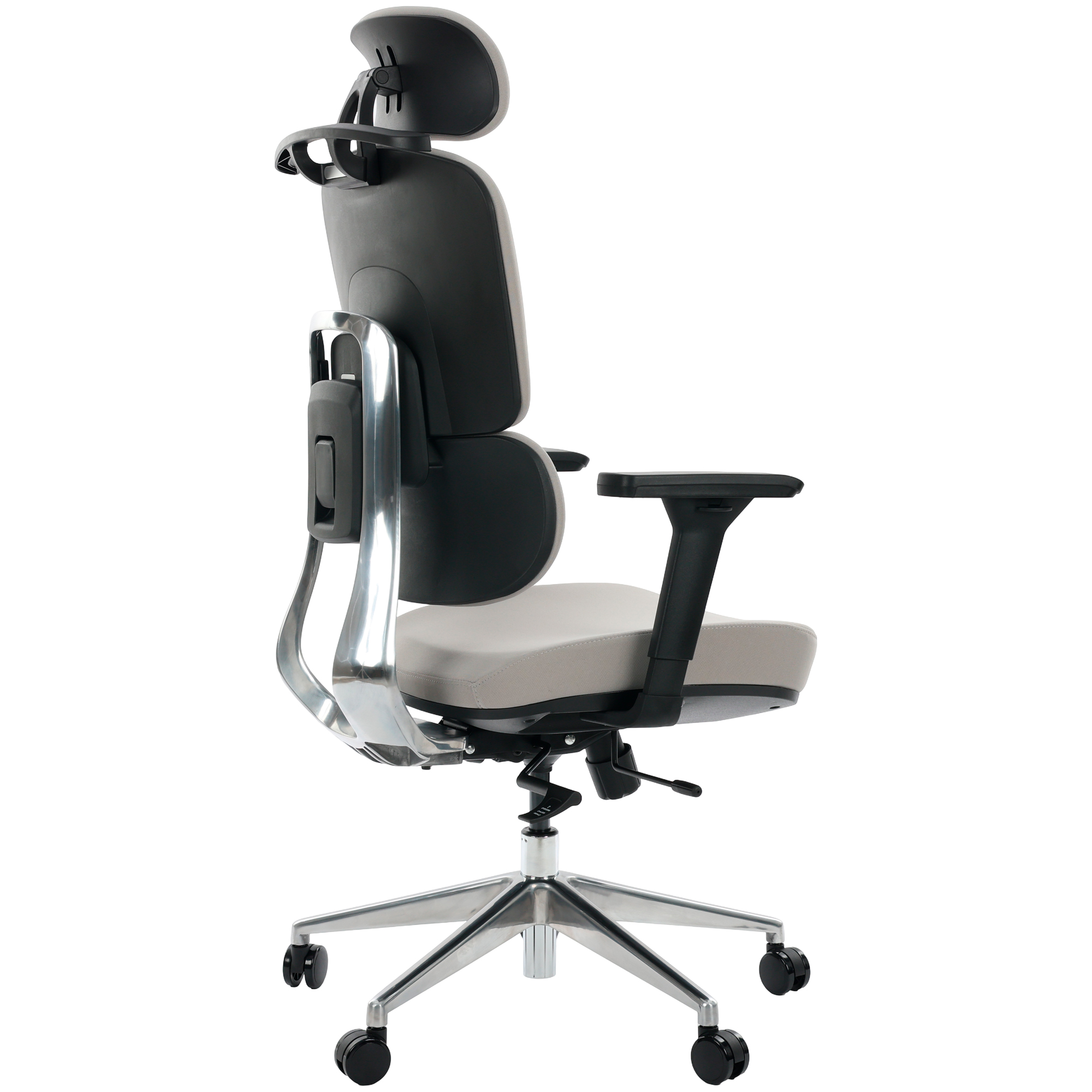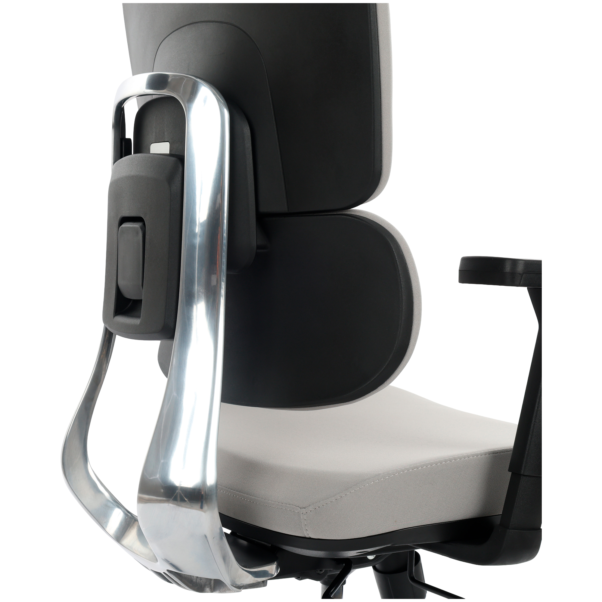 A base em alumínio oferece máxima resistência e acabamento sofisticado, elevando o padrão estético da cadeira.