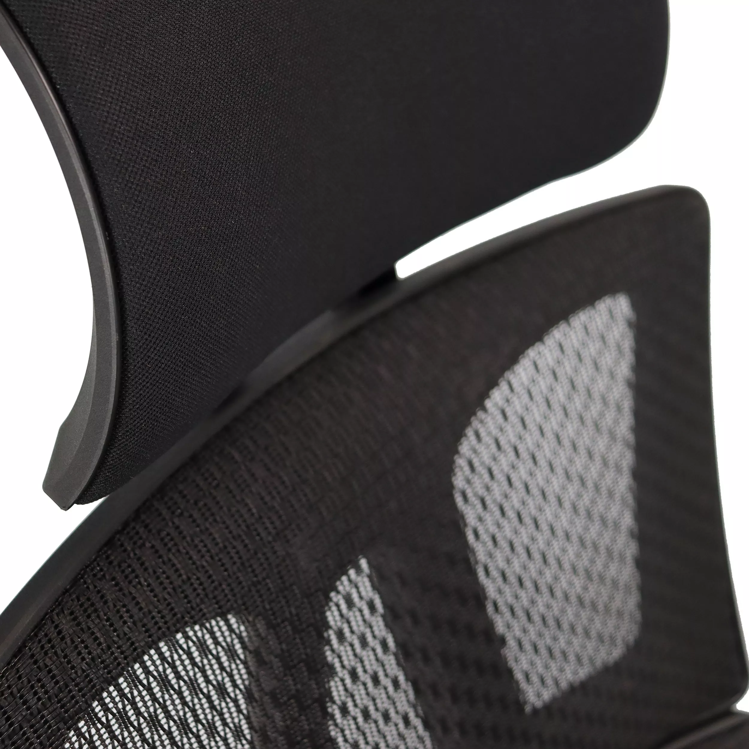 A cadeira de escritório ErgoFuture possui encosto de cabeça com ajuste de altura e de rotação. Essa regulagem oferece mais conforto para que a sua coluna fique bem acomodada durante toda a sua jornada de trabalho.