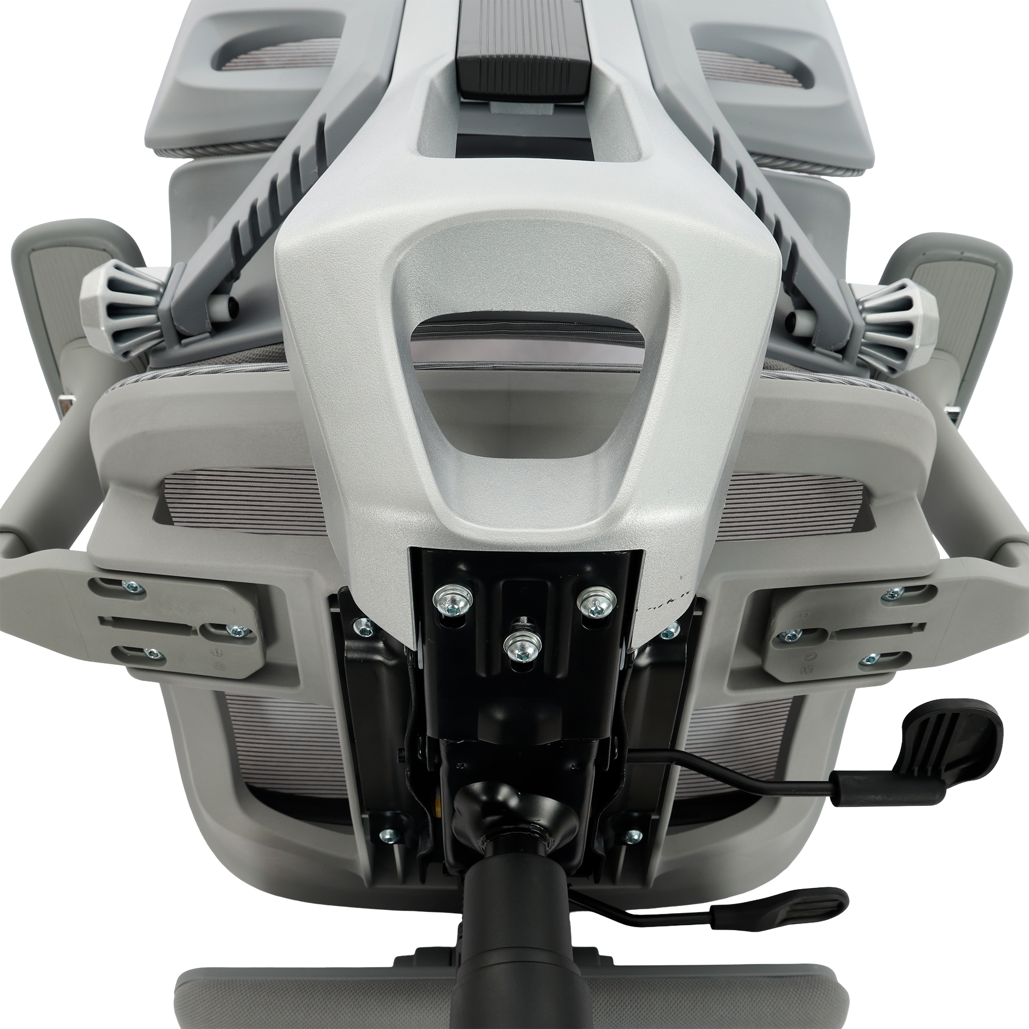 O ajuste de profundidade do assento em até 5 cm melhora o apoio das pernas, favorece a circulação sanguínea e proporciona uma postura mais confortável e saudável.