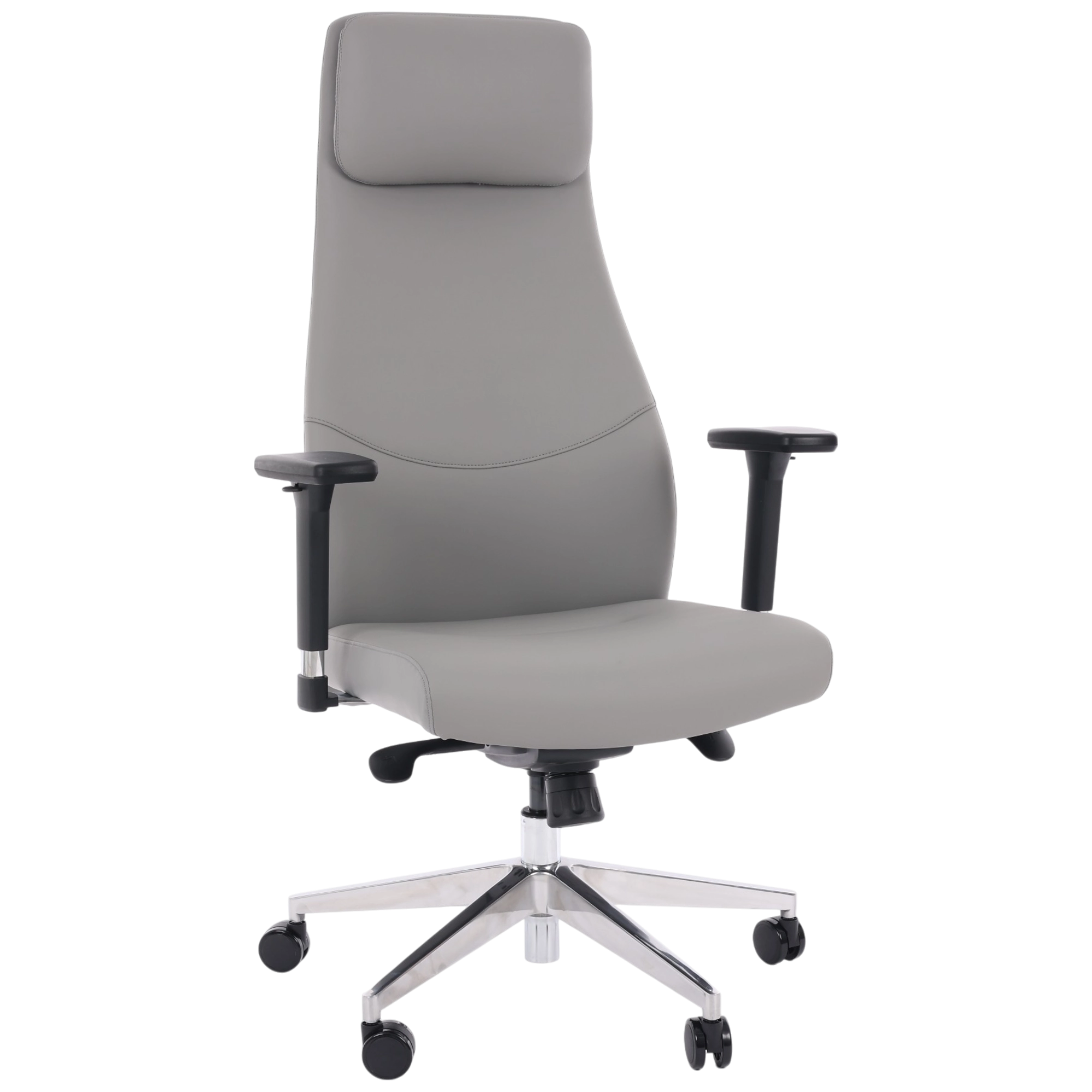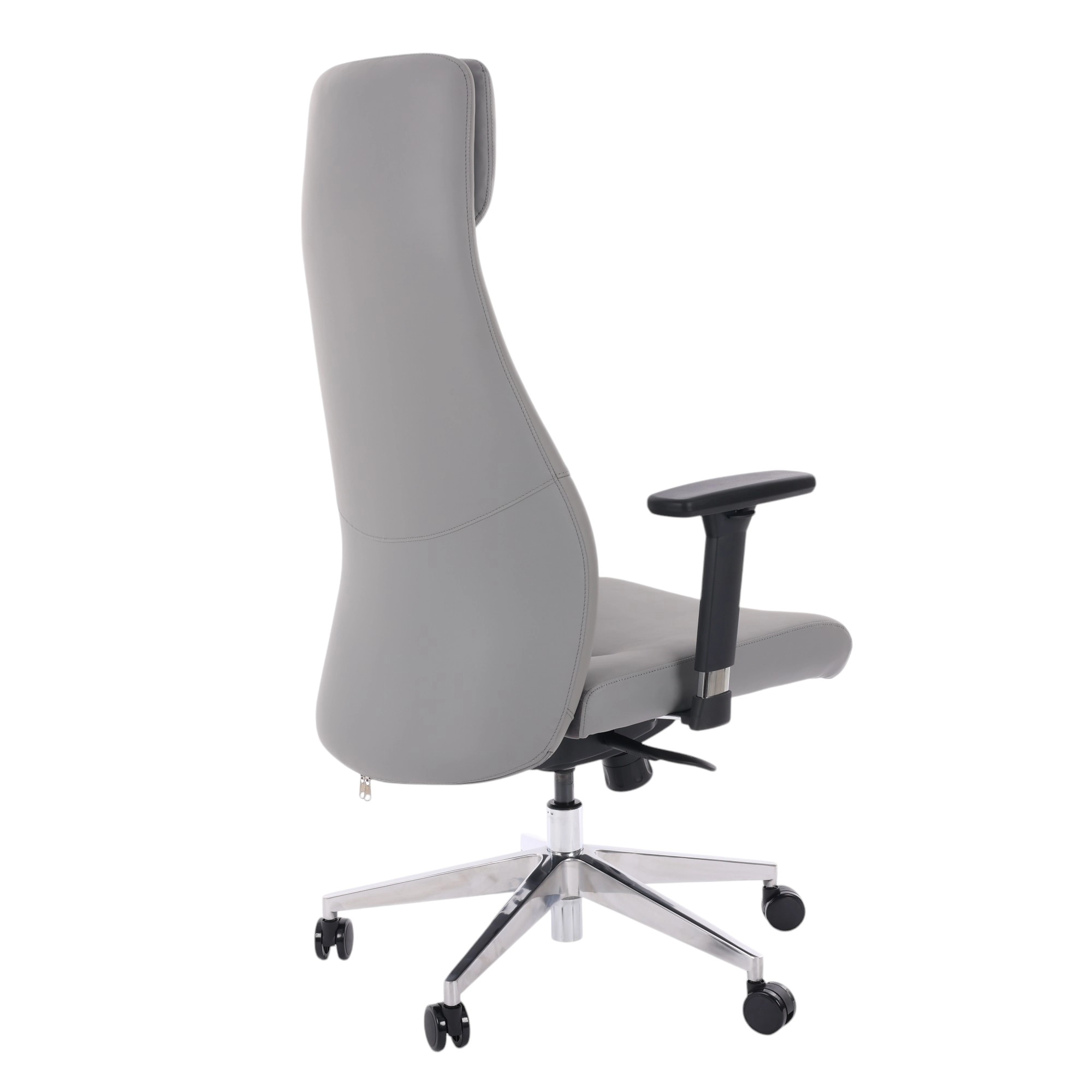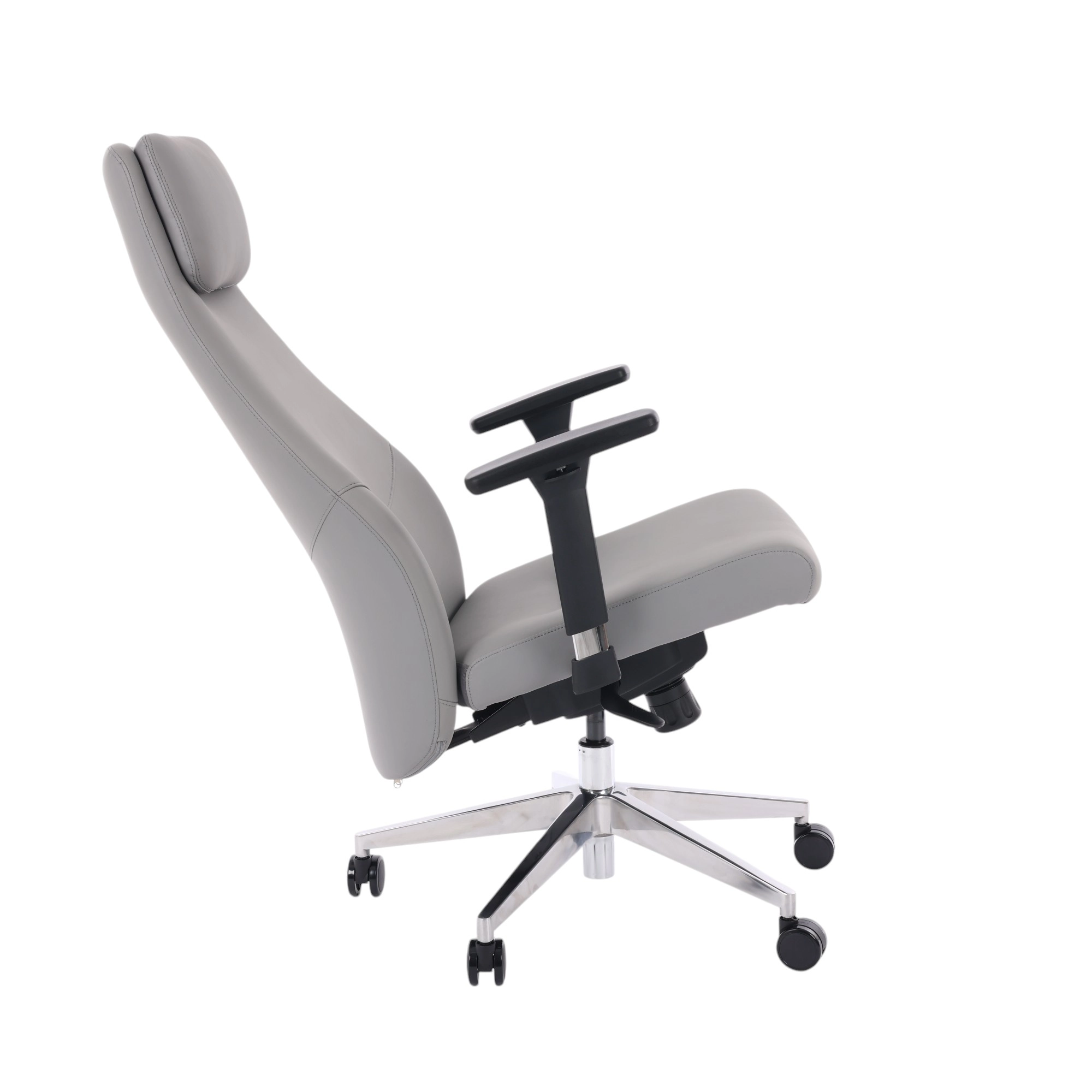 Cadeira de Escritório Comfy Luxe PVC Cinza, Base Alumínio, Braço 3D e Relax Avançado