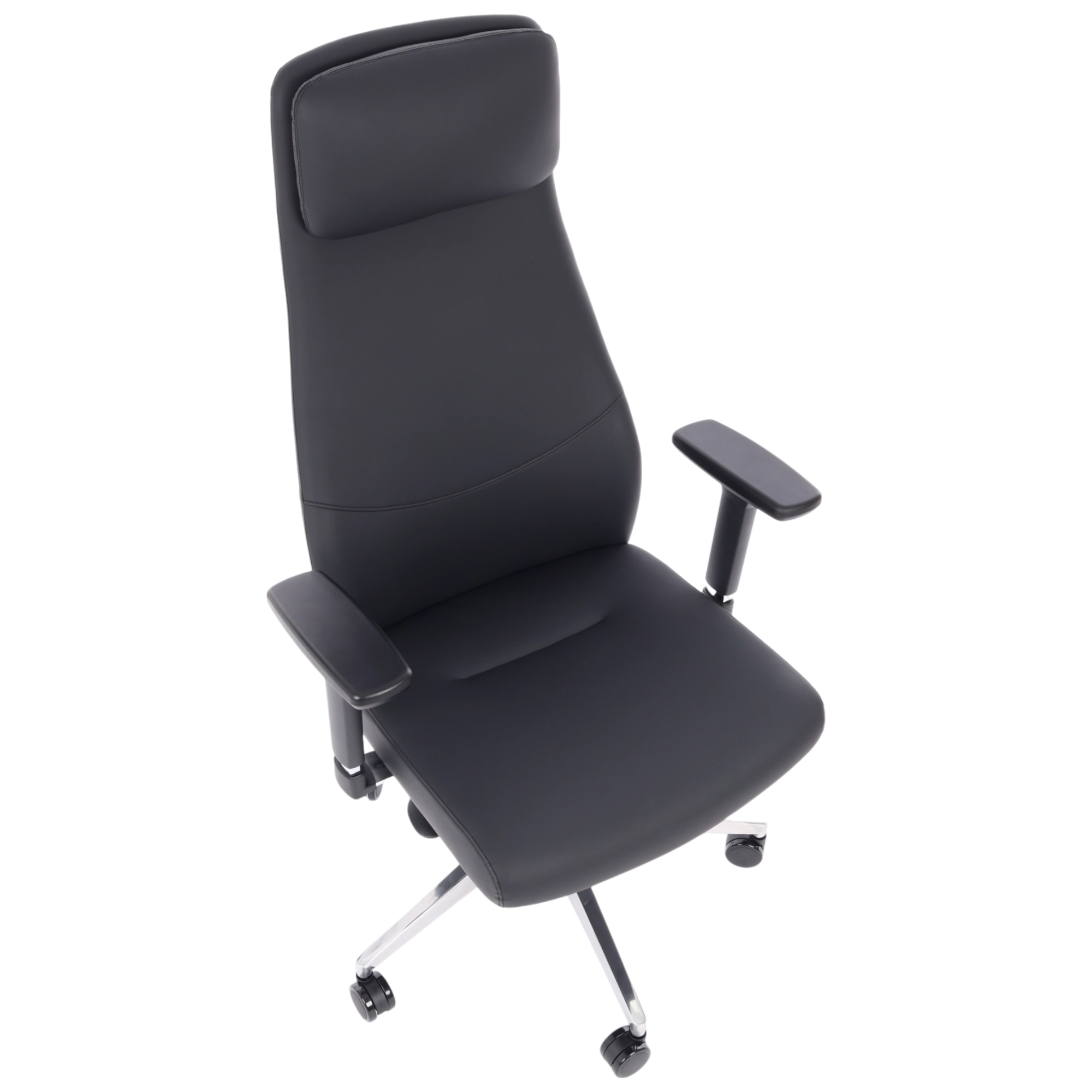Cadeira de Escritório Comfy Luxe PVC Preto, Base Alumínio, Braço 3D e Relax Avançado