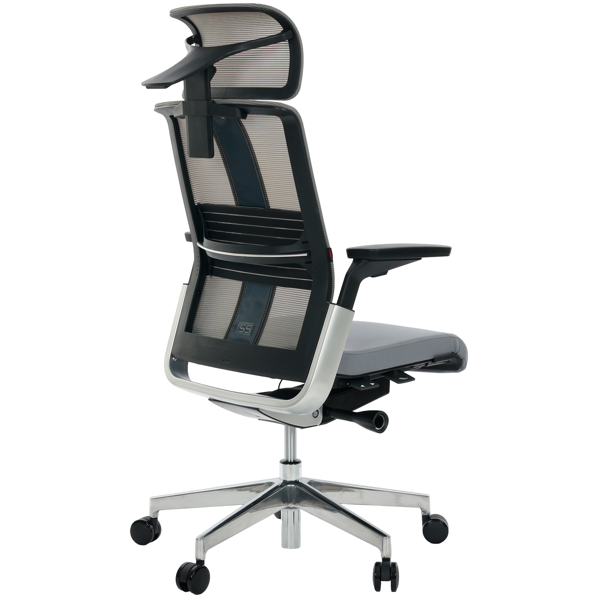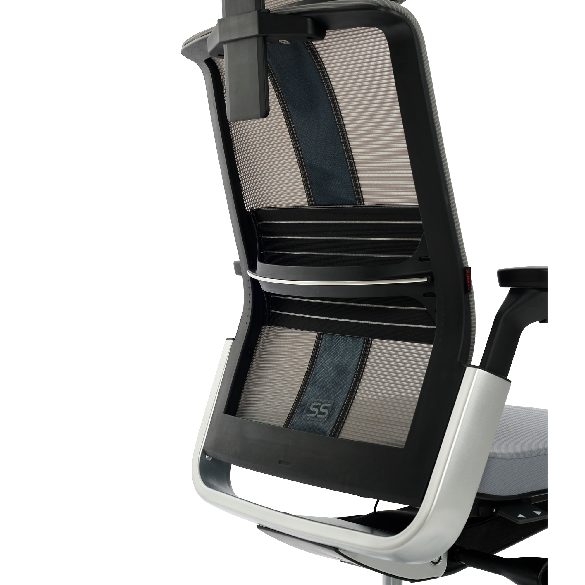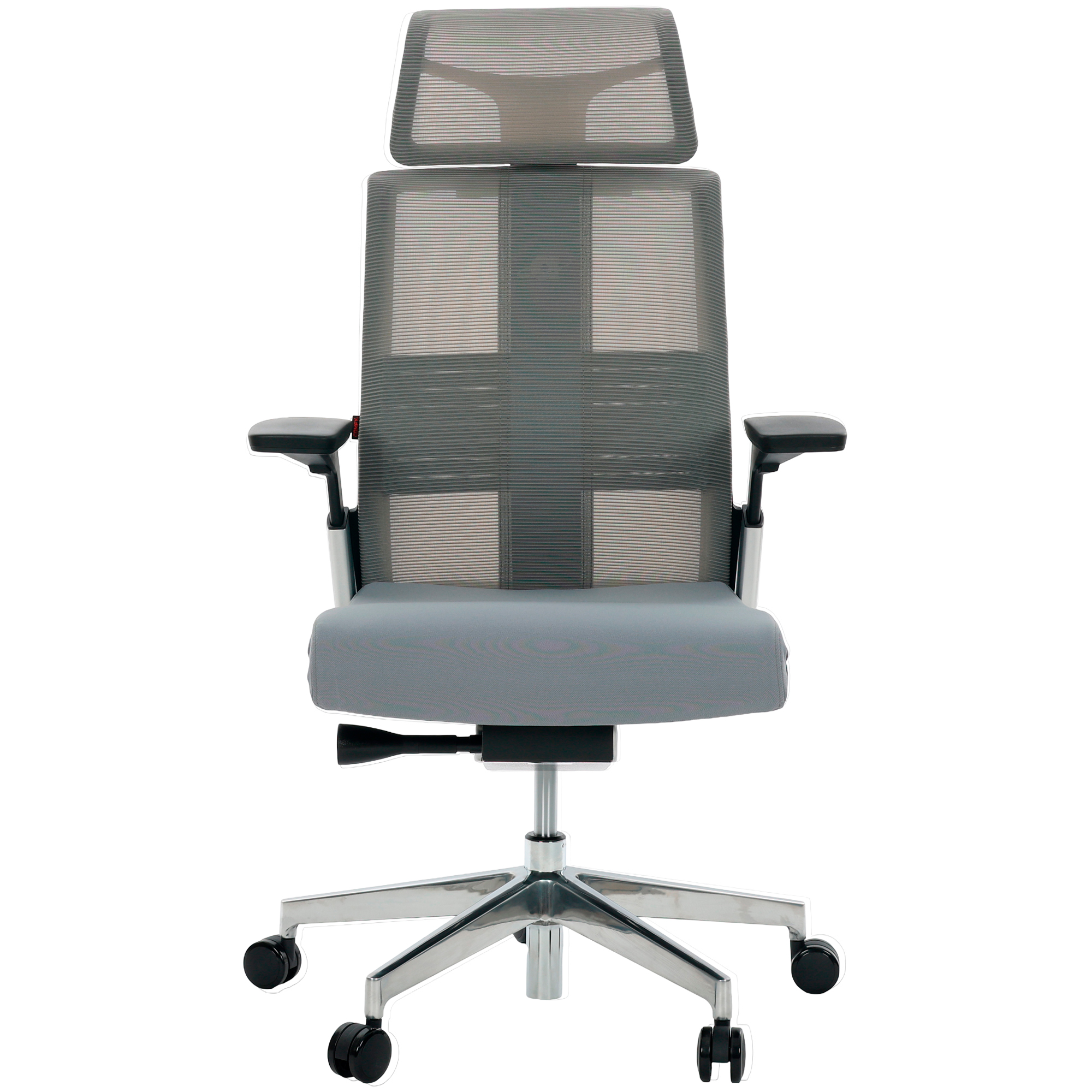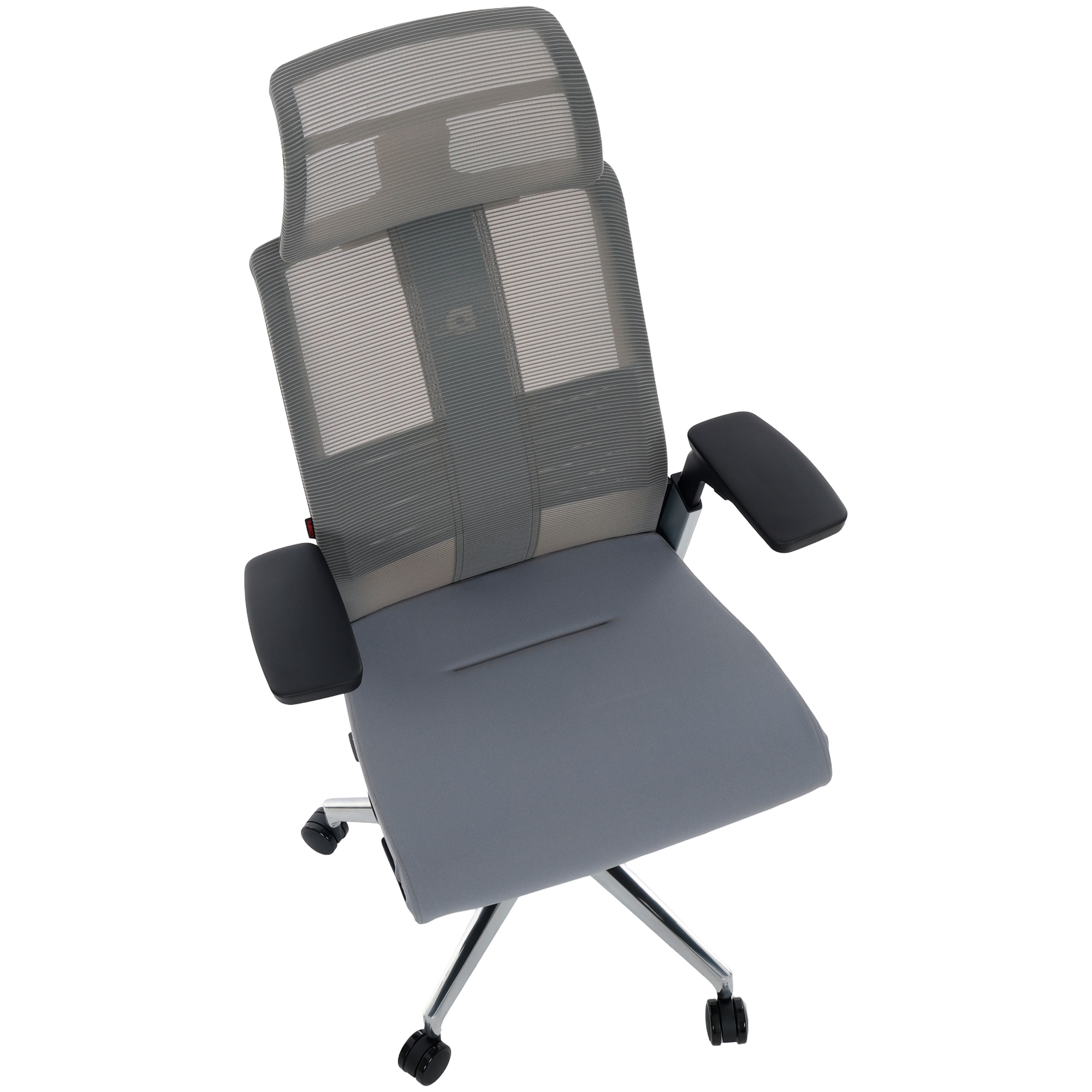 Cadeira de Escritório Comfy Match Plush Tela Mesh Cinza, Suporte SS, Braço e Apoio de Cabeça 4D