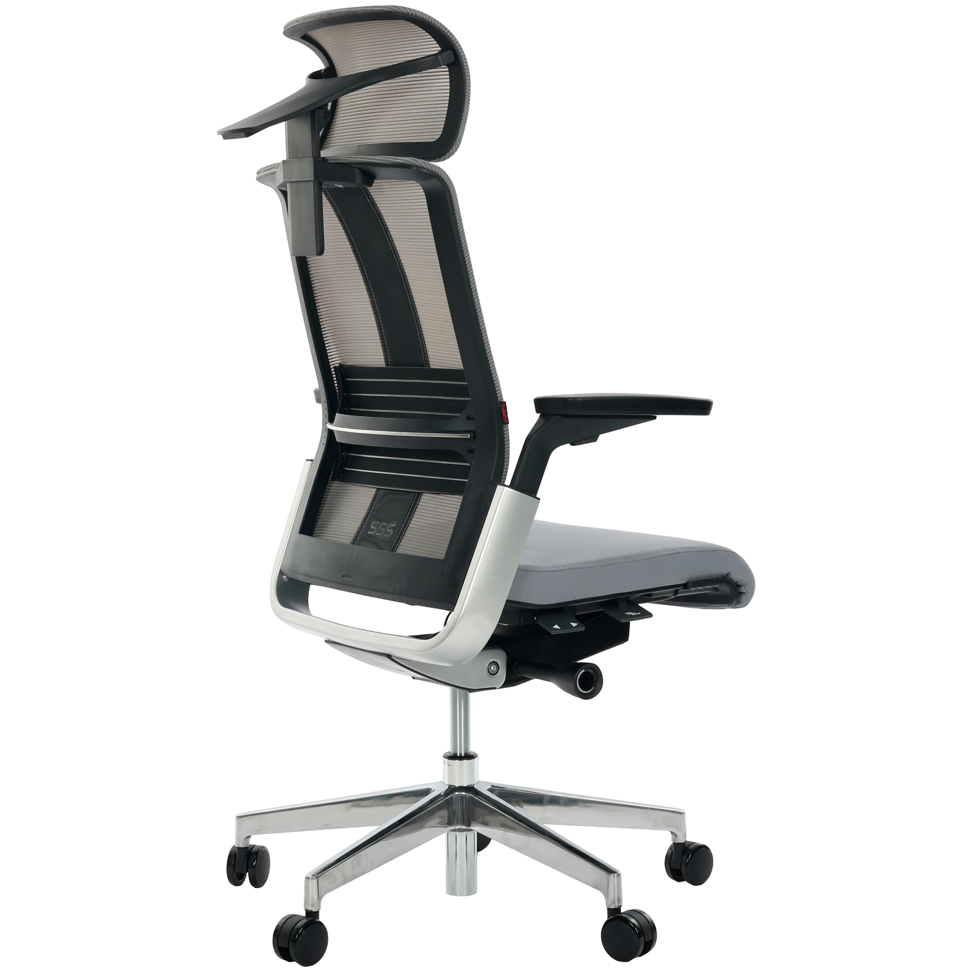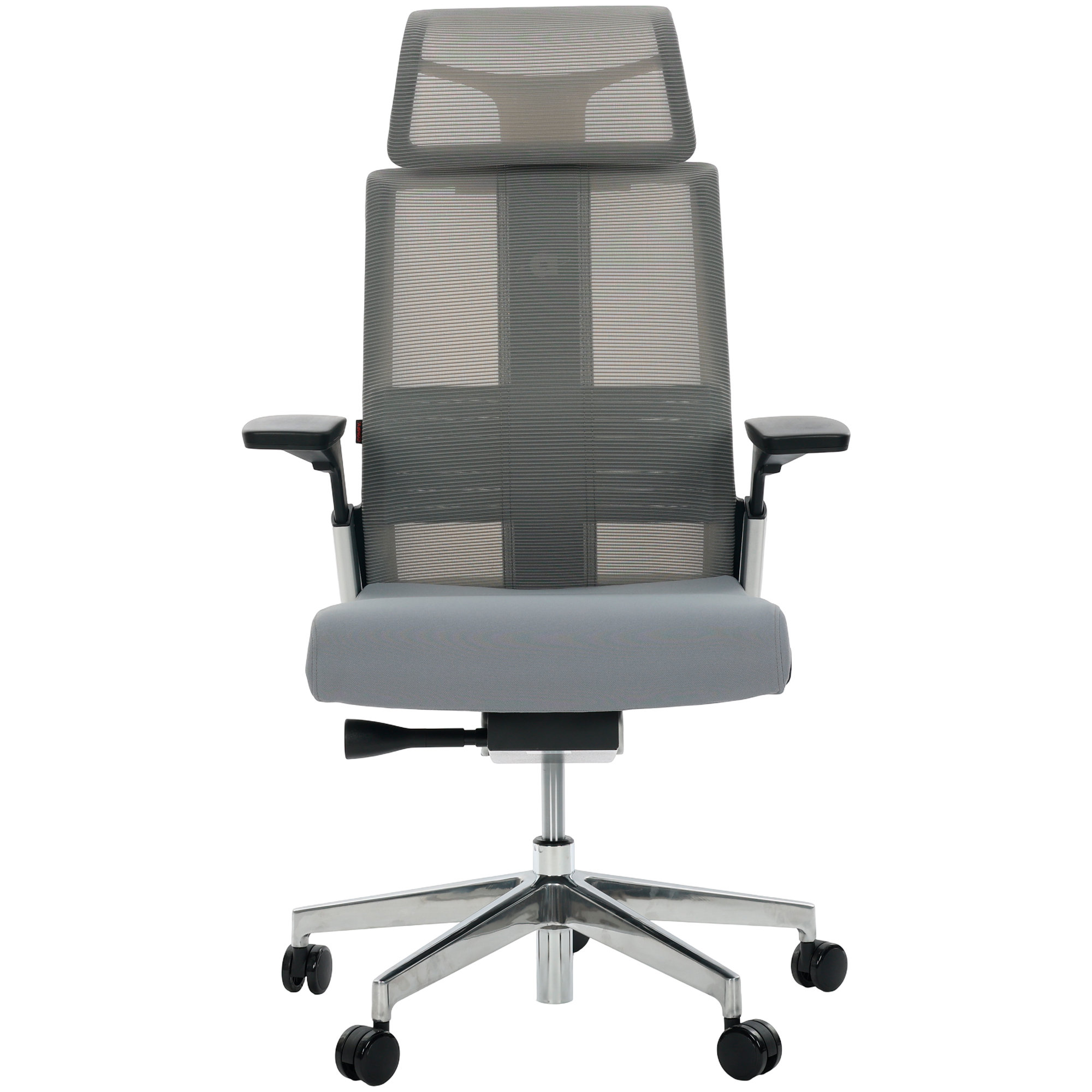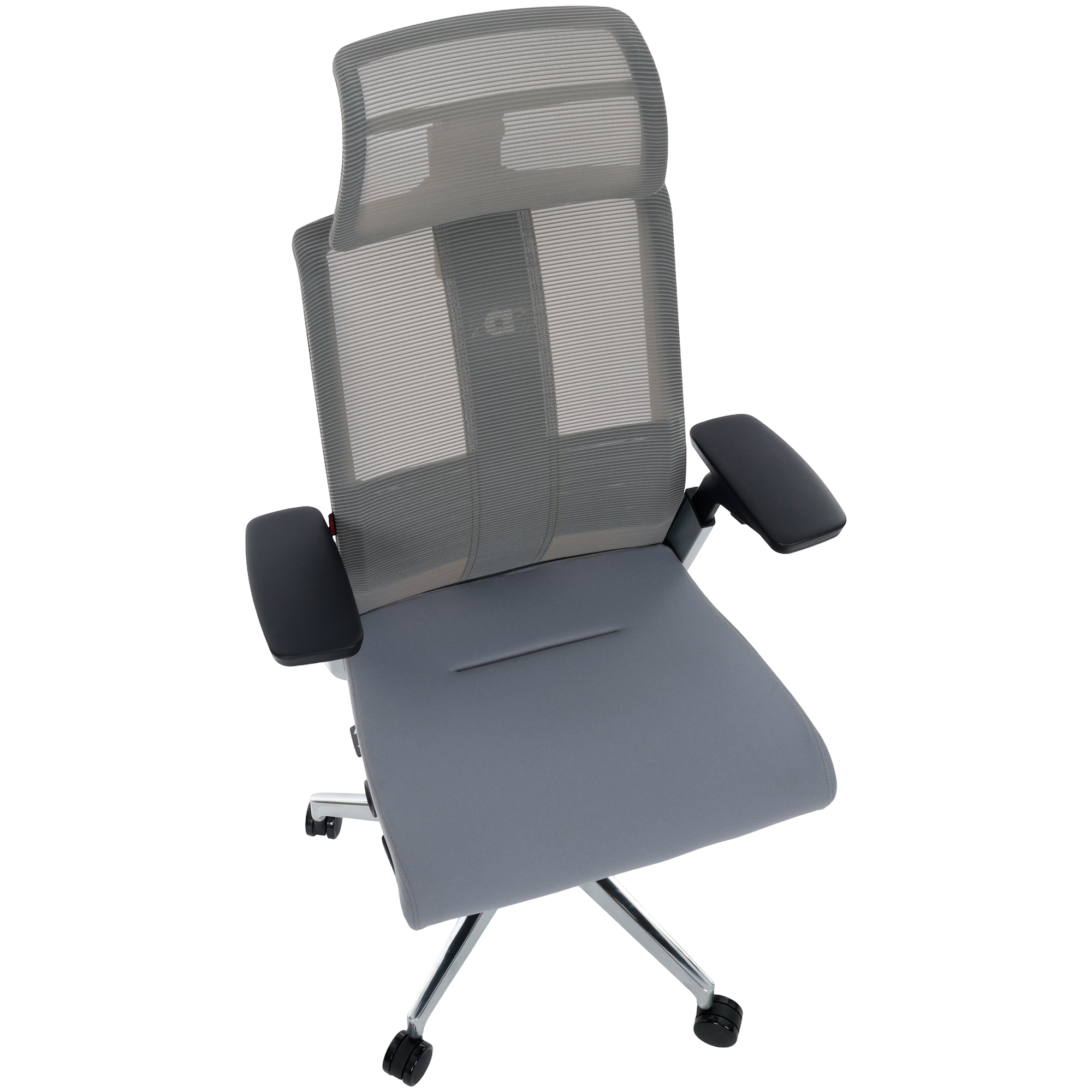 Cadeira de Escritório Comfy Match Plush Tela Mesh Cinza, Suporte SSS, Braço e Apoio de Cabeça 4D