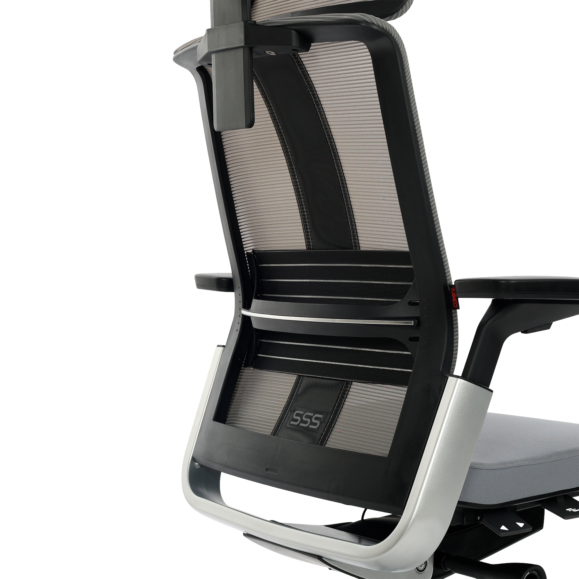 A versão SSS (Super Spine Support) possui um suporte lombar com maior rigidez e estabilidade, ideal para quem precisa de apoio mais firme na lombar para manter a postura correta por muitas horas.