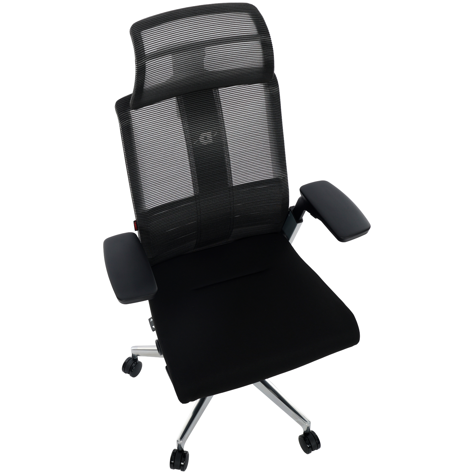 Cadeira de Escritório Comfy Match Plush Tela Mesh Preta, Suporte SSS, Braço e Apoio de Cabeça 4D