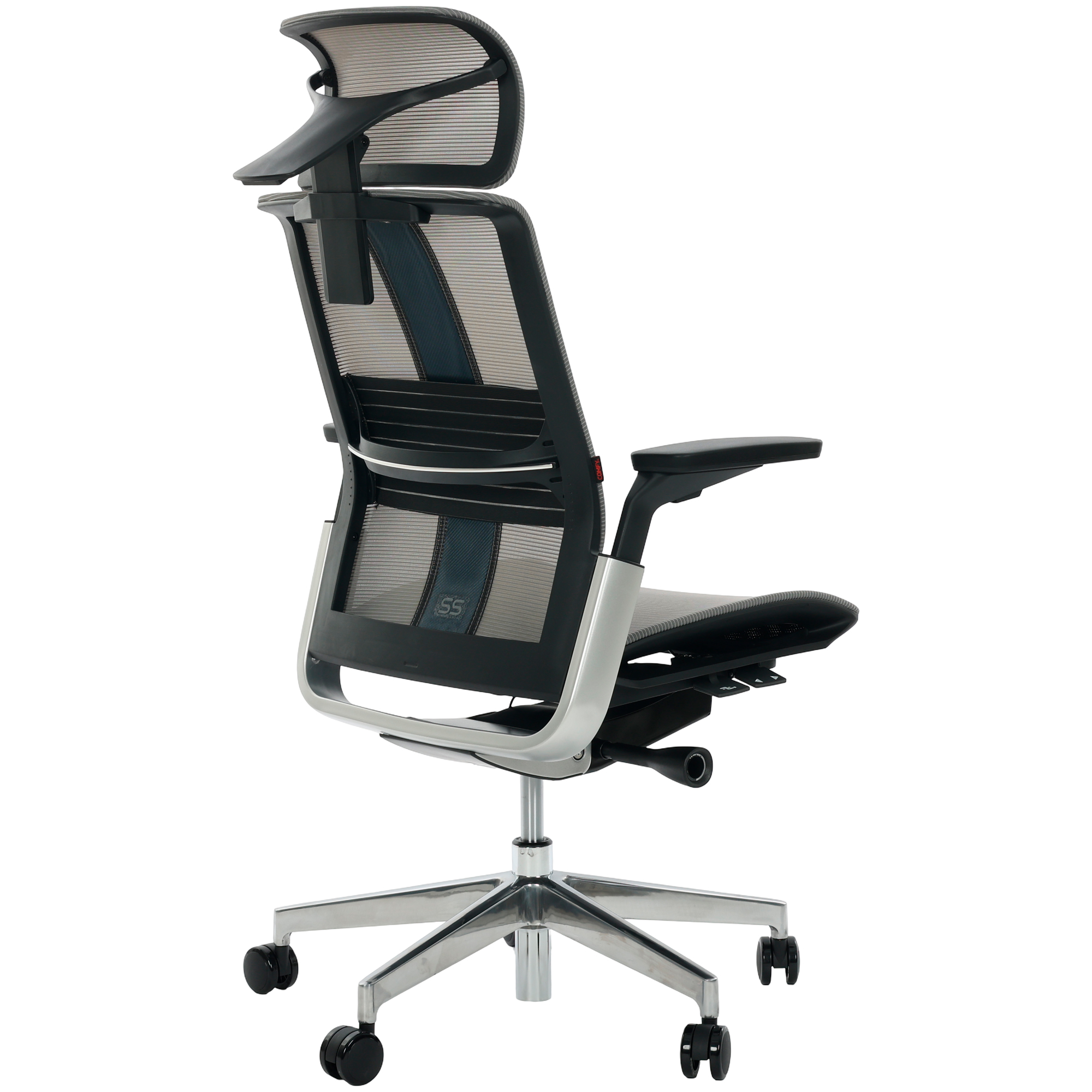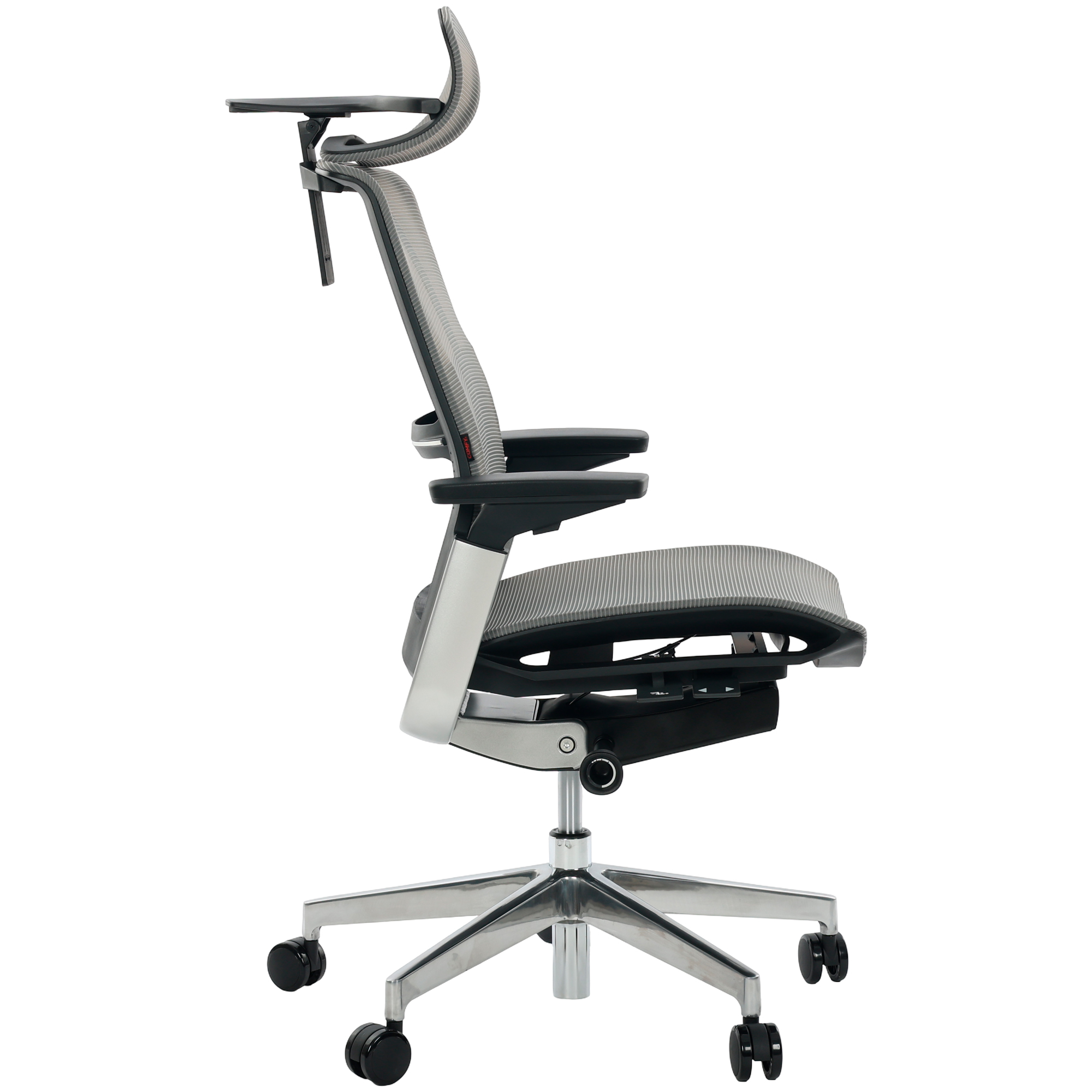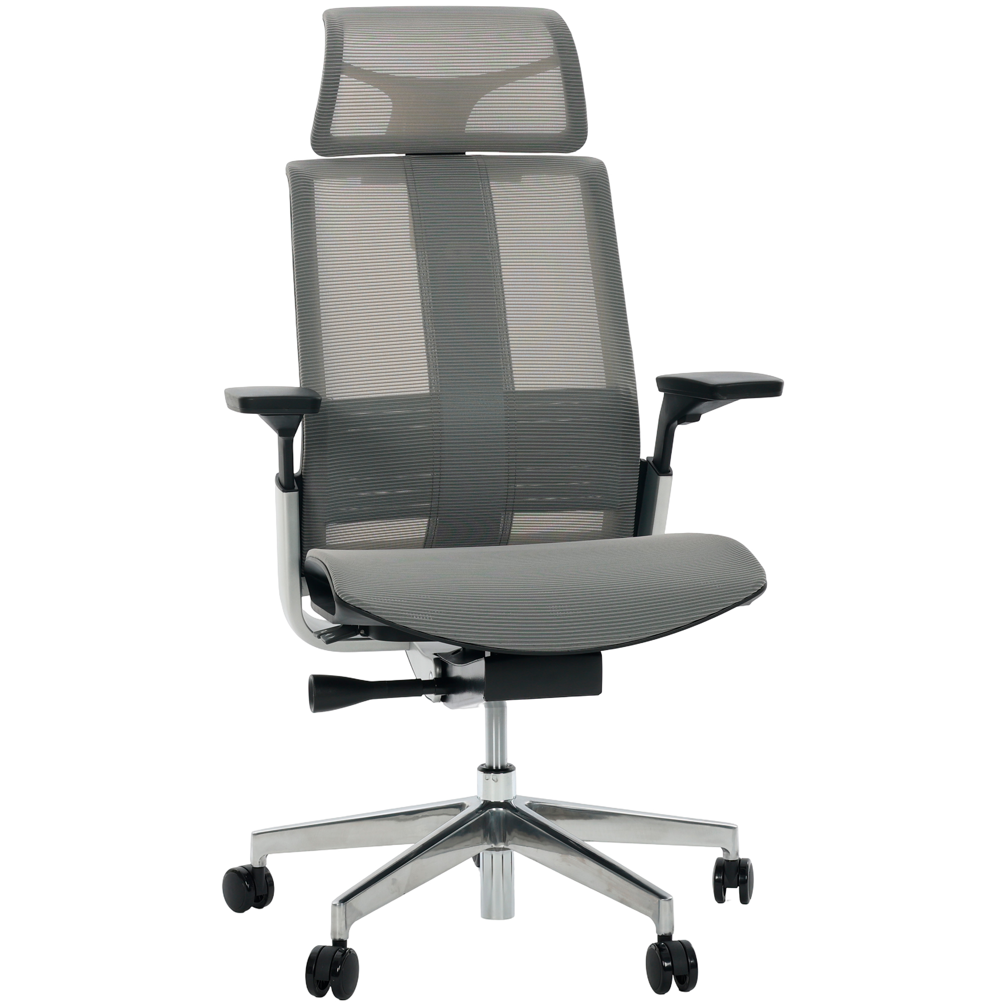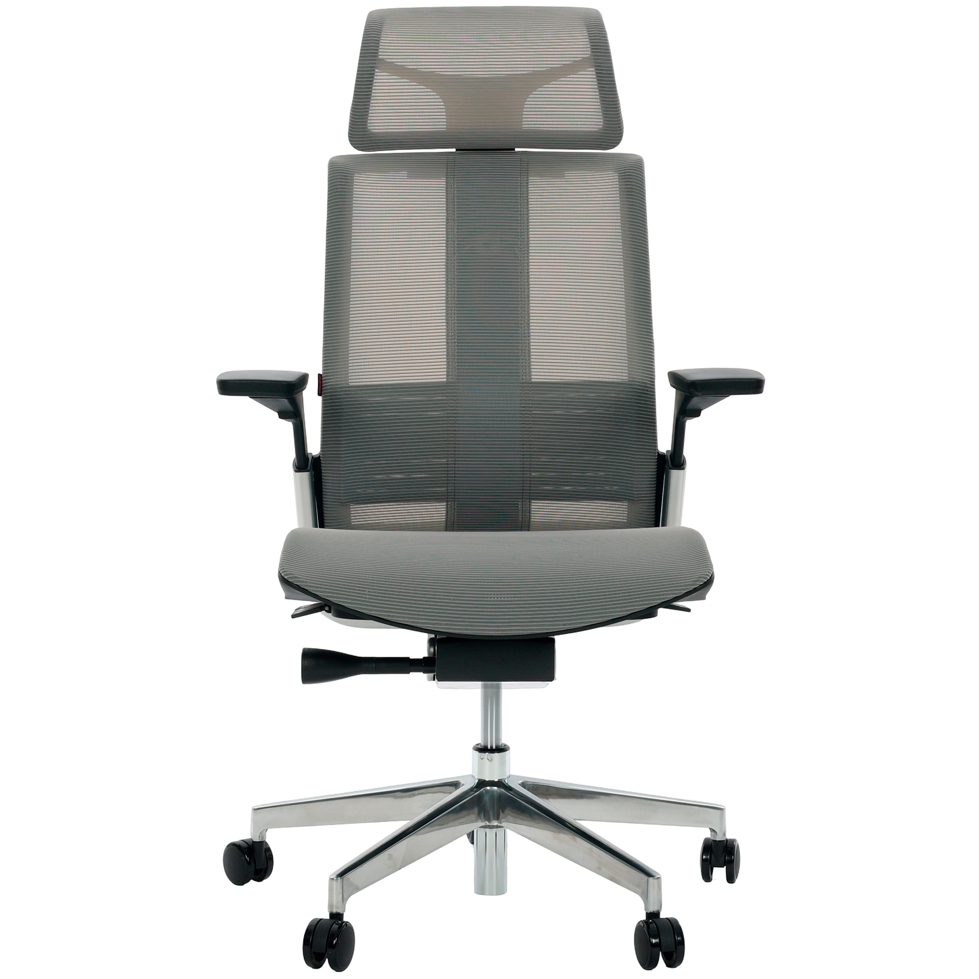 Cadeira de Escritório Comfy Match Pro Tela Mesh Cinza, Suporte SS, Braço e Apoio de Cabeça 4D