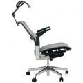 Possui reclinação de até 135°, com trava em múltiplas posições para alternar entre foco e descanso.