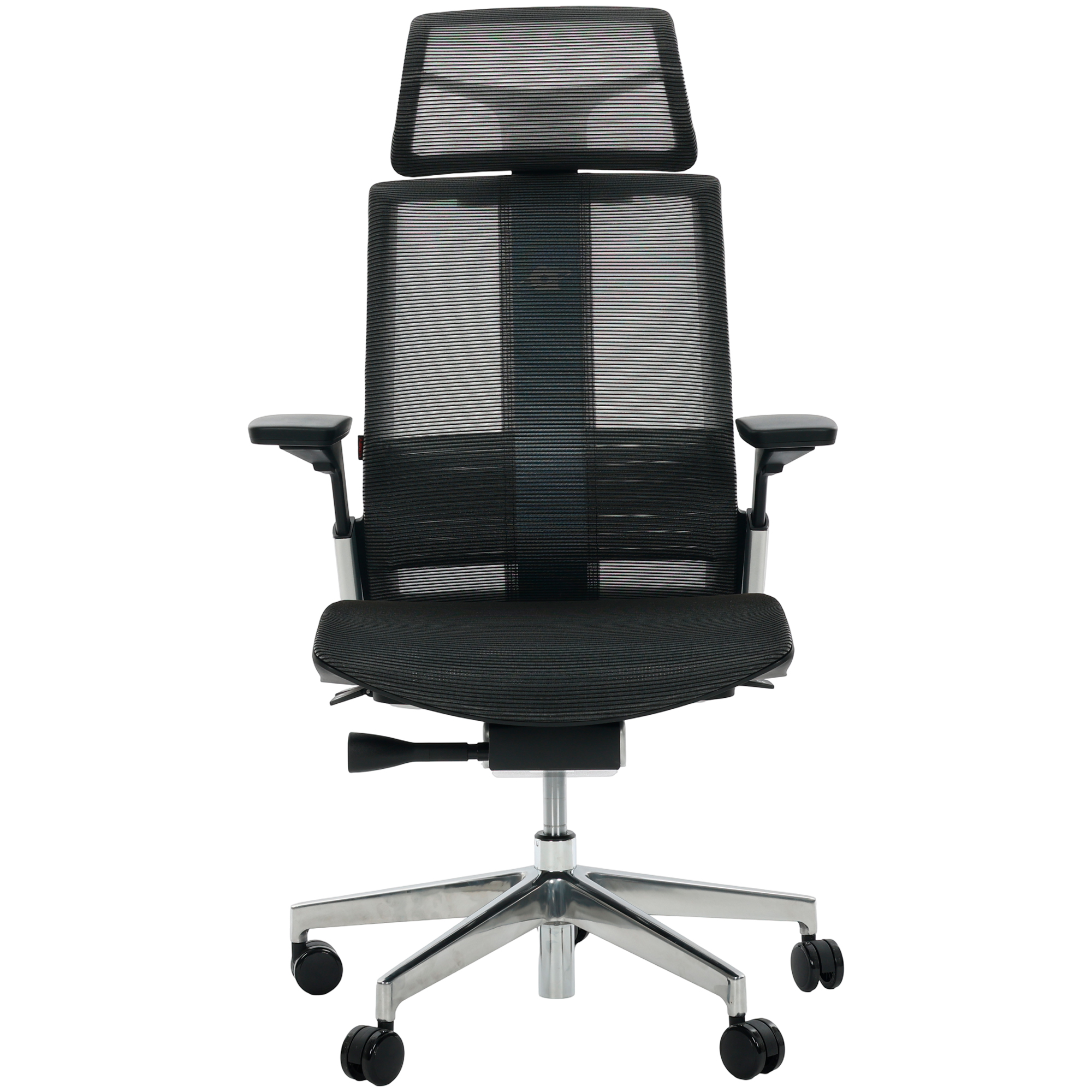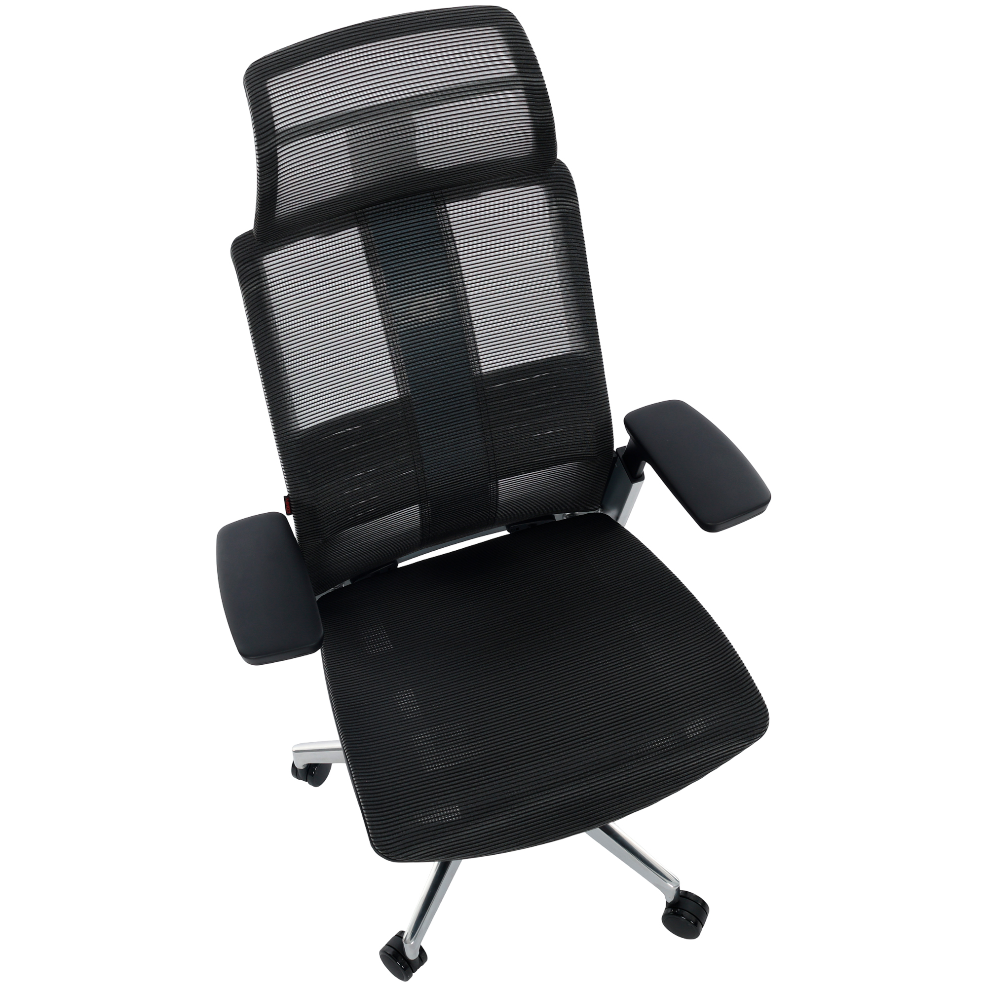 Cadeira de Escritório Comfy Match Pro Tela Mesh Preta, Suporte SS, Braço e Apoio de Cabeça 4D