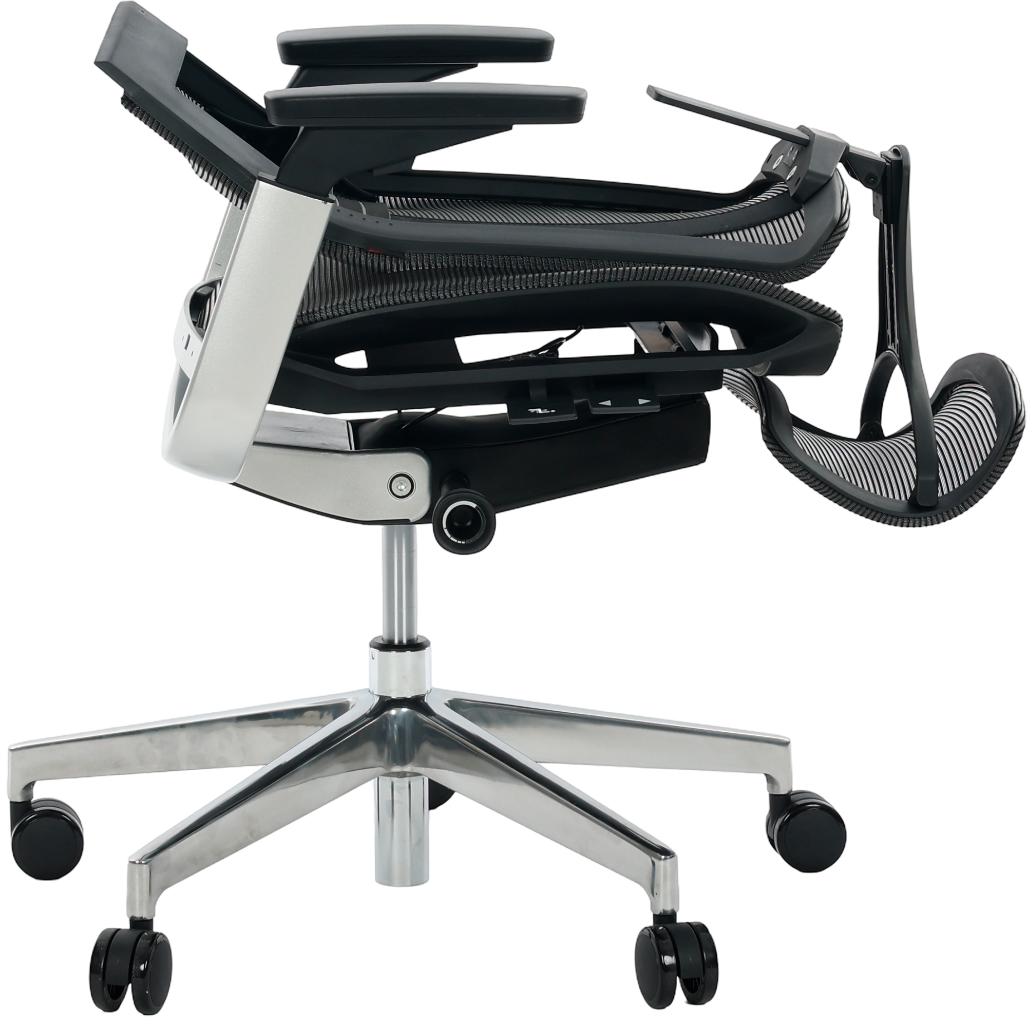 A cadeira conta com suporte lombar com ajuste 1D, permitindo personalizar a altura de apoio na região lombar. Isso reduz o risco de dor ou fadiga na parte inferior das costas e melhora significativamente a postura.