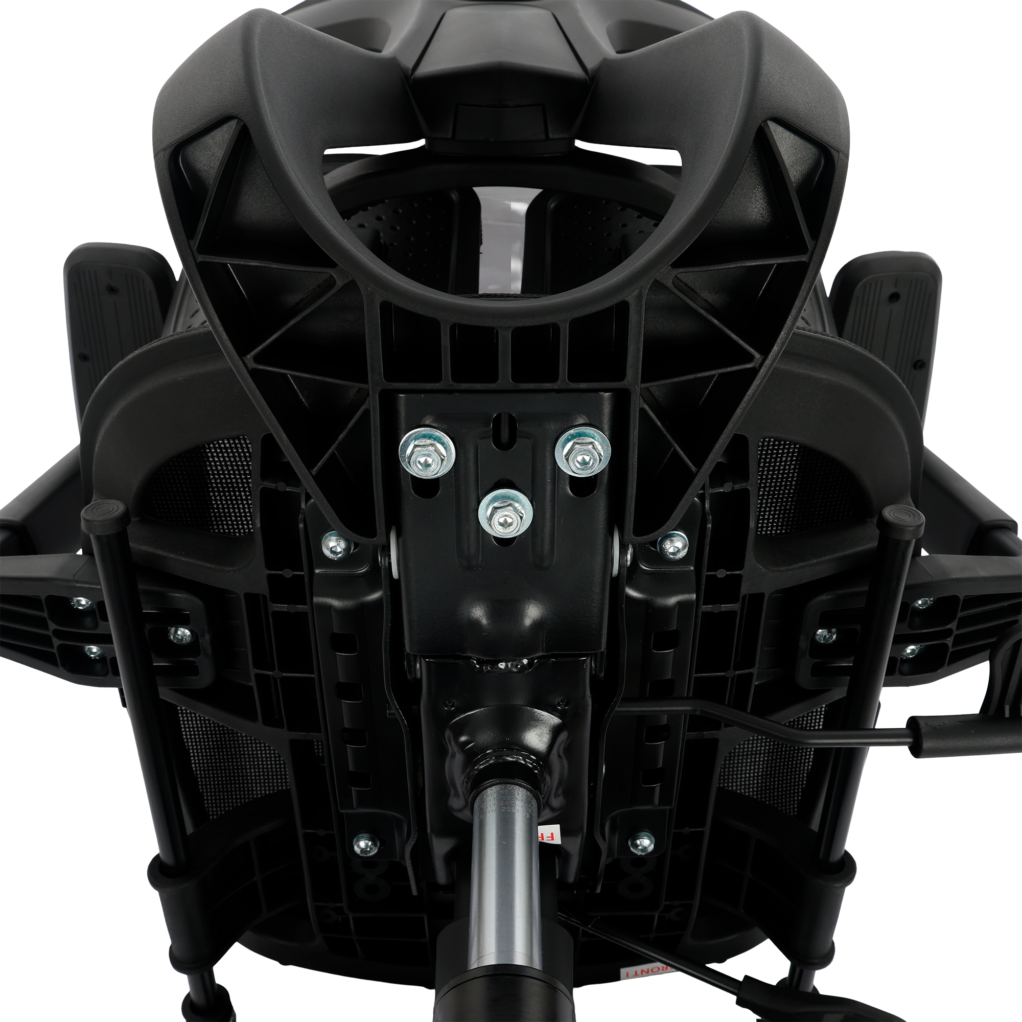 O assento conta com ajuste deslizante de até 5 cm, permitindo adaptar a distância ideal entre o encosto e as pernas. Essa regulagem é essencial para usuários entre 1,60 m e 1,90 m, favorecendo a circulação sanguínea e evitando pressão indevida nas coxas durante o uso prolongado.