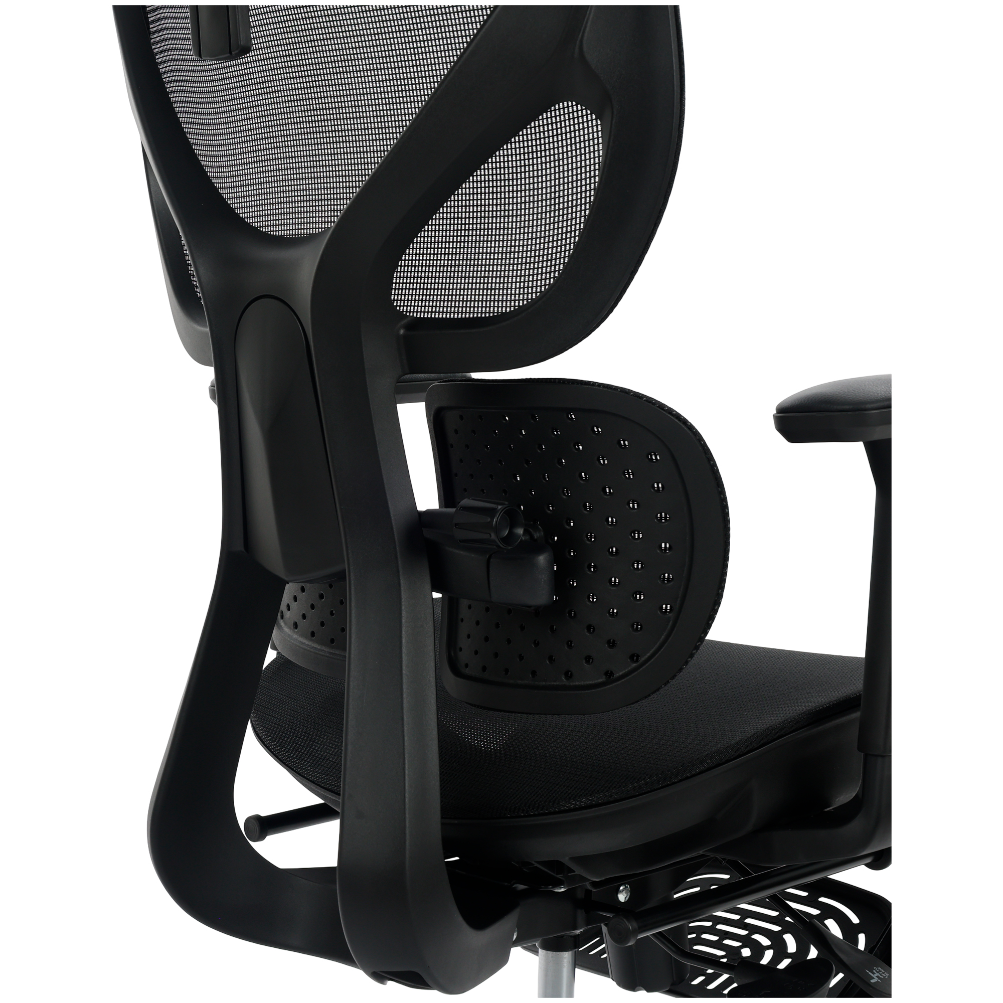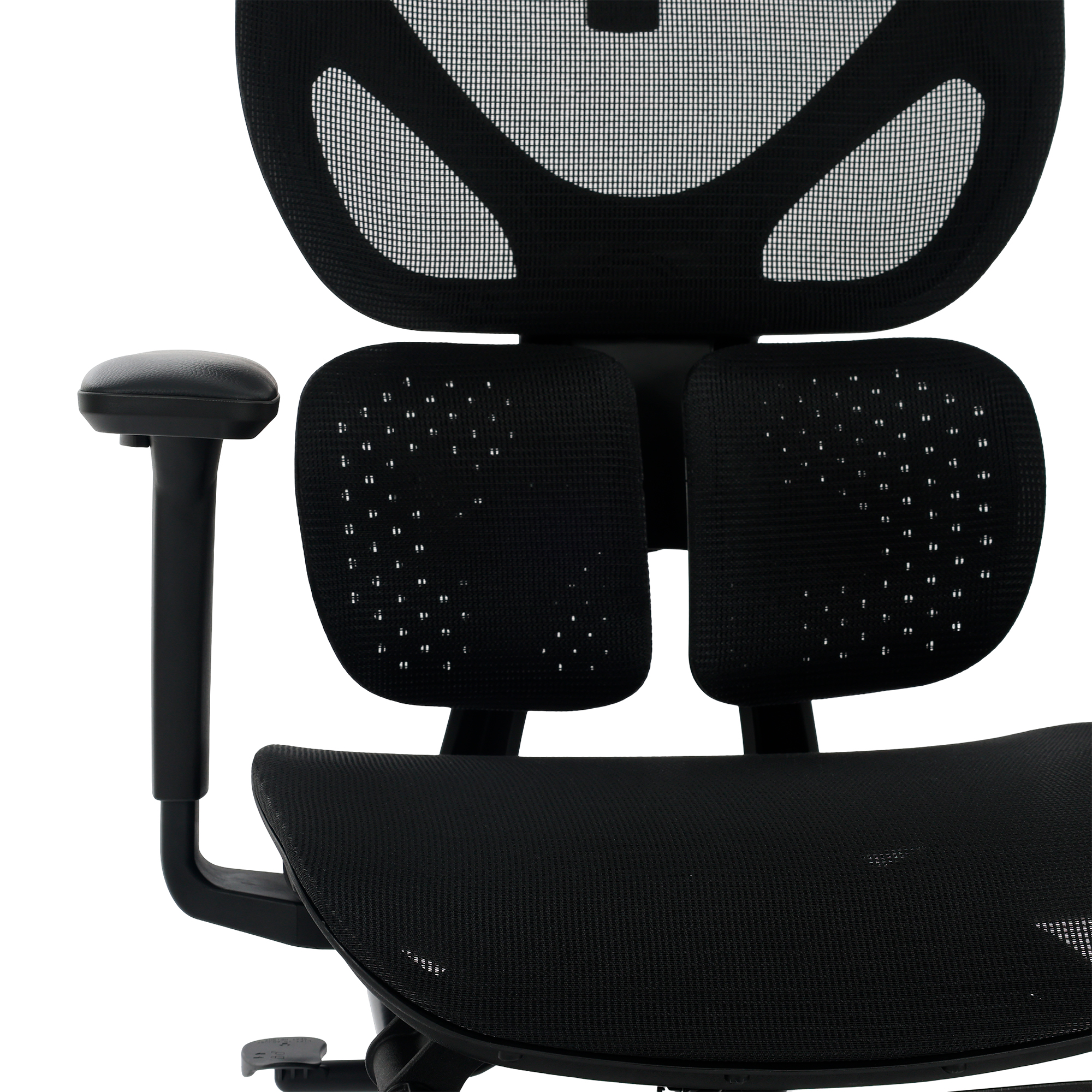 Seu encosto tripartido foi desenvolvido para acompanhar as curvaturas naturais da coluna, oferecendo sustentação diferenciada nas regiões lombar, torácica e cervical. O suporte lombar com ajuste de profundidade (1D) adapta-se perfeitamente ao usuário, promovendo uma postura saudável e reduzindo tensões musculares ao longo do dia.