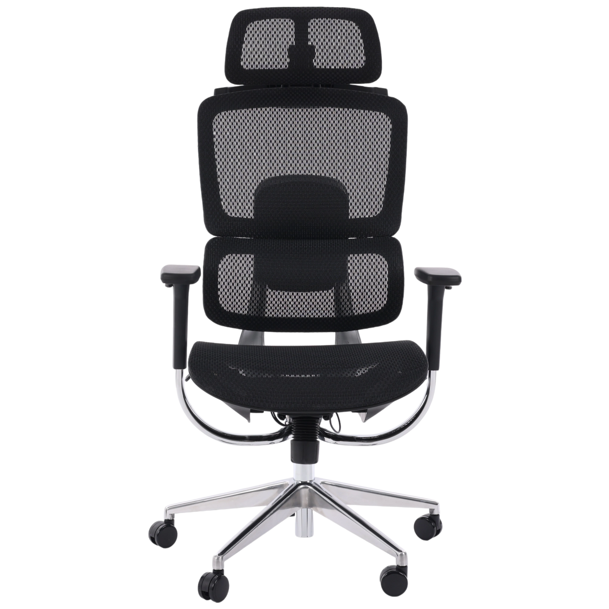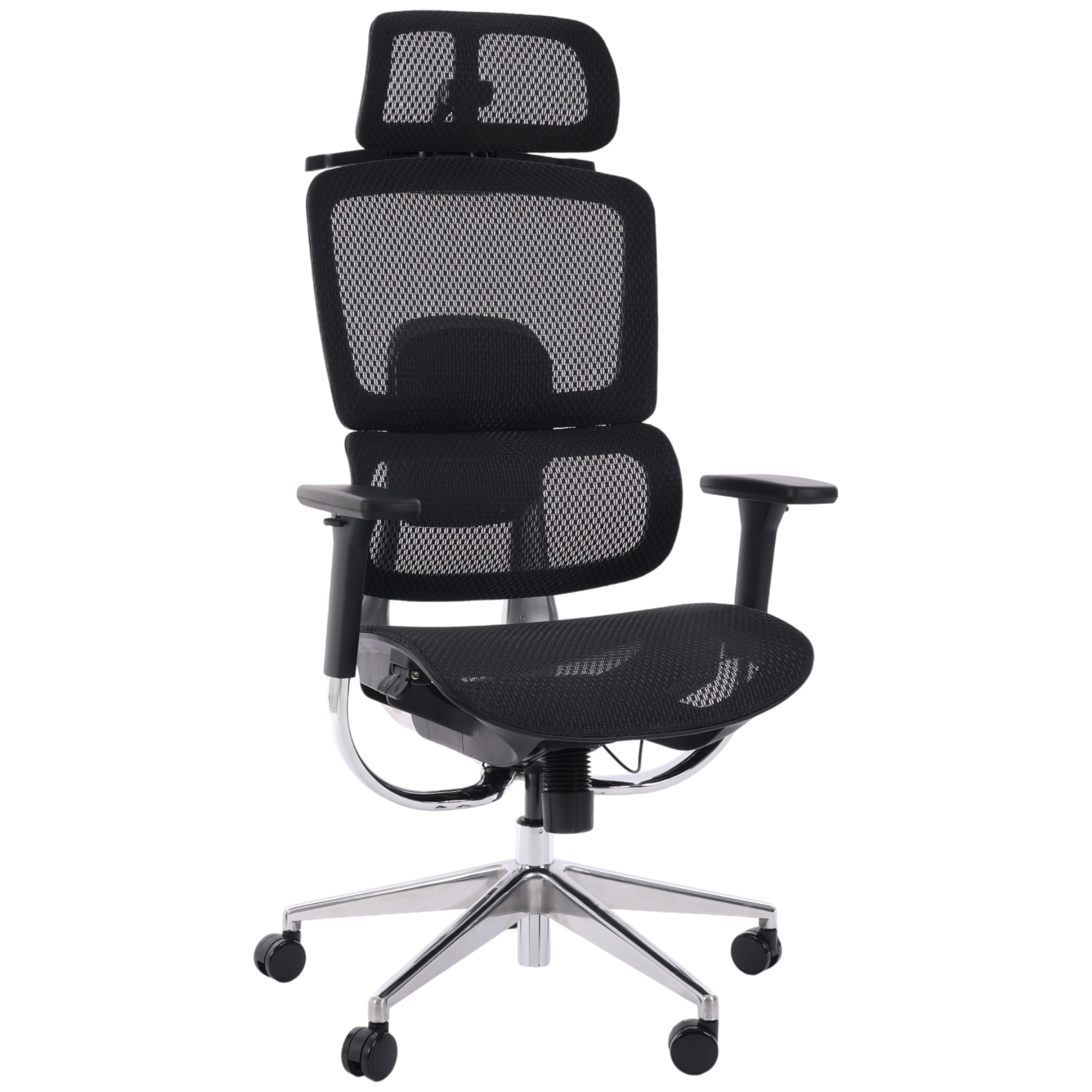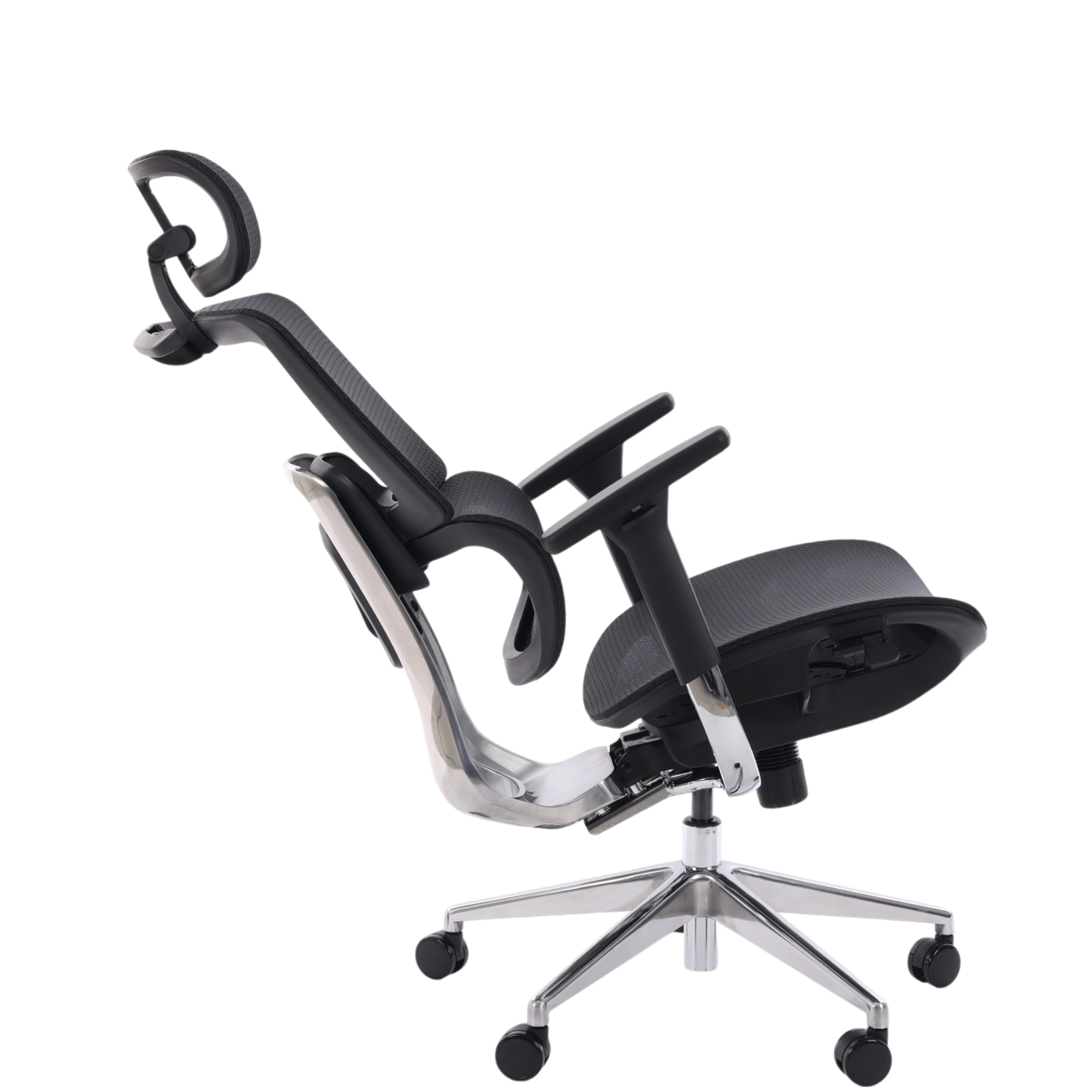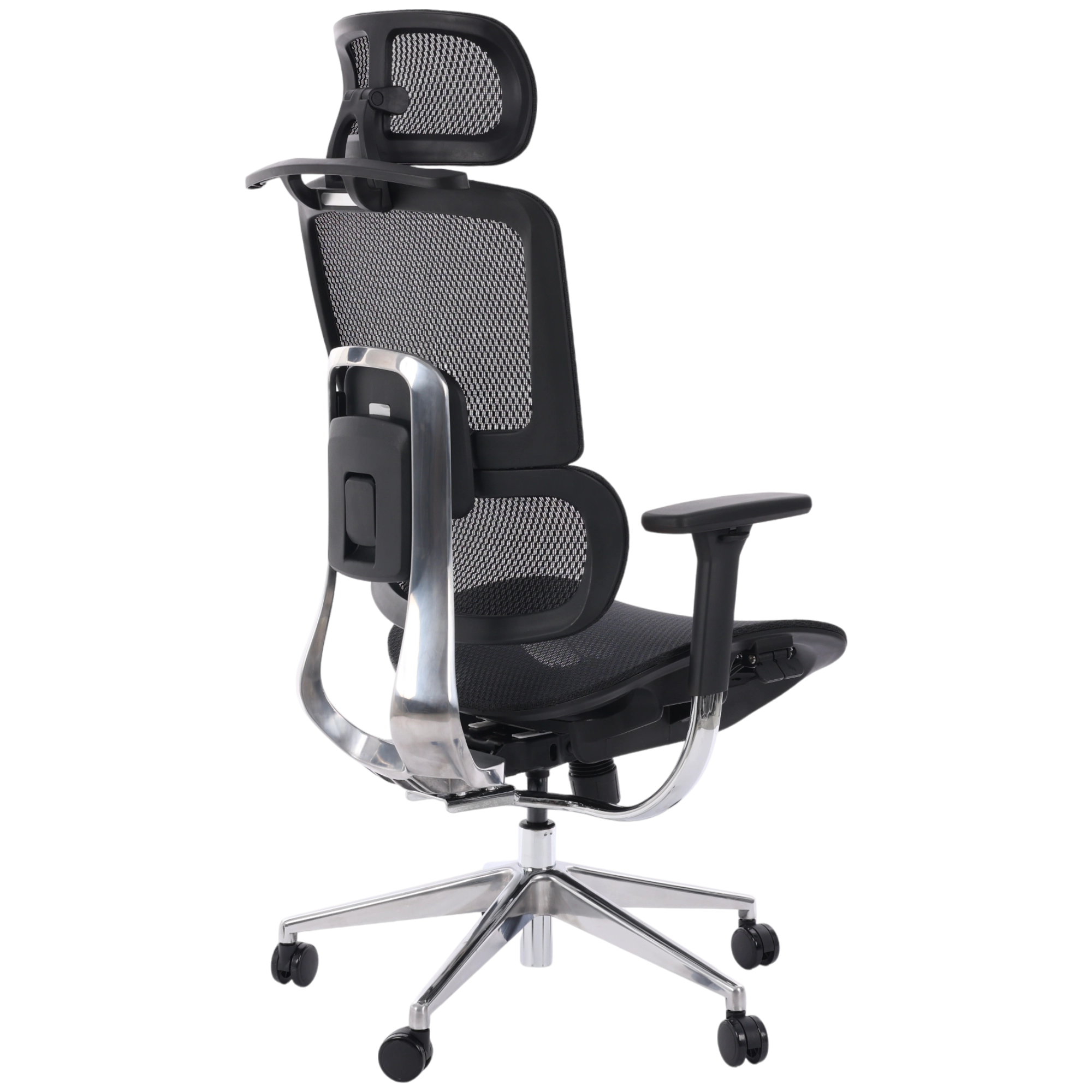 A estrutura em tela mesh de alta qualidade contribui para a durabilidade da cadeira, mantendo-a firme e resistente ao uso prolongado. A tecnologia de fabricação da tela garante que ela não se deforme com o tempo, preservando tanto a estética quanto a funcionalidade. O design sofisticado, com a estrutura preta combinada ao alumínio, agrega modernidade e estilo a qualquer ambiente de escritório.