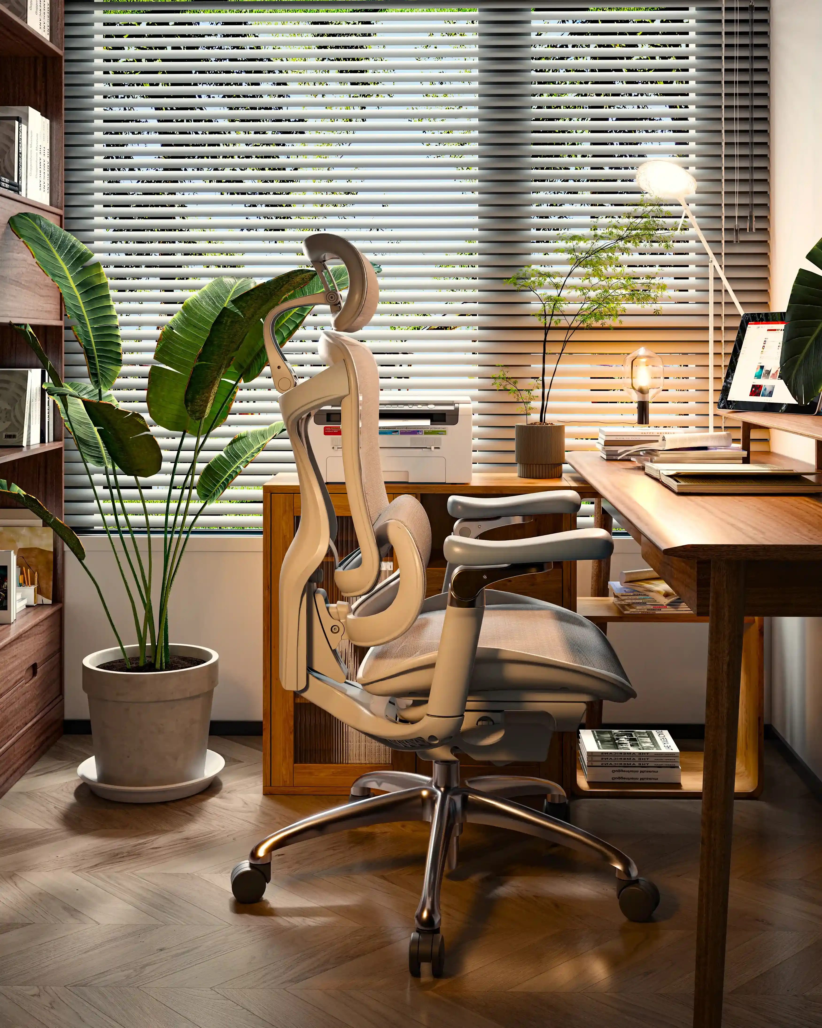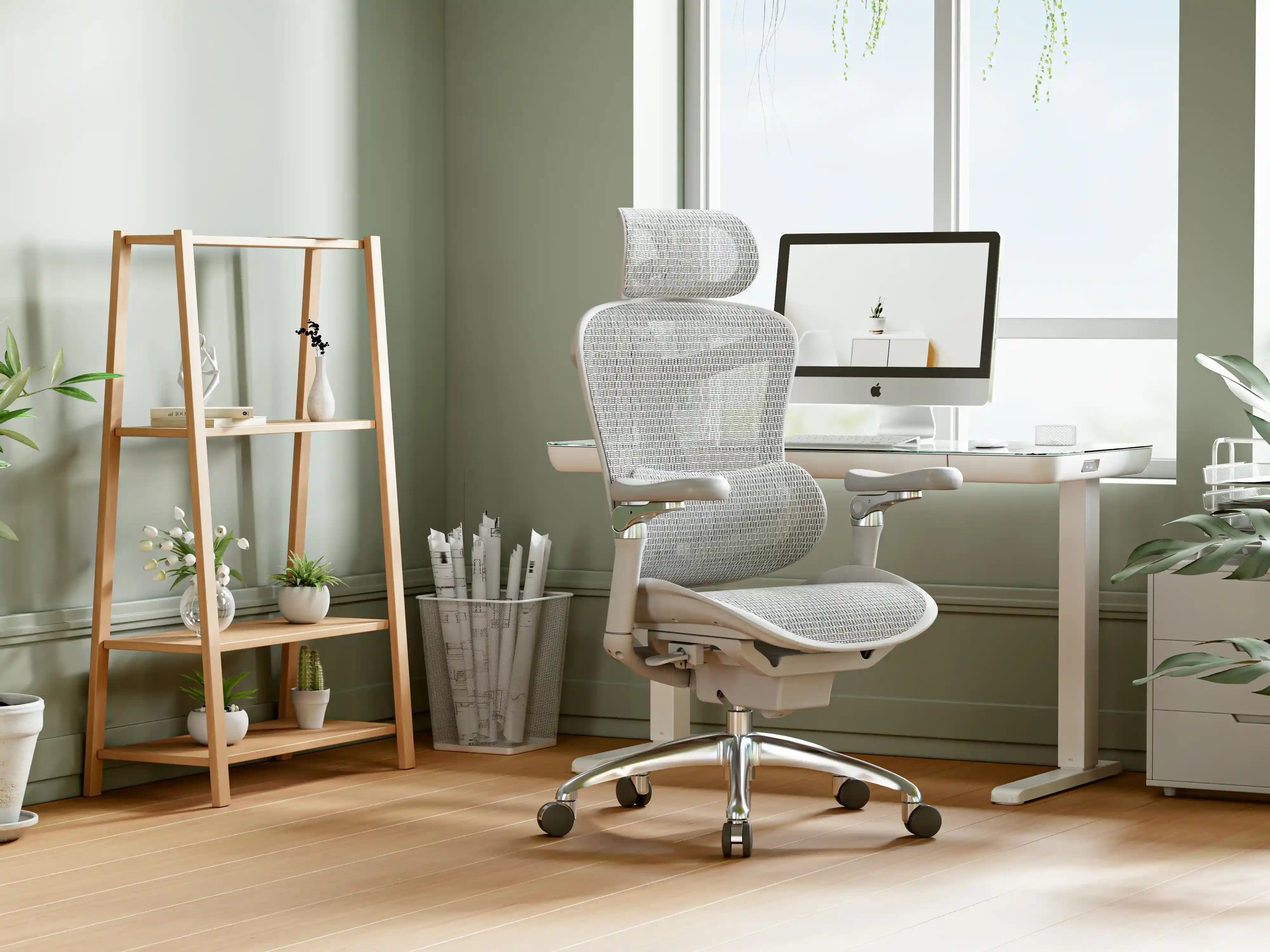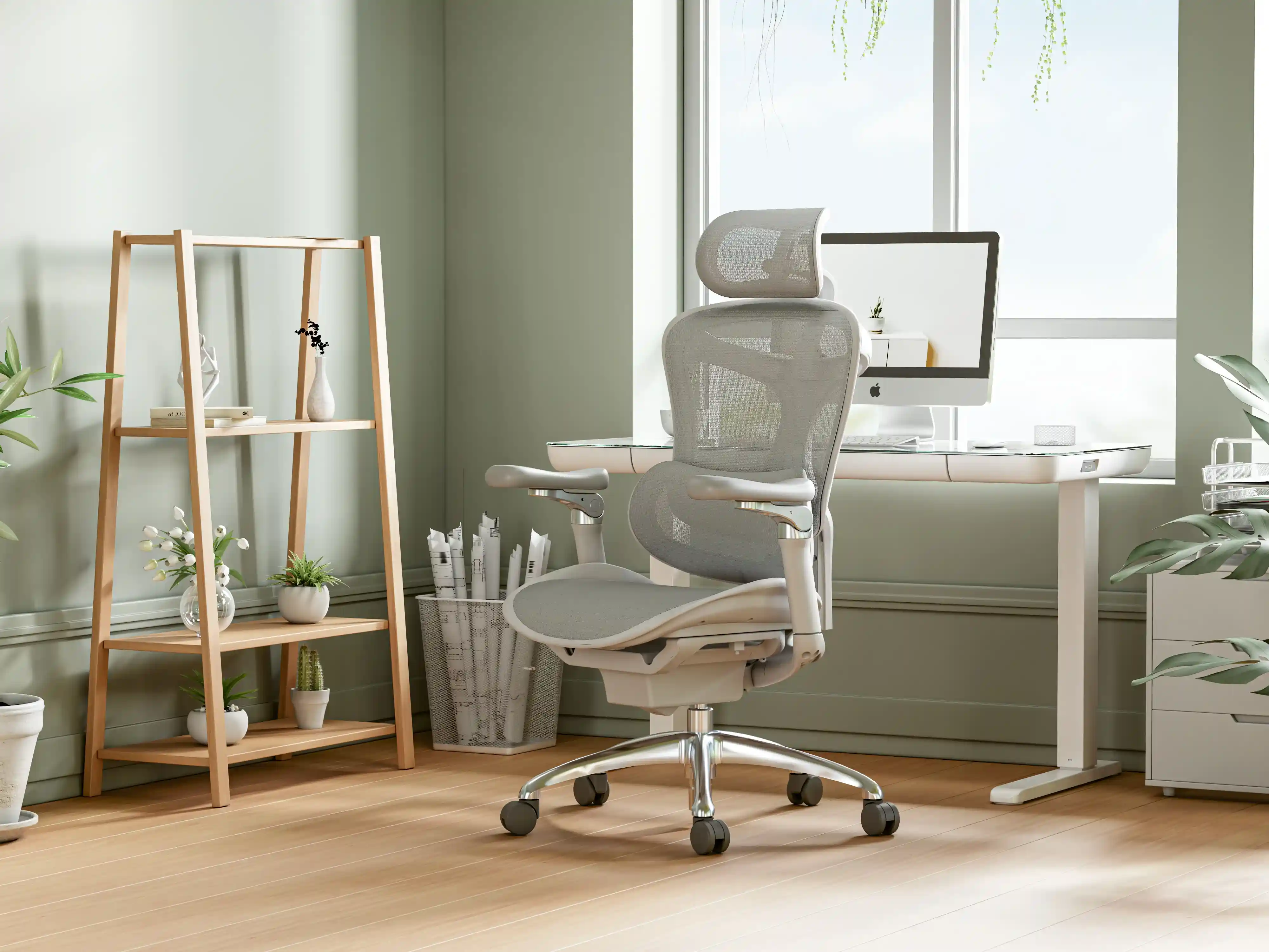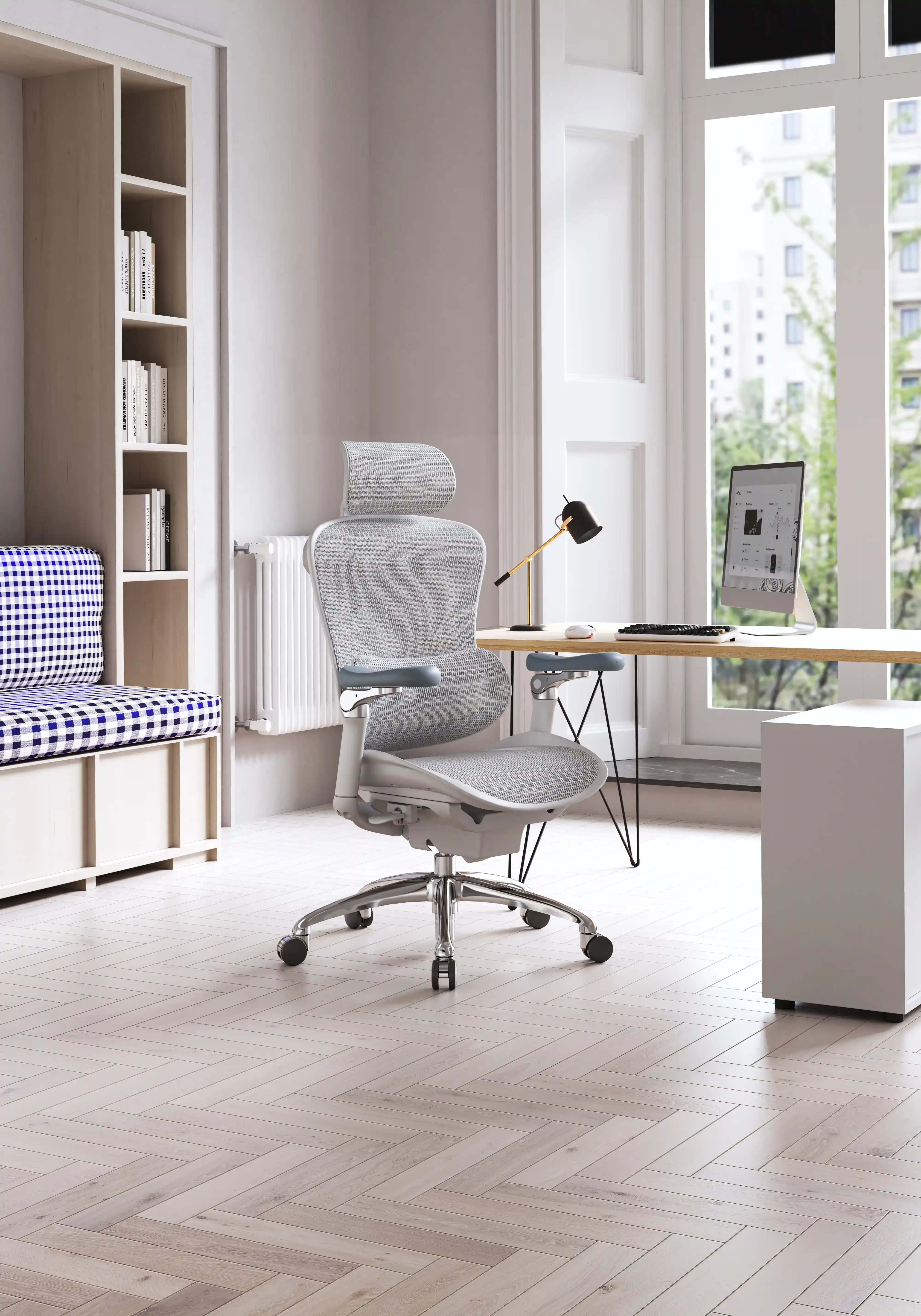 Cadeira de Escritório Comfy Sihoo Duve Tela Mesh Cinza Base Alumínio, Múltiplos Ajustes Braço 6D