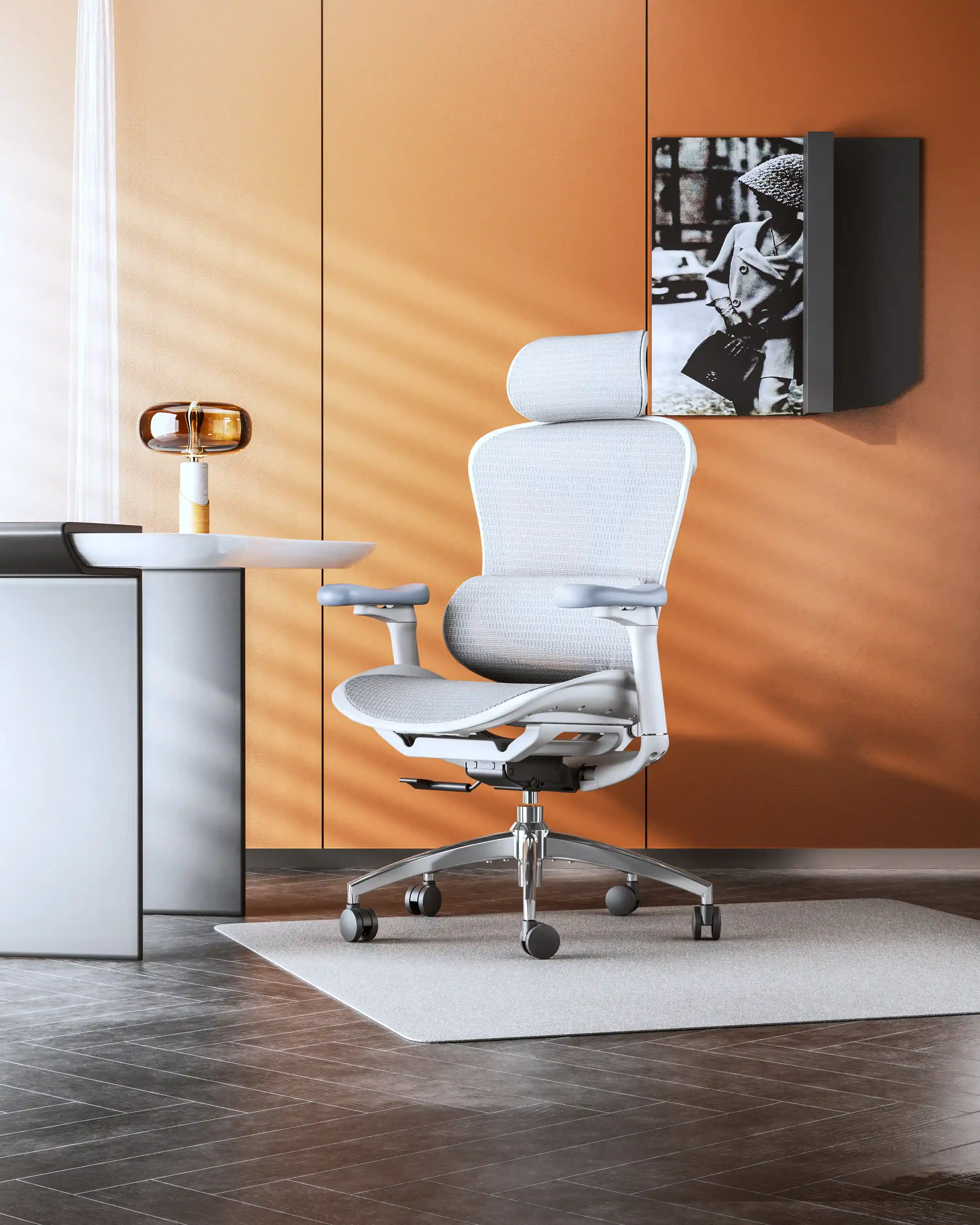 A Cadeira de Escritório Comfy Sihoo Duve Tela Mesh Cinza combina elegância e funcionalidade, sendo ideal para ambientes corporativos e home offices que valorizam conforto e estilo. Seu revestimento em tela mesh cinza proporciona ventilação adequada, enquanto a base em alumínio confere durabilidade e resistência. As rodas de nylon de 60 mm são anti-risco, garantindo mobilidade suave e protegendo o piso contra danos.