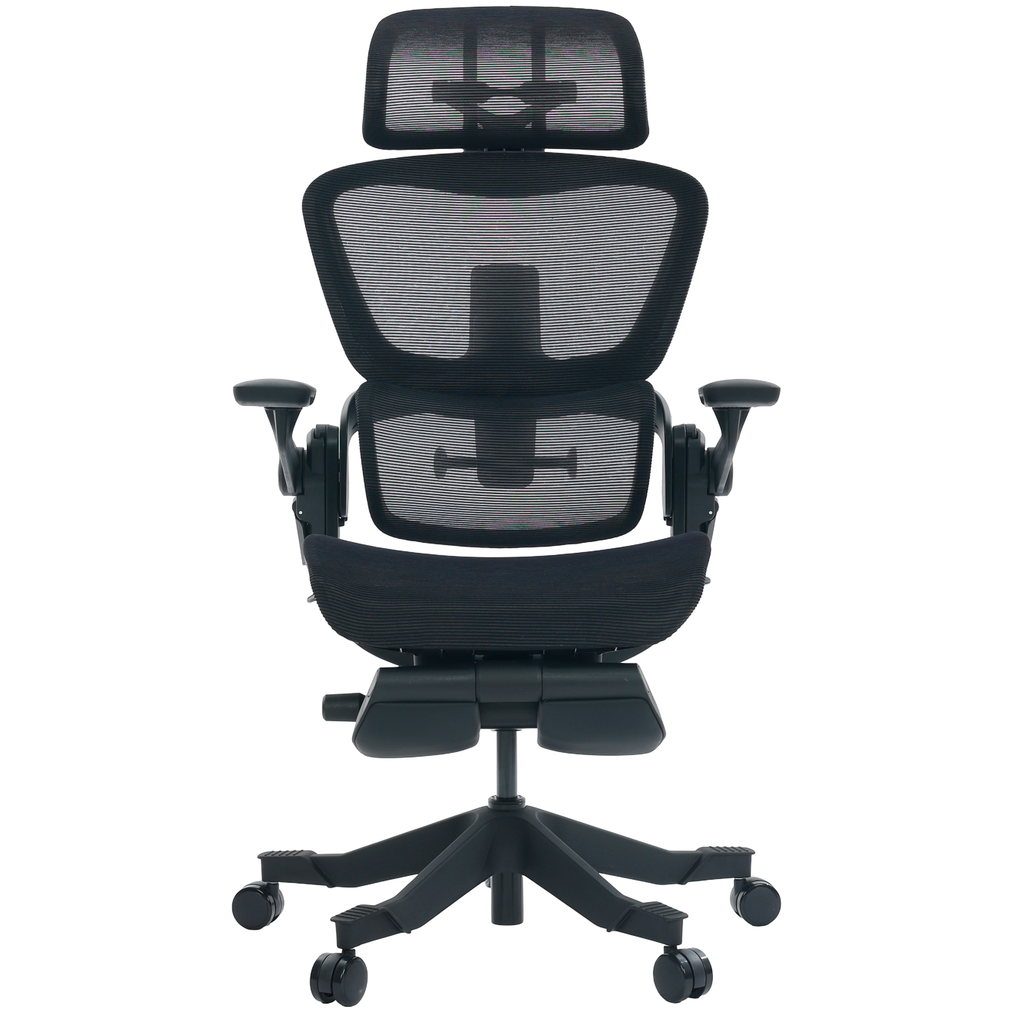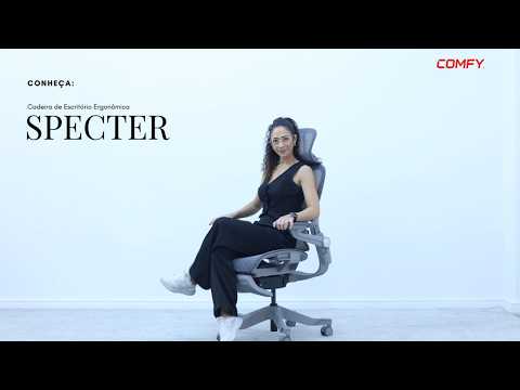 Cadeira de Escritório Comfy Specter Preta Tela Mesh Cinza, Multiajustável, Braço e Apoio de Cabeça 3D