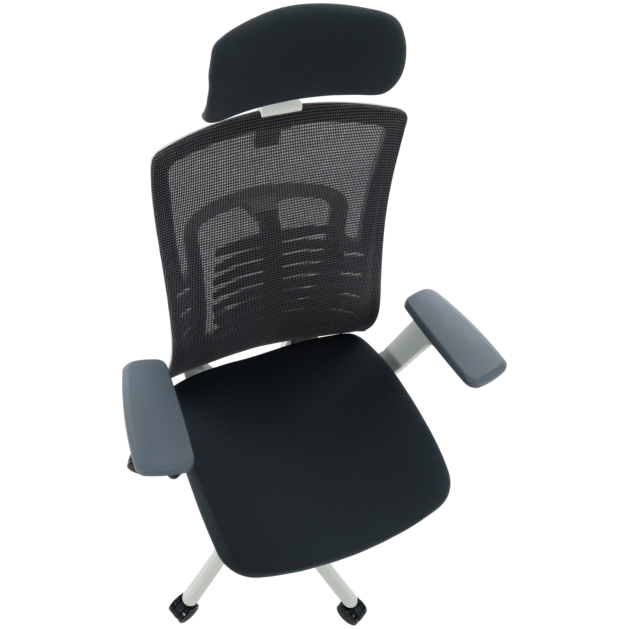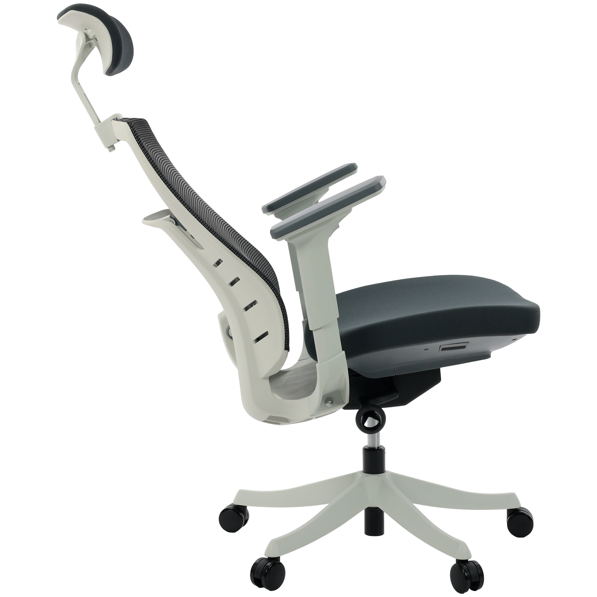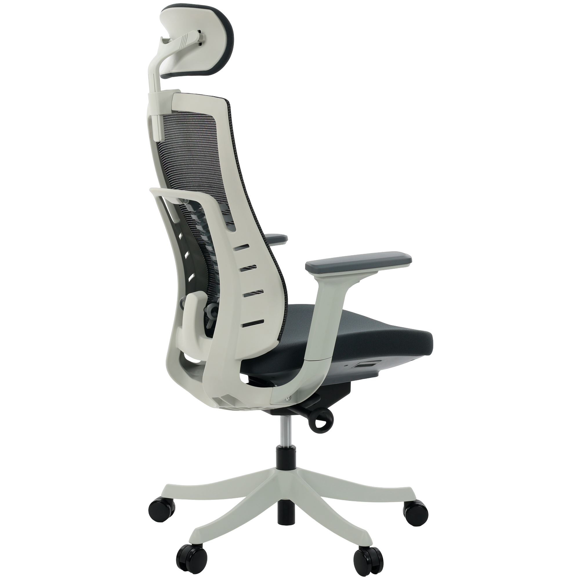 Apoio Lombar em Tela Mesh CinzaBraços 3D Soft ErgoAssento Deslizante em Tecido CinzaApoio de Cabeça com Ajuste 2D