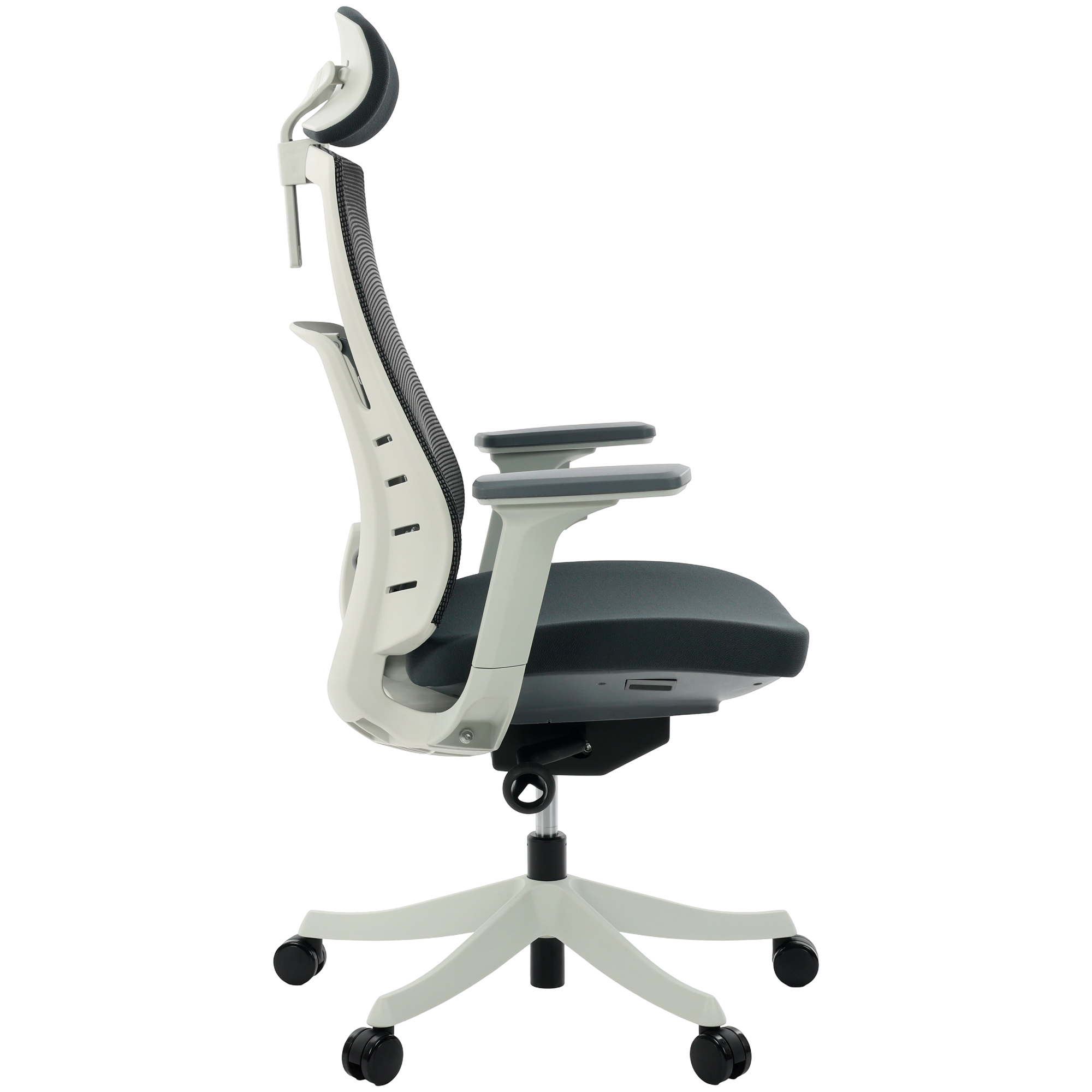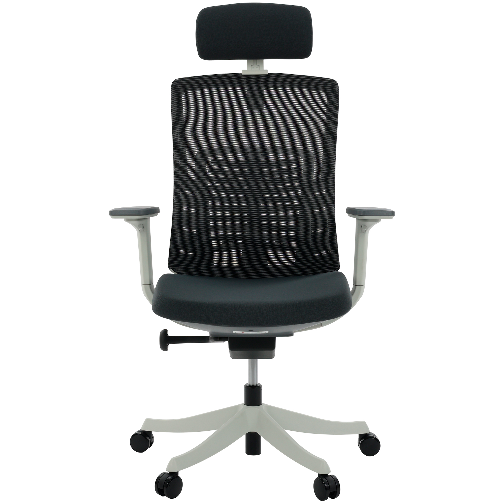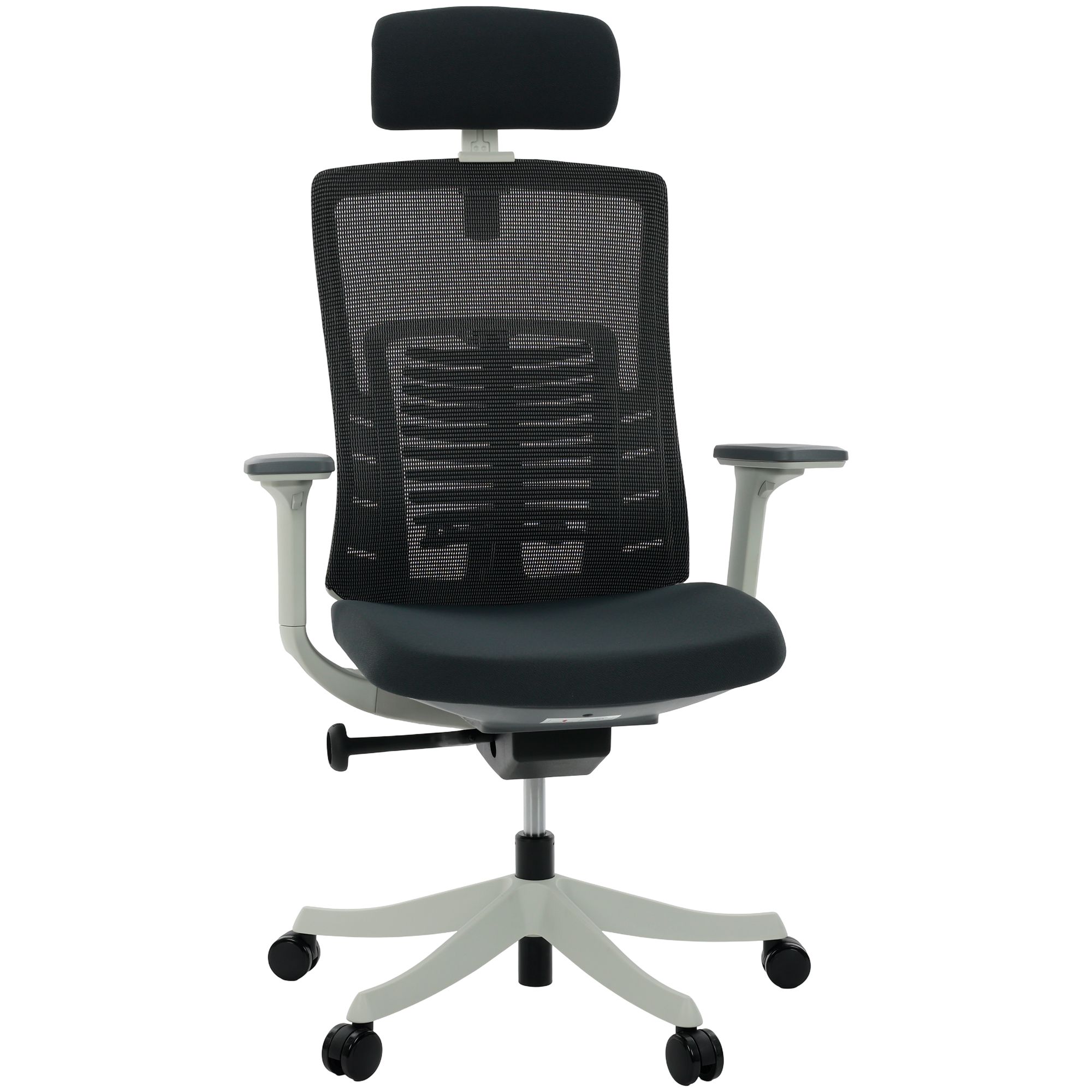 Apoio Lombar em Tela Mesh CinzaBraços 3D Soft ErgoAssento Deslizante em Tecido CinzaApoio de Cabeça com Ajuste 2D