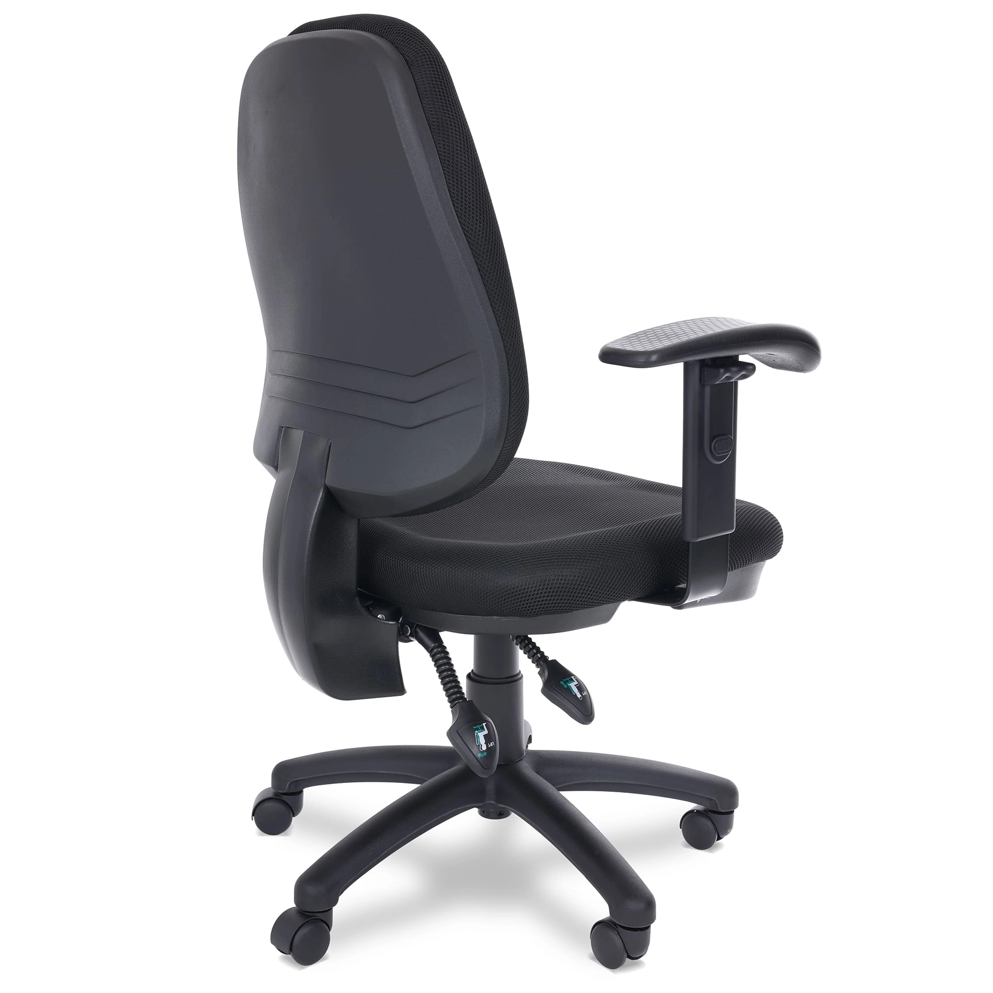 Cadeira de Escritório Comfy Start Estofada Preta, Giratória, Relax Avançado e Encosto Ajustável