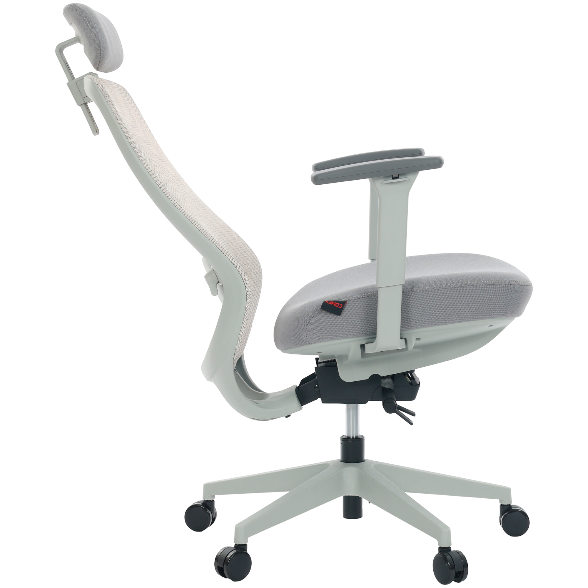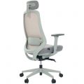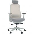 Cadeira de Escritório Comfy Tauris Cinza Tecido Creme, Braço 3D e Assento Deslizante