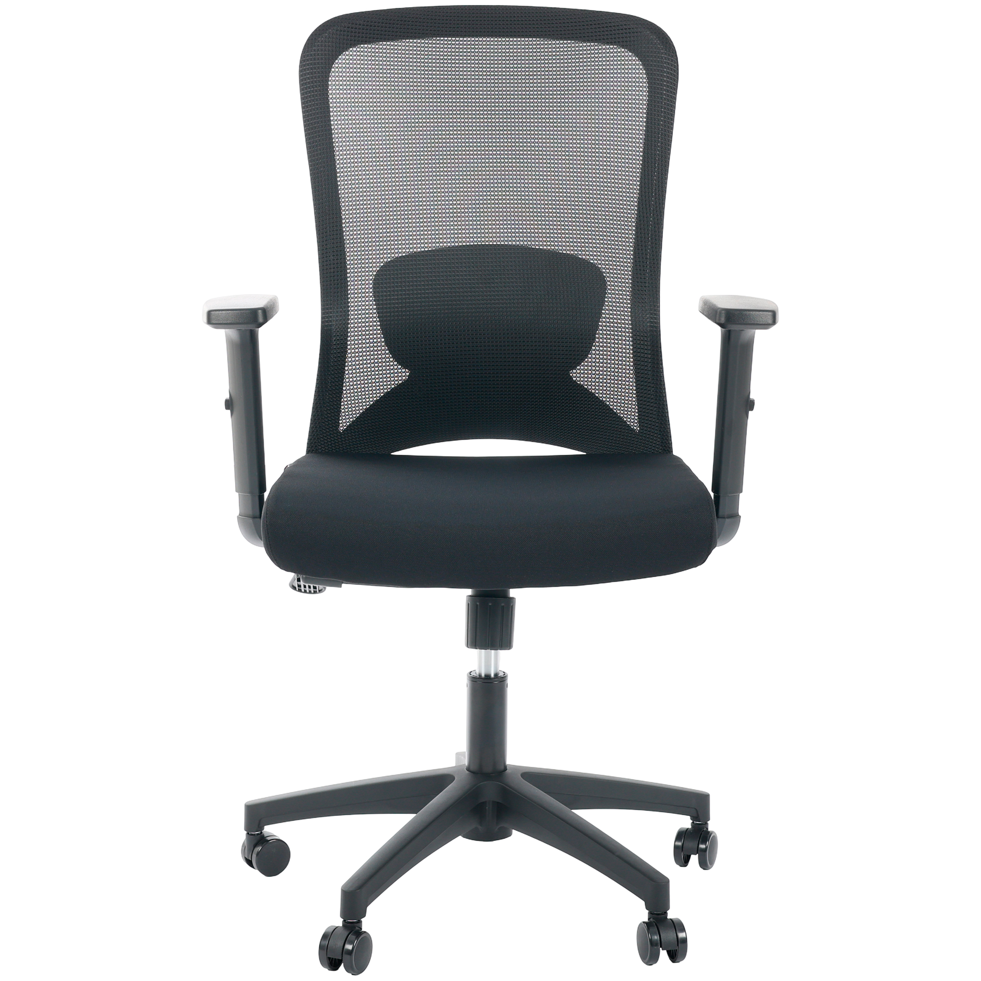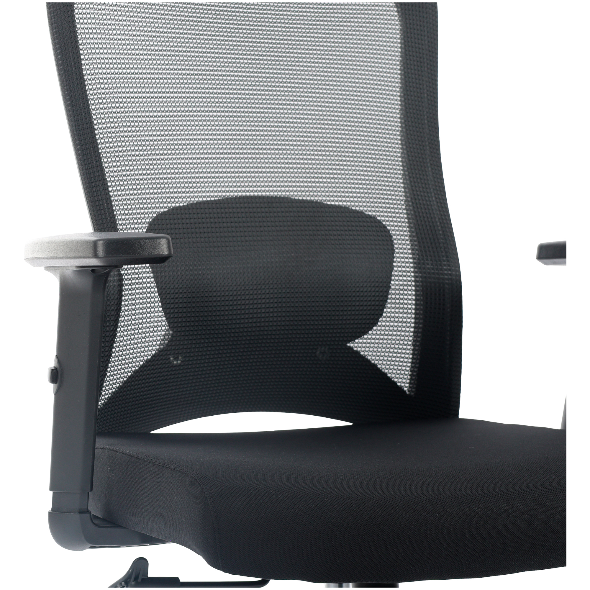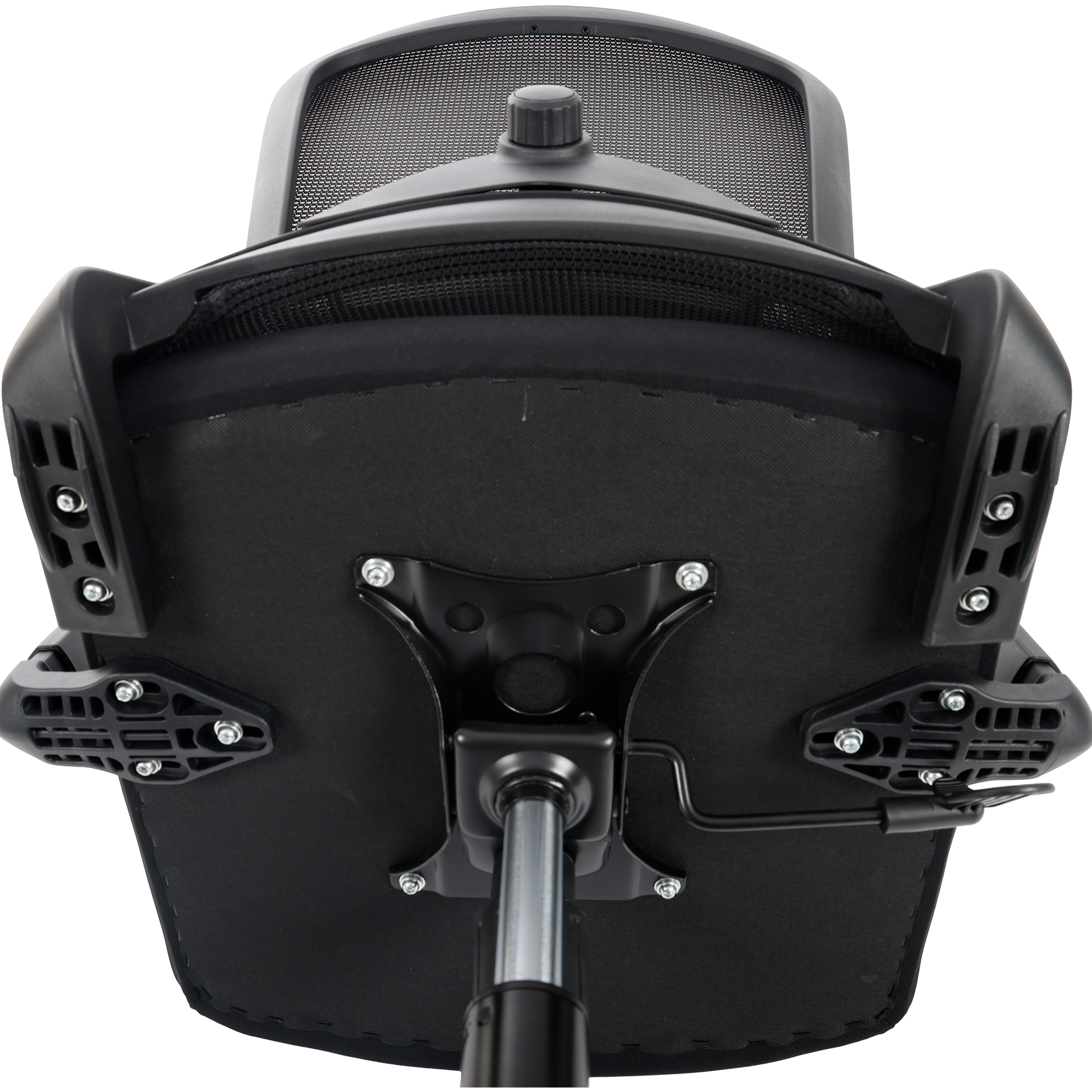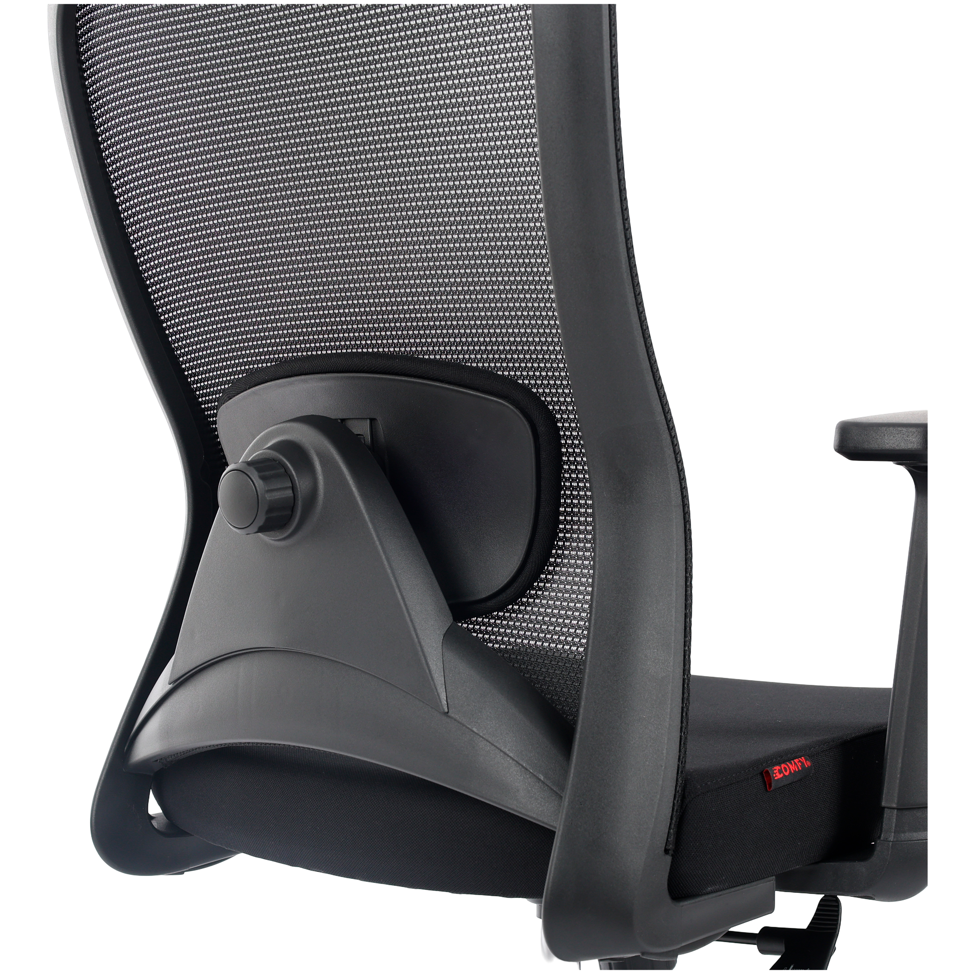 O encosto em tela mesh preta garante circulação de ar constante, evitando o acúmulo de calor e proporcionando frescor mesmo em jornadas longas. Sua estética uniforme em preto agrega um visual clean e atemporal.