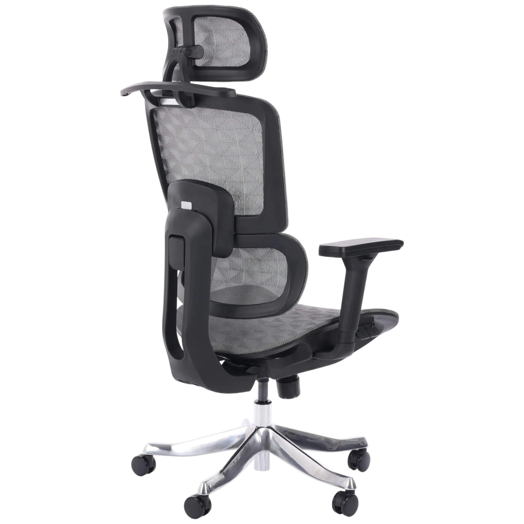 Cadeira de Escritório Comfy Vertex Tela Mesh Cinza, Braço 4D, Assento e Encosto Ajustáveis