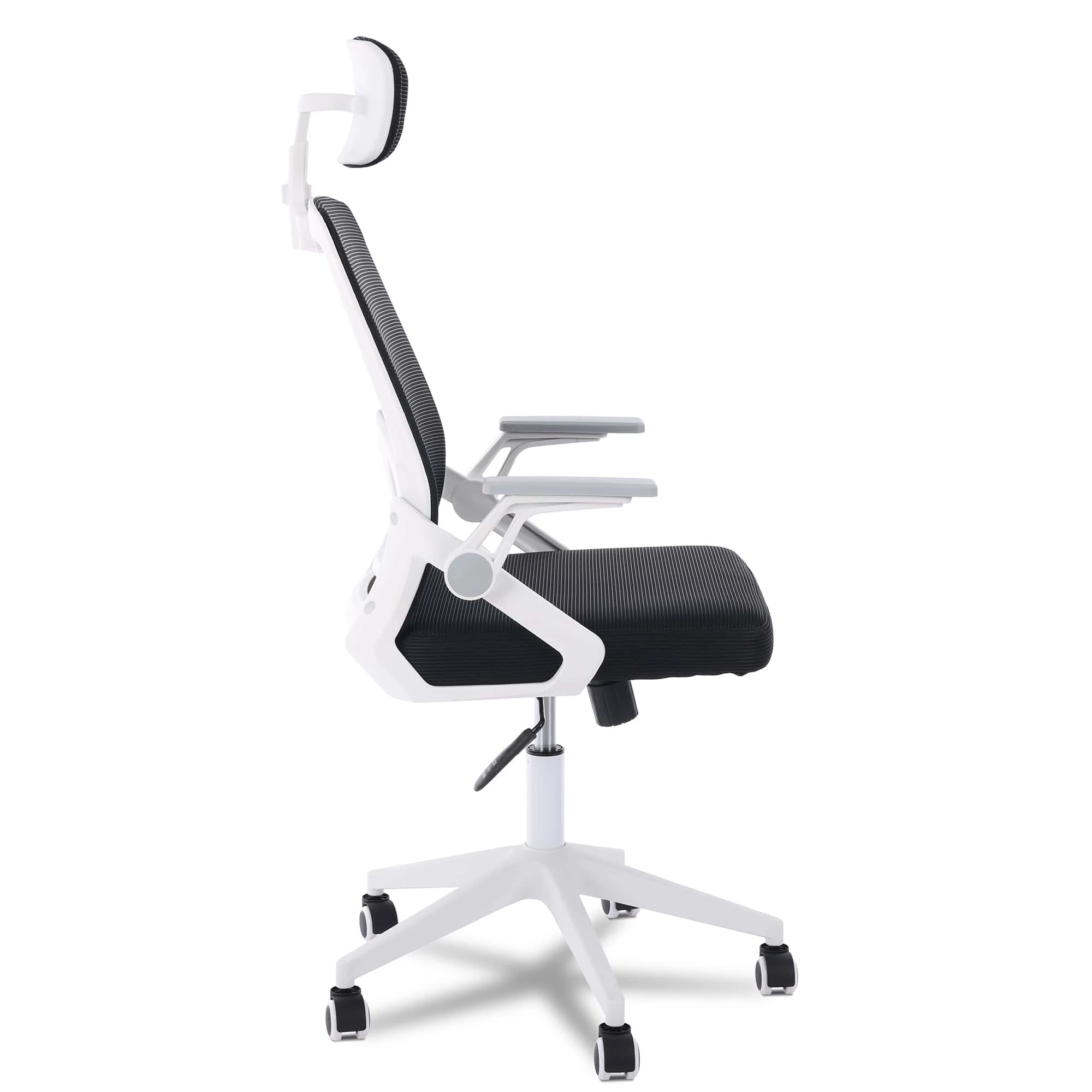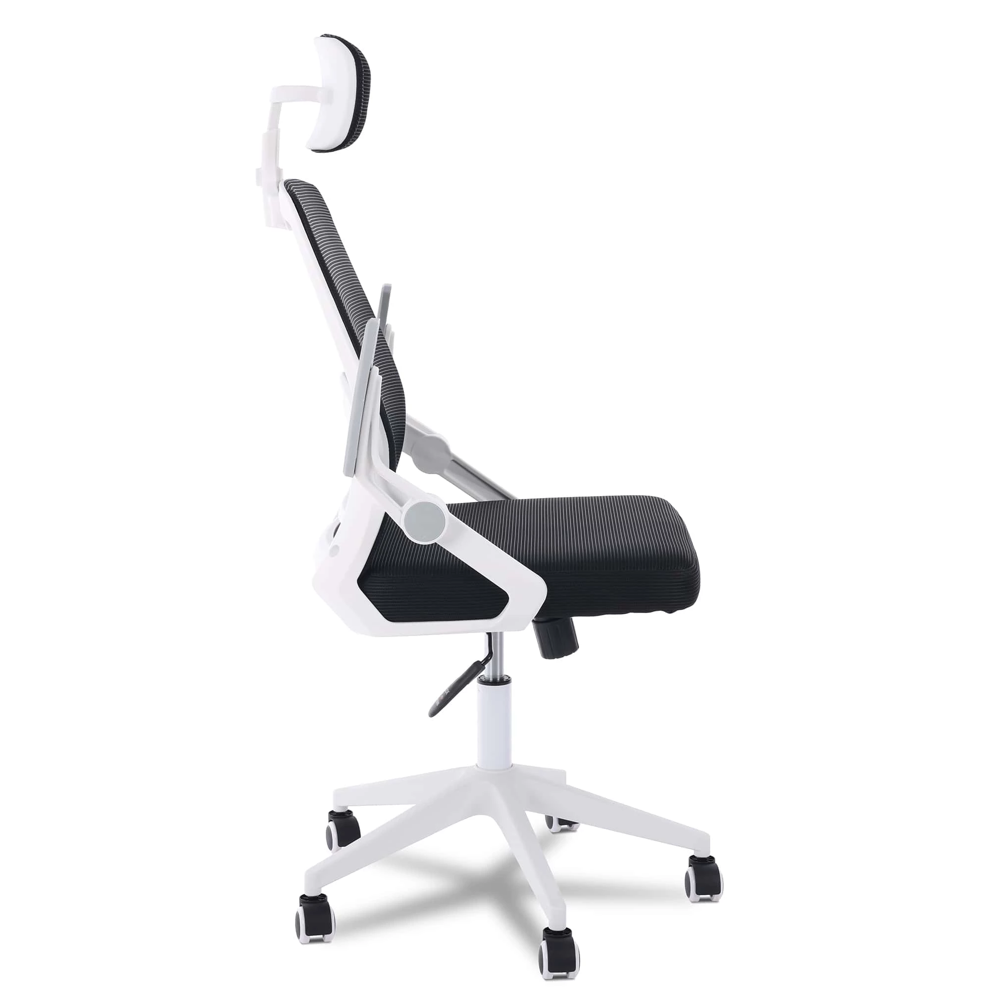 Com estrutura robusta e acabamento em polipropileno branco, a Flexy Lush apresenta um visual contemporâneo que se adapta facilmente a diversos estilos de decoração. O revestimento em tela mesh preta oferece ventilação superior, mantendo a temperatura ideal mesmo nos dias mais quentes, garantindo conforto durante longas jornadas de trabalho.