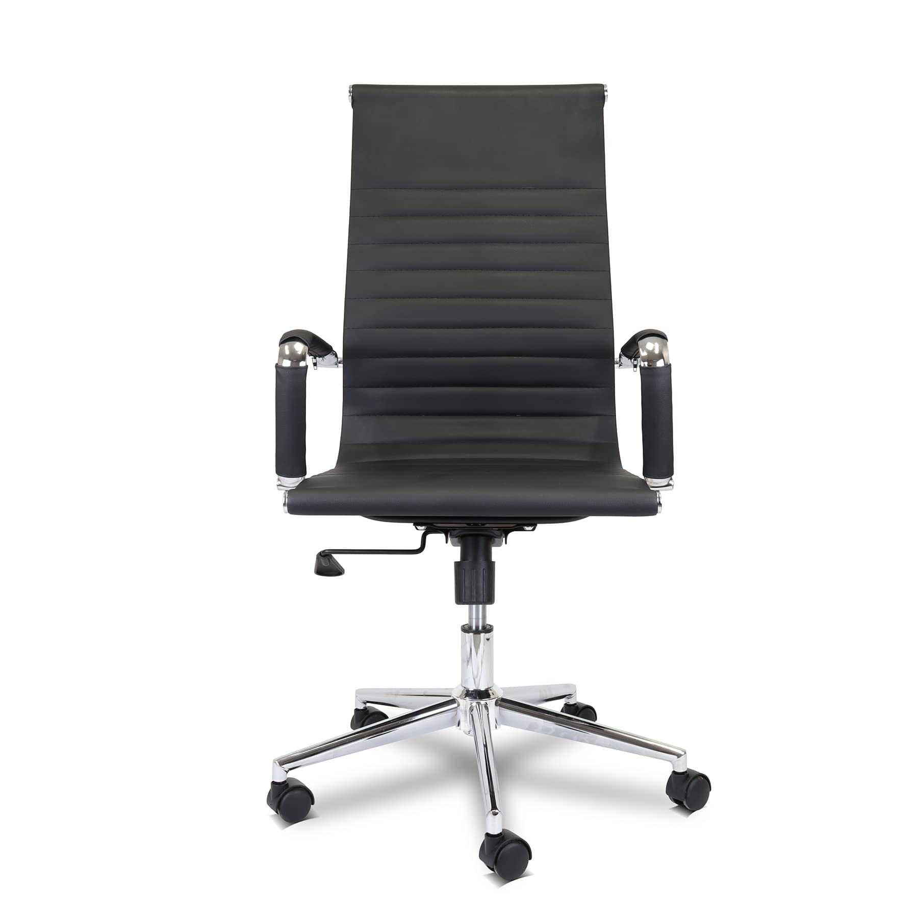 Essa cadeira tem um modelo minimalista e elegante, uma combinação perfeita para deixar o seu ambiente bonito e com uma decoração equilibrada. Além disso, o material utilizado para confeccionar essa cadeira é de alta qualidade e assegura durabilidade por muitos e muitos anos. Seu revestimento é em couro sintético e a sua base é de metal cromado. Para finalizar, as rodinhas da cadeira são de Nylon para evitar desgaste no chão do seu escritório.