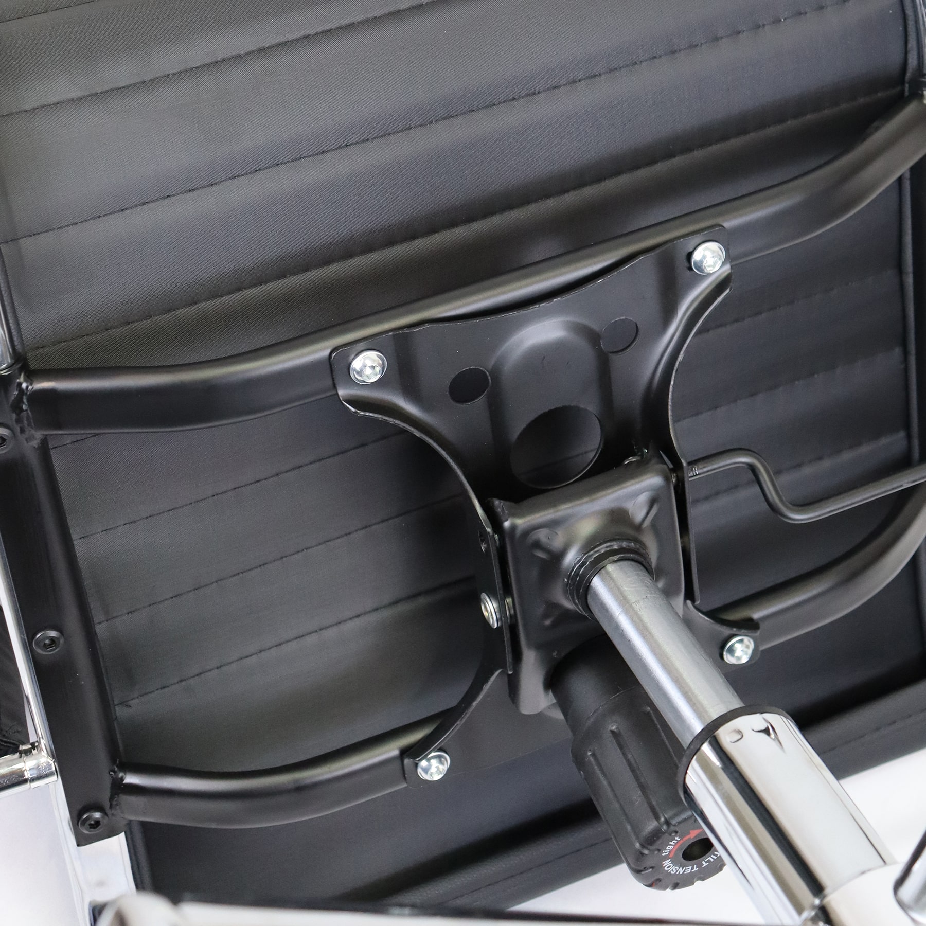 Os apoios de braço fixos, com 21 cm de altura em relação ao assento, são revestidos para proporcionar maior conforto. Com largura de 4 cm e comprimento de 34 cm, oferecem suporte adequado para os braços, contribuindo para a redução da fadiga nos ombros e pescoço.