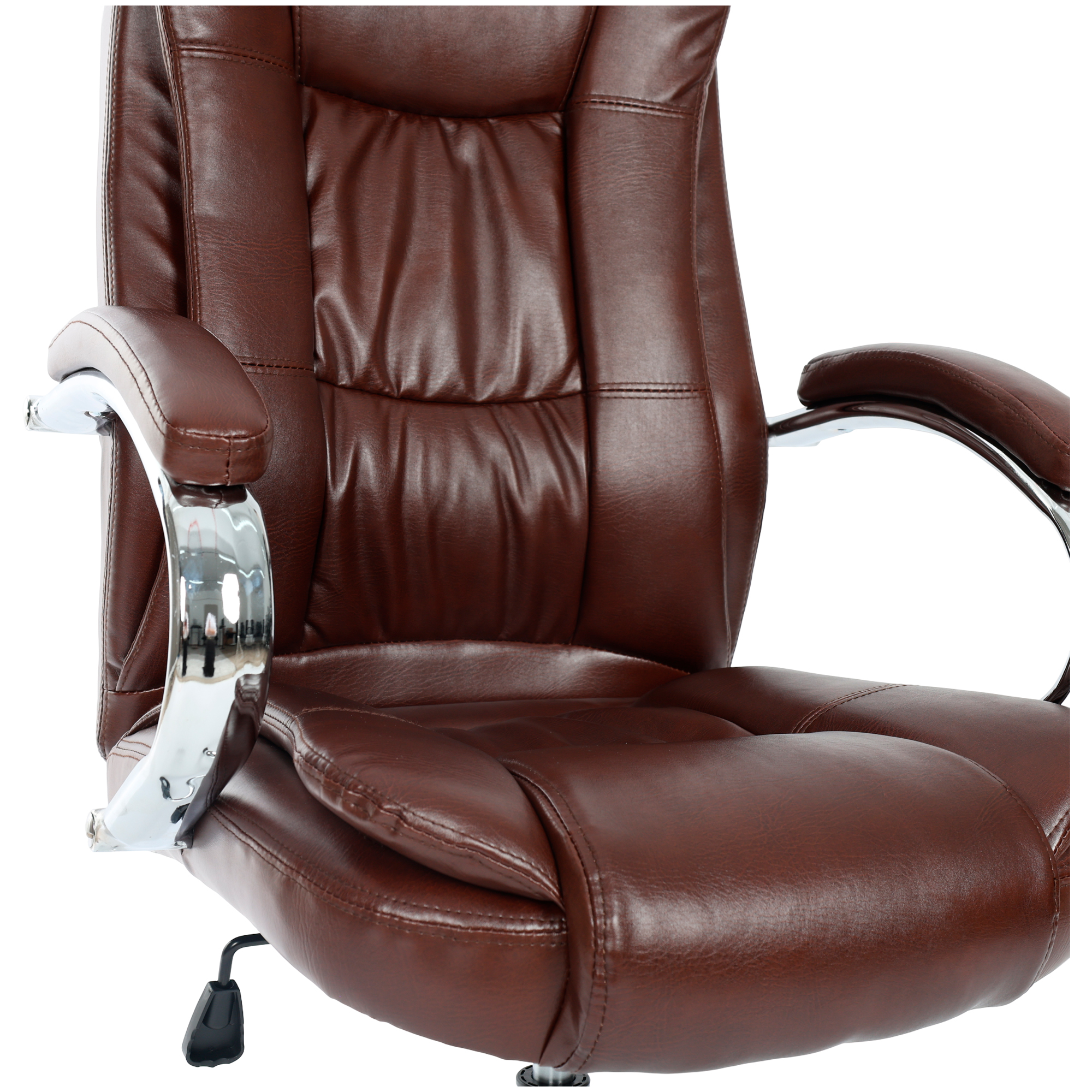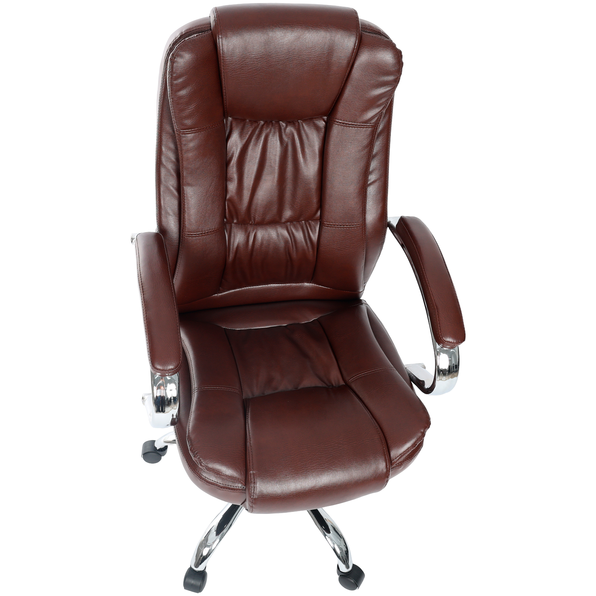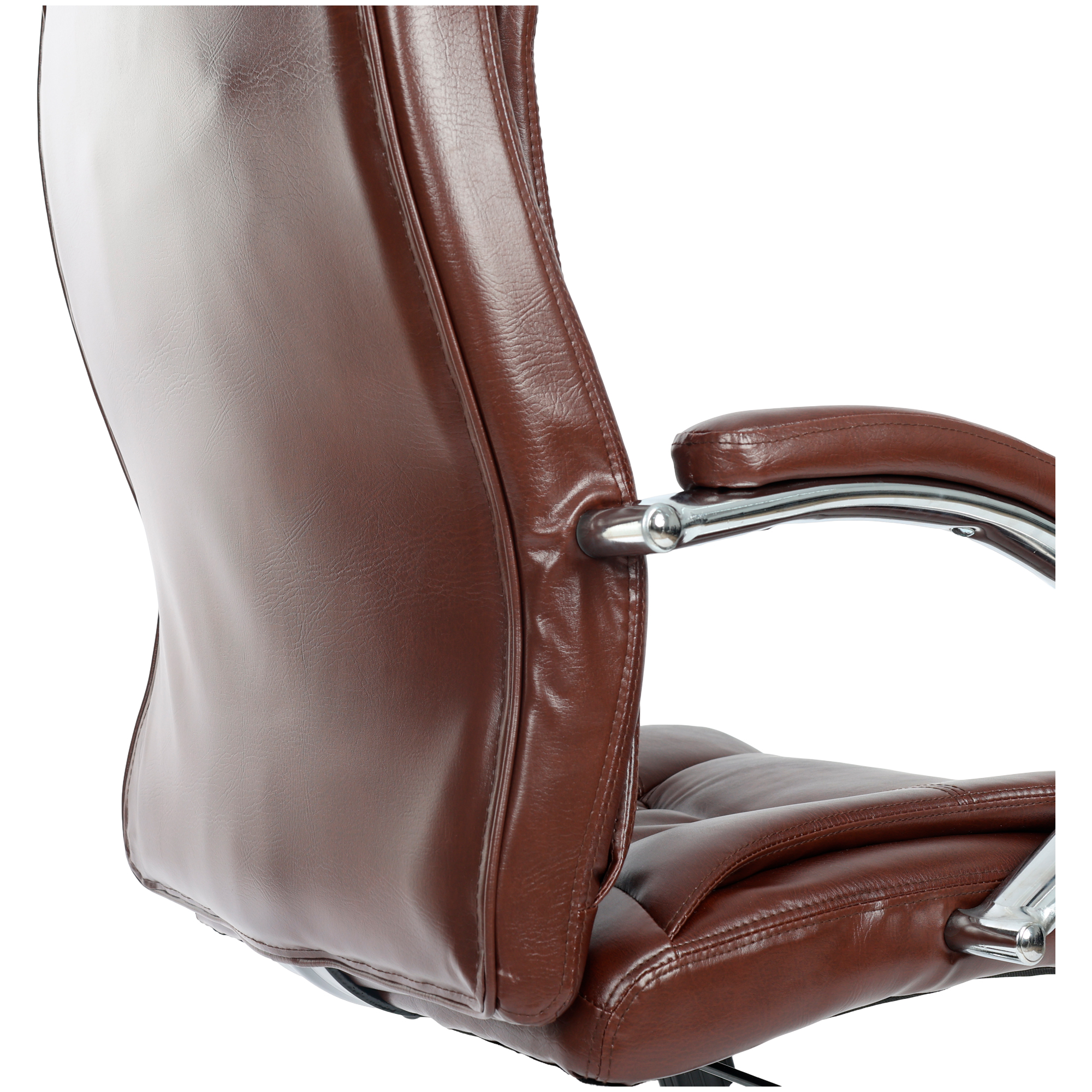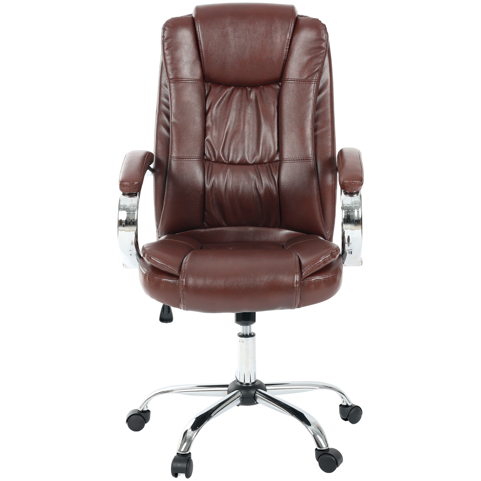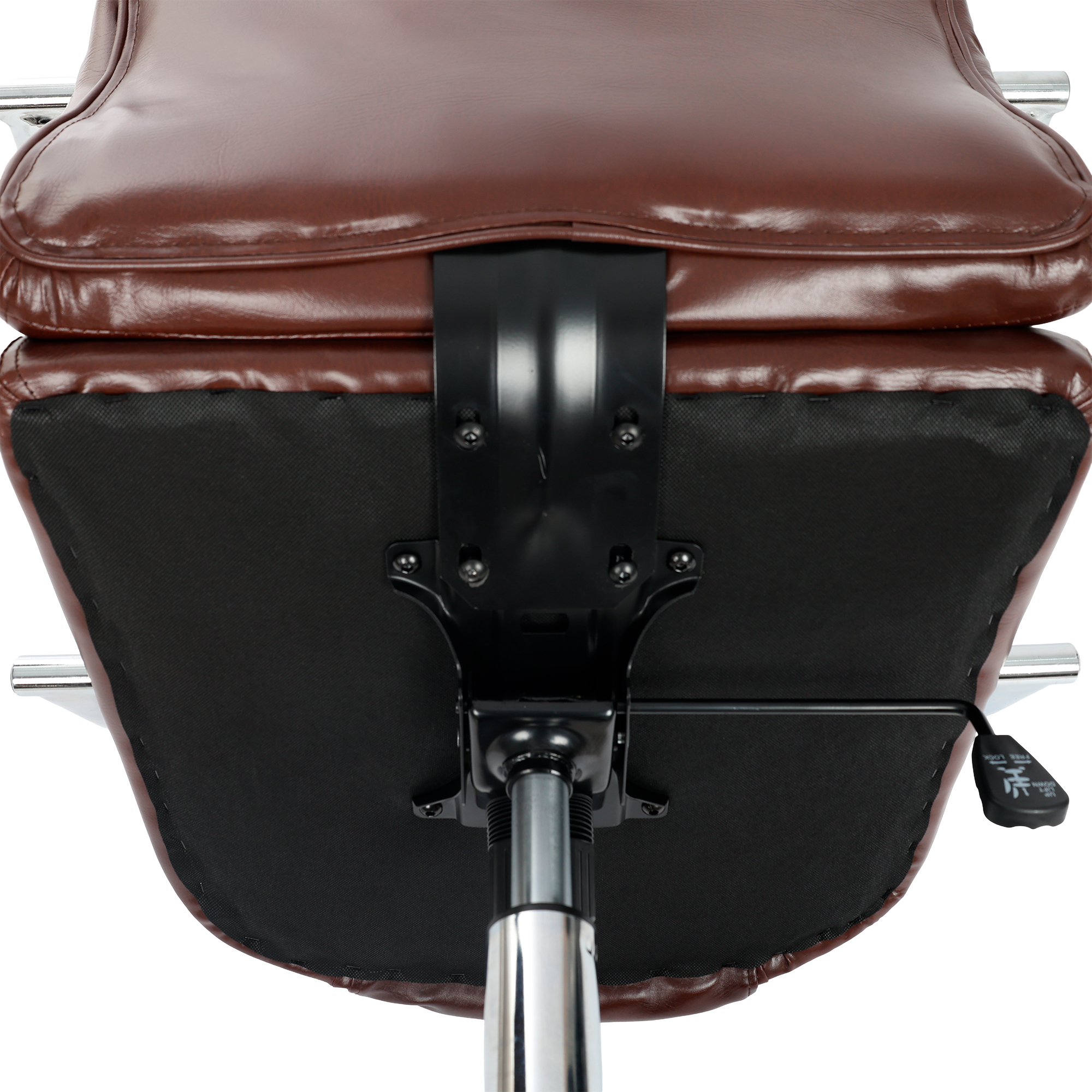 A cadeira de escritório com rodinhas possui apoio estofado para os braços, regulagem de altura com pistão a gás e rodinhas em nylon. Além disso, essa cadeira marrom para escritório é revestida em couro sintético extremamente resistente. Essa cadeira tem um design robusto e imponente, ideal para compor os móveis da sala do seu escritório. Para completar, a cadeira de couro giratória conta com sistema relax.