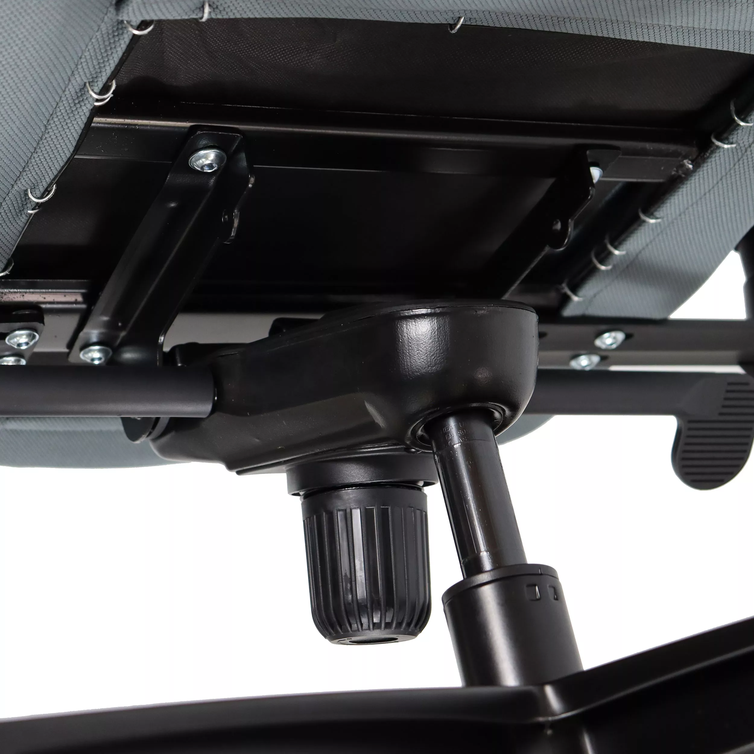Essa cadeira gamer possui braços com ajustes 4D com regulagem de altura, profundidade, rotação e deslize lateral. Com esses ajustes, você pode posicionar os braços da cadeira na regulagem ideal para seus braços ficarem bem apoiados, aliviando assim a tensão dos ombros. Ainda sobre os ajustes do assento, é possível regular a altura puxando a alavanca para cima facilmente.