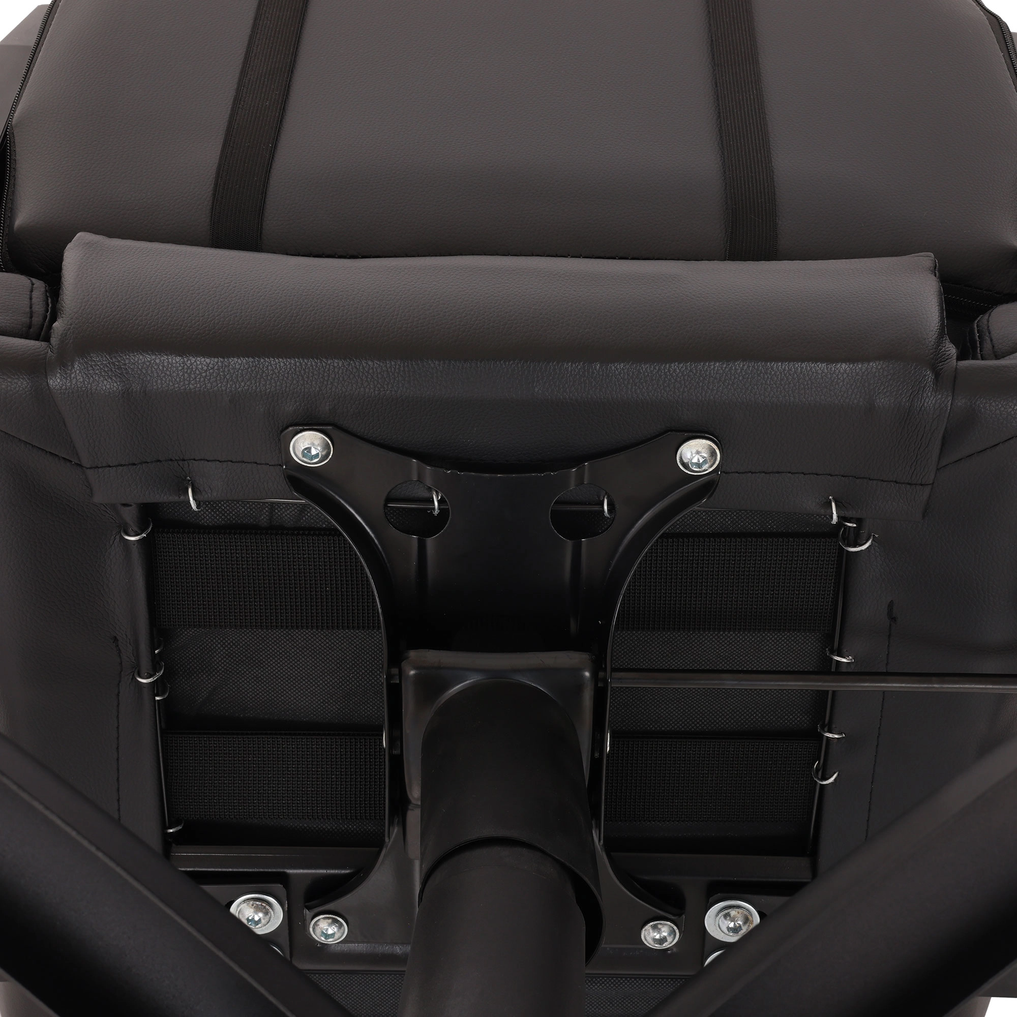 Apoio para braços, duas almofadas para apoio dos ombros e lombar.