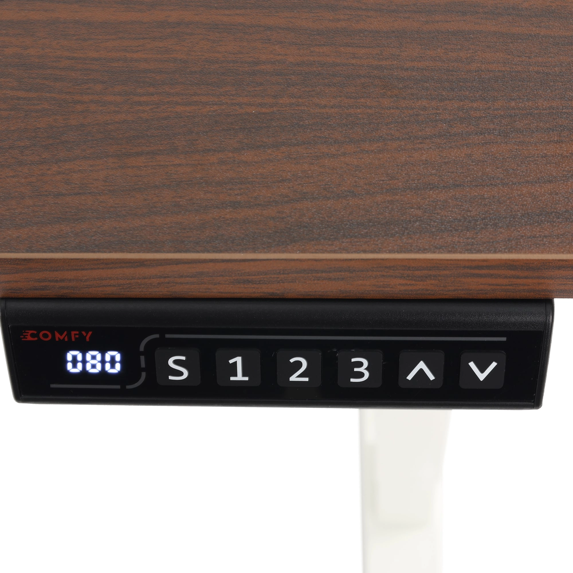 Mesa com Regulagem de Altura Elétrica Comfy ErgoLift Base Branca com 3 Memórias e Tampo Carvalho Amber