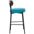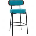 Par de Banquetas Flexy Velin Estrutura Preta e Tecido Azul Mediterrâneo